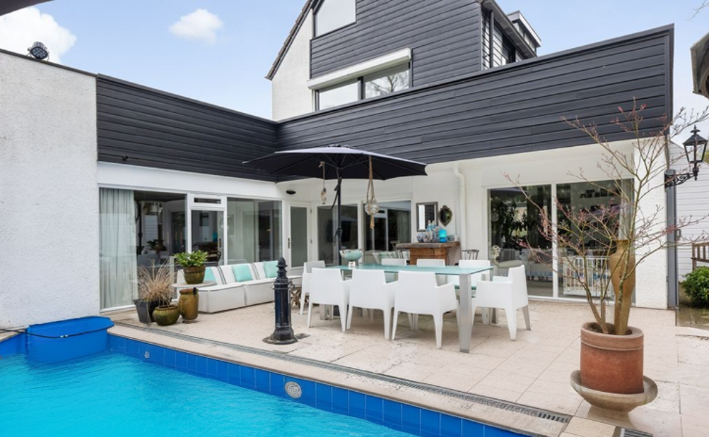 Met een woonoppervlakte van maar liefst 230 m² biedt deze woning uitzonderlijk veel ruimte voor zowel wonen als werken. De woning werd in 1987 ontworpen en gebouwd door een architect als eigen woonhuis, wat zichtbaar is in de bouwkwaliteit en de doordachte indeling. De entreehal met dubbele deuren geeft toegang tot een royale T-vormige living en een ruime woonkeuken, beide voorzien van vloerverwarming. De tuinkamer, geïsoleerde voormalige garage, zes slaapkamers en twee badkamers maken de woning multifunctioneel. De vele raampartijen zorgen voor een prettige lichtinval en dragen bij aan het aangename woonklimaat.