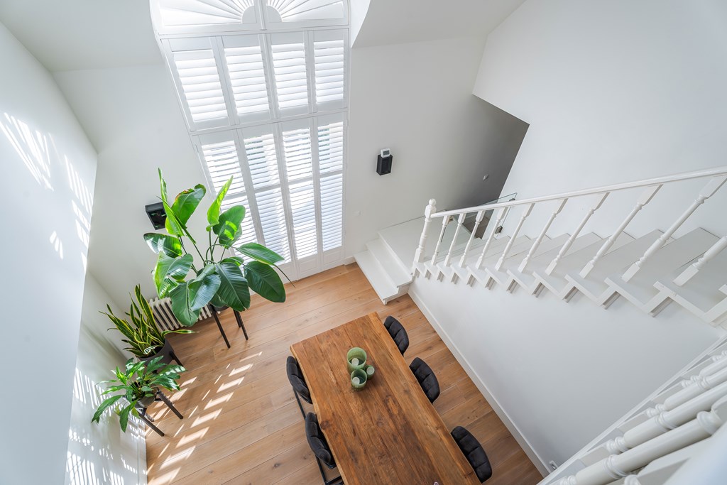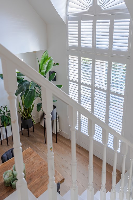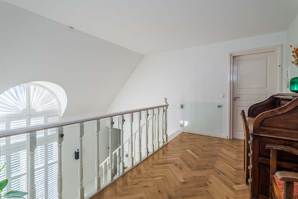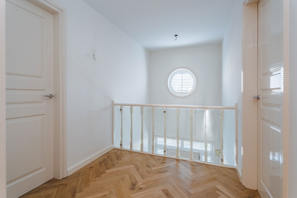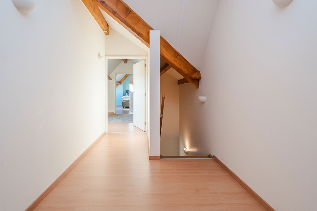Middels de afgesloten trapopgang op de overloop heeft u toegang tot de slaapkamers en opbergruimte op de tweede verdieping.