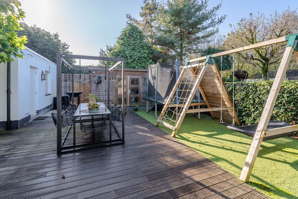 Verder is de tuin voorzien van diverse terrassen, een overkapping, een carport en een houten berging.