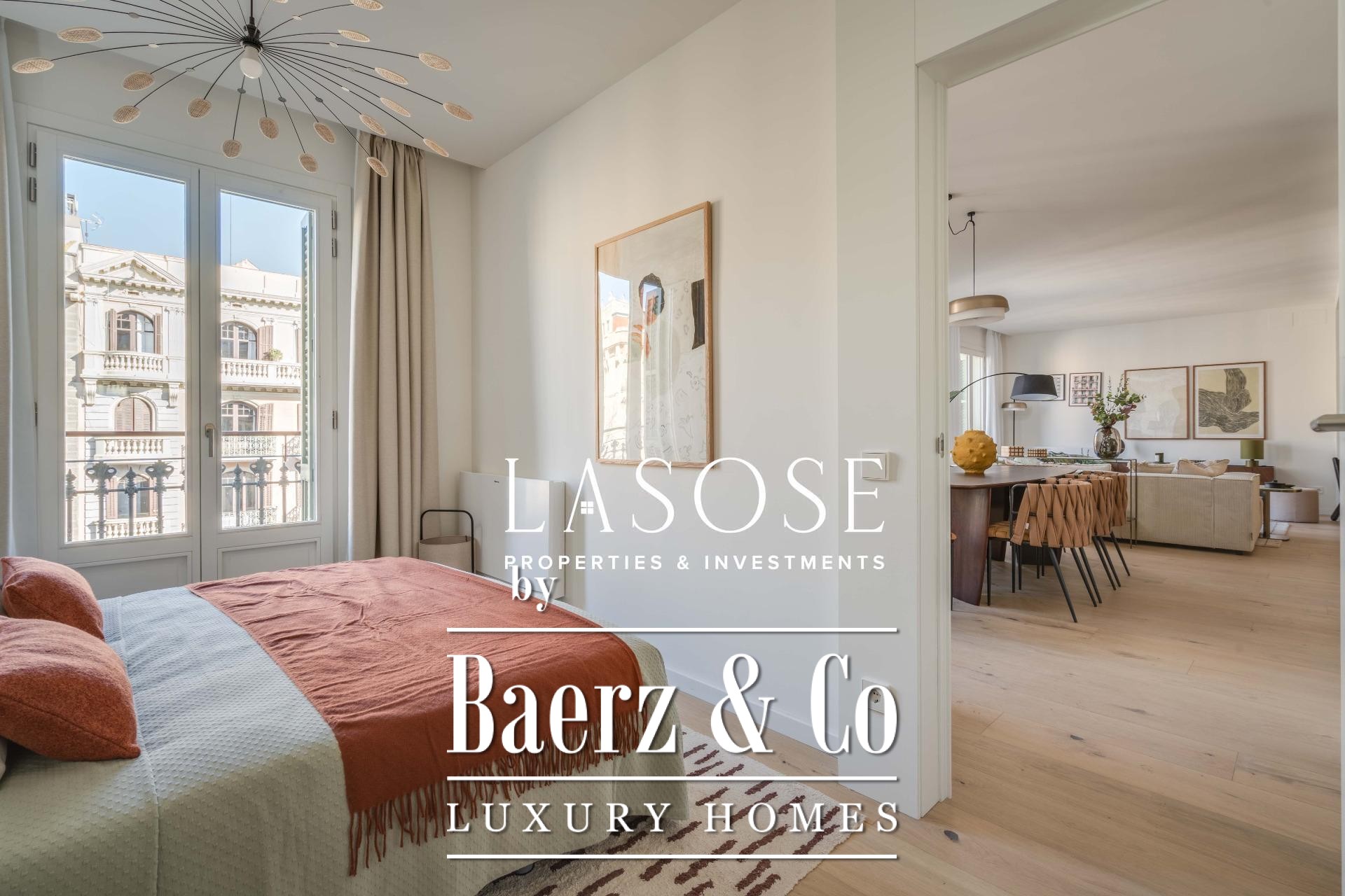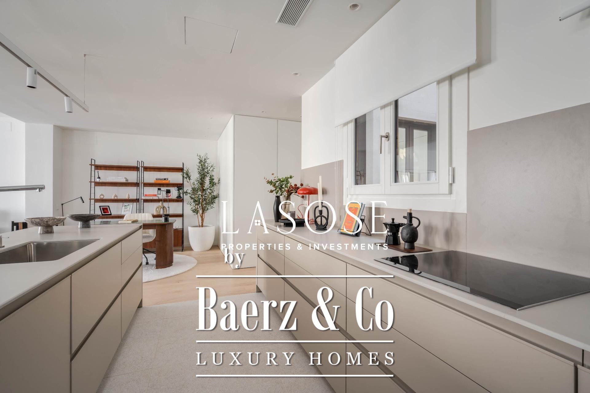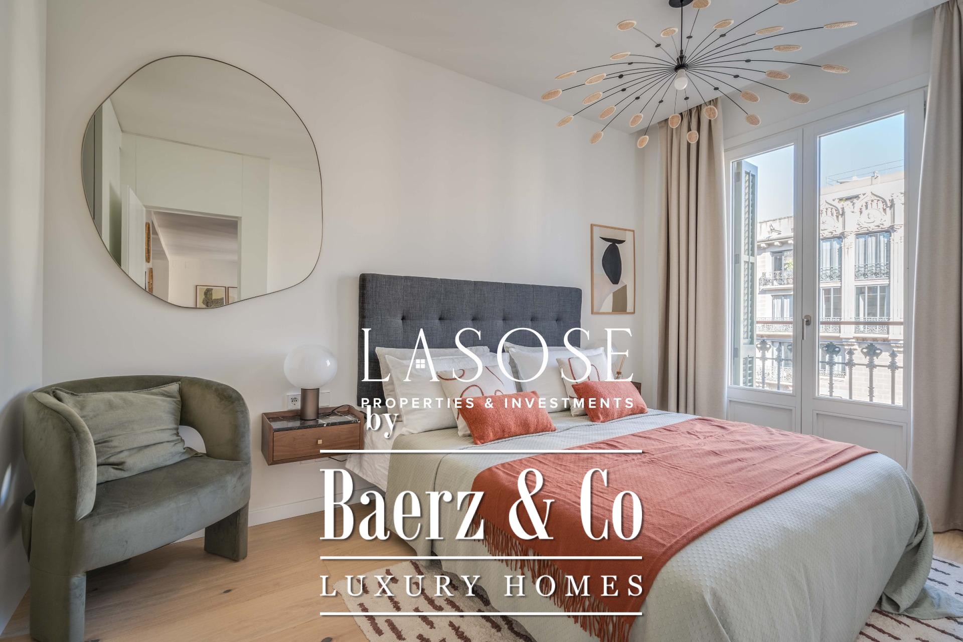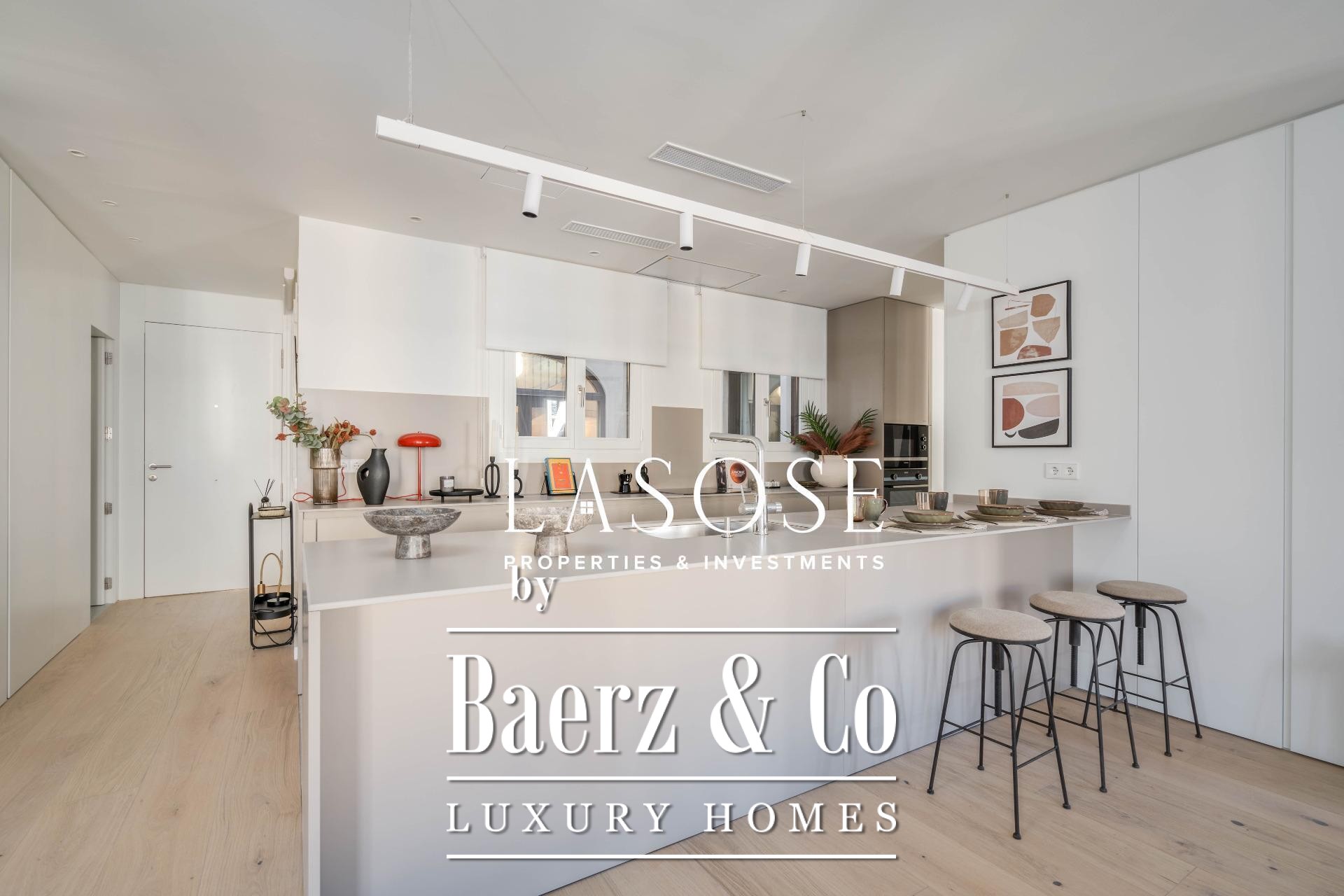 Binnen deze muren vloeit het licht moeiteloos tussen de ruimtes, waardoor zuivere lijnen en royale proporties extra worden geaccentueerd. Het gebouw integreert naadloos in het karakteristieke ritme van Eixample, waar achthoekige bouwblokken, brede lanen en ongeëvenaarde verbindingen het tempo bepalen van het hedendaagse leven in Barcelona. Voorzieningen zijn onder andere lifttoegang, inbouwkasten en een aparte wasruimte, alles zonder concessies ingericht.