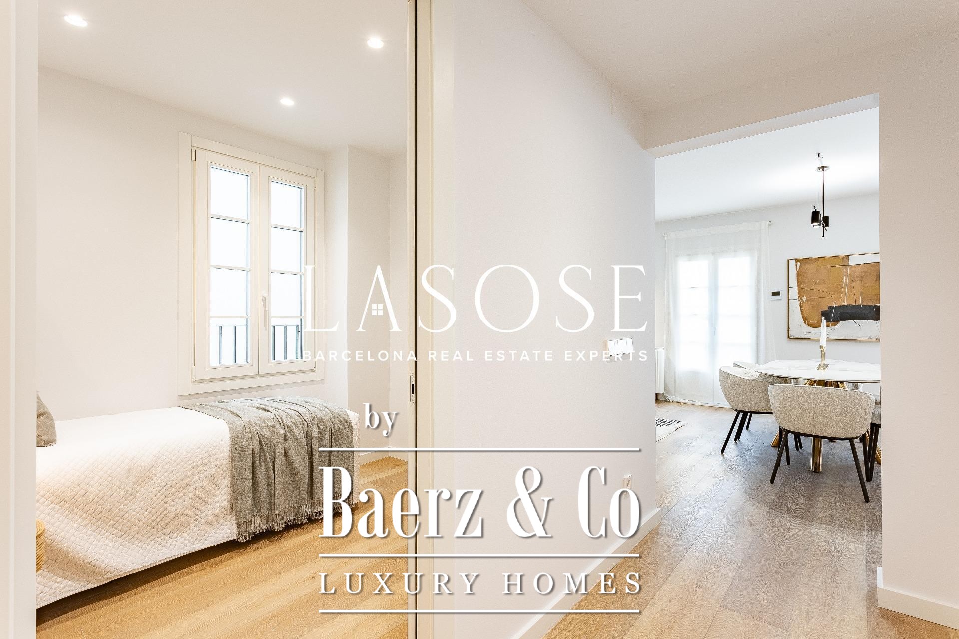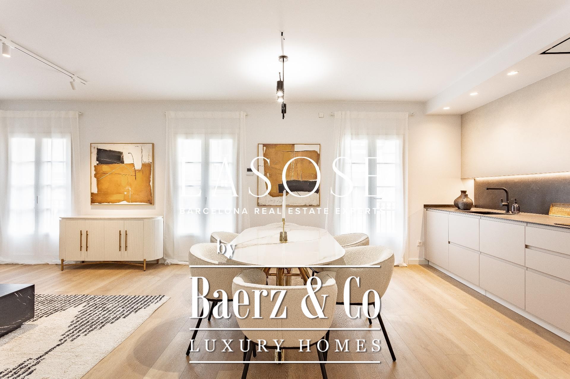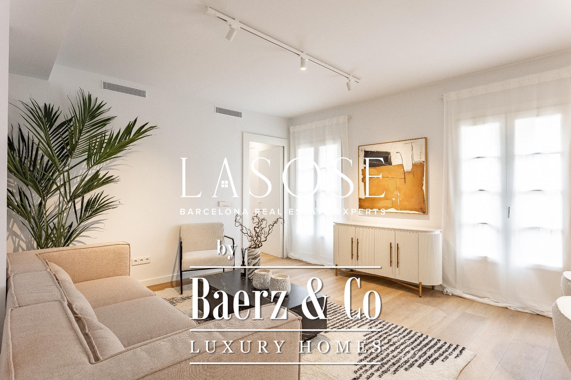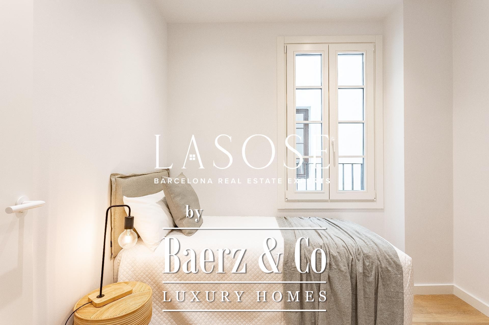 Apartment Barcelona biedt een uitnodiging tot stedelijke verfijning in het hart van de stad, gelegen aan de Tallersstraat, op slechts enkele momenten van Plaza Catalunya. Deze volledig gerenoveerde woning beslaat 108 m² zorgvuldig ingedeelde leefruimte, waar drie ruime slaapkamers en twee badkamers naadloos samenkomen met open, lichte interieurs. Het ontwerp kenmerkt zich door ingetogen, hedendaagse lijnen en een functionele indeling, waarbij originele architectonische details behouden zijn gebleven die het erfgoed van het gebouw benadrukken.