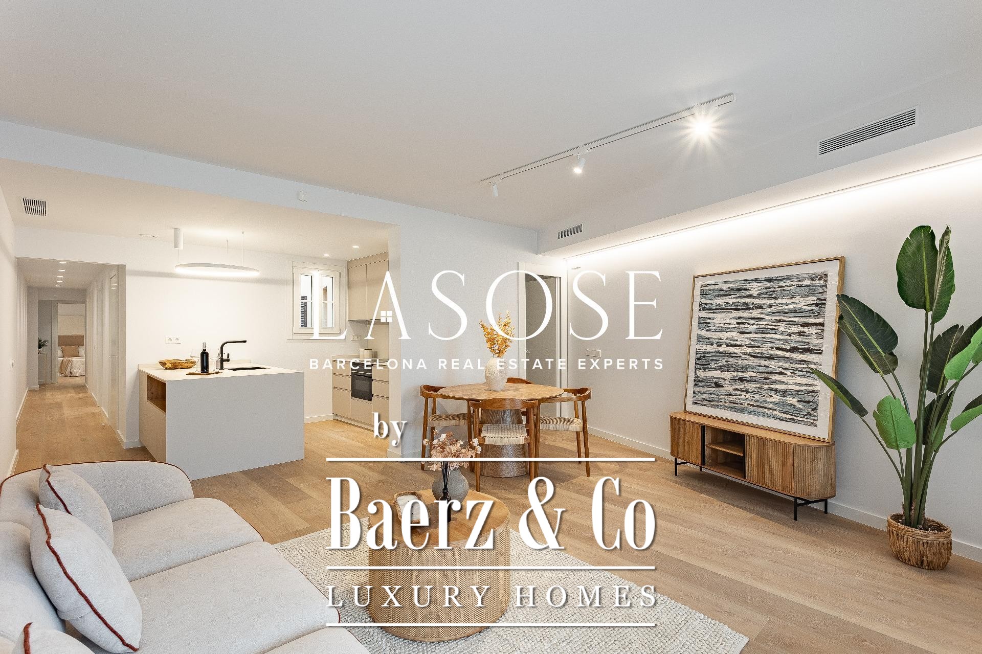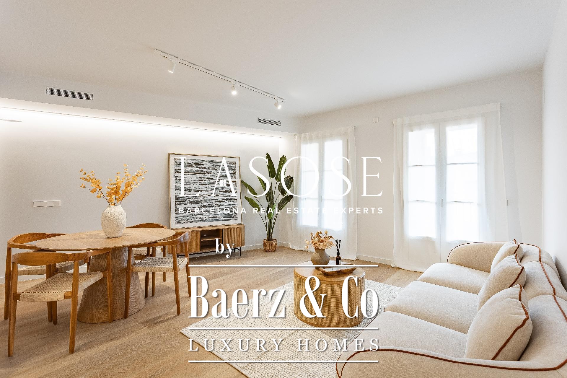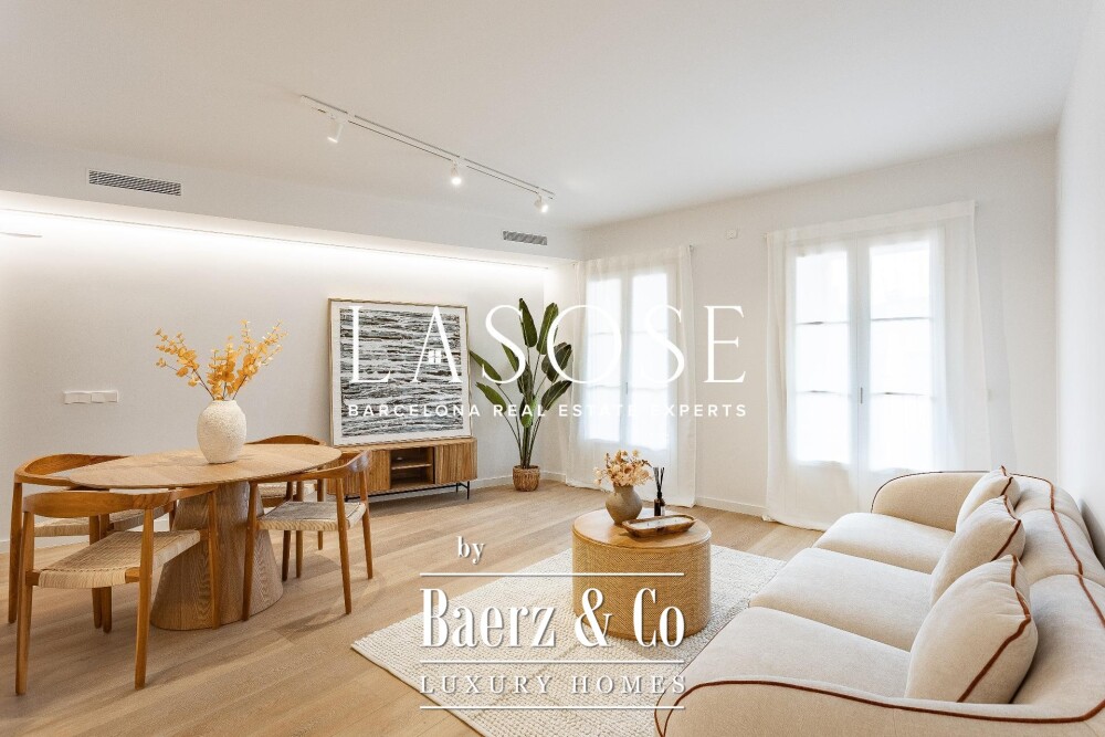 Apartment Barcelona biedt een karakteristiek ritme van stadsleven, gelegen op slechts enkele meters van Plaza Catalunya aan de Tallers-straat. Deze residentie van 120 m² combineert originele architectonische details met een volledige, eigentijdse renovatie tot een kalme samensmelting van klassieke charme en moderne verfijning. De drie ruime slaapkamers en twee badkamers worden aangevuld door open, lichte leefruimten die samenkomen dankzij hoogwaardige materialen en een doordachte indeling.