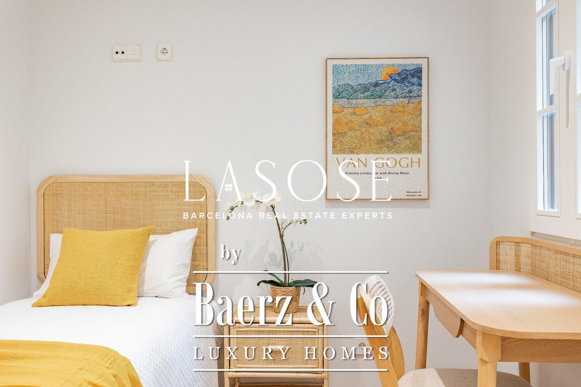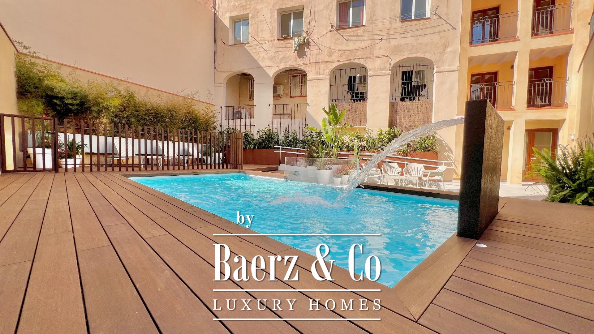 Het interieur wordt op subtiele wijze verrijkt door voorzieningen zoals een terras voor rustige momenten boven de straat, centrale verwarming en airconditioning, én het comfort van een lift en een wasruimte. Balkons en gemeenschappelijke ruimten, waaronder een zwembad, bieden gelegenheid tot terugtrekking binnen het levendige hart van Barcelona.
