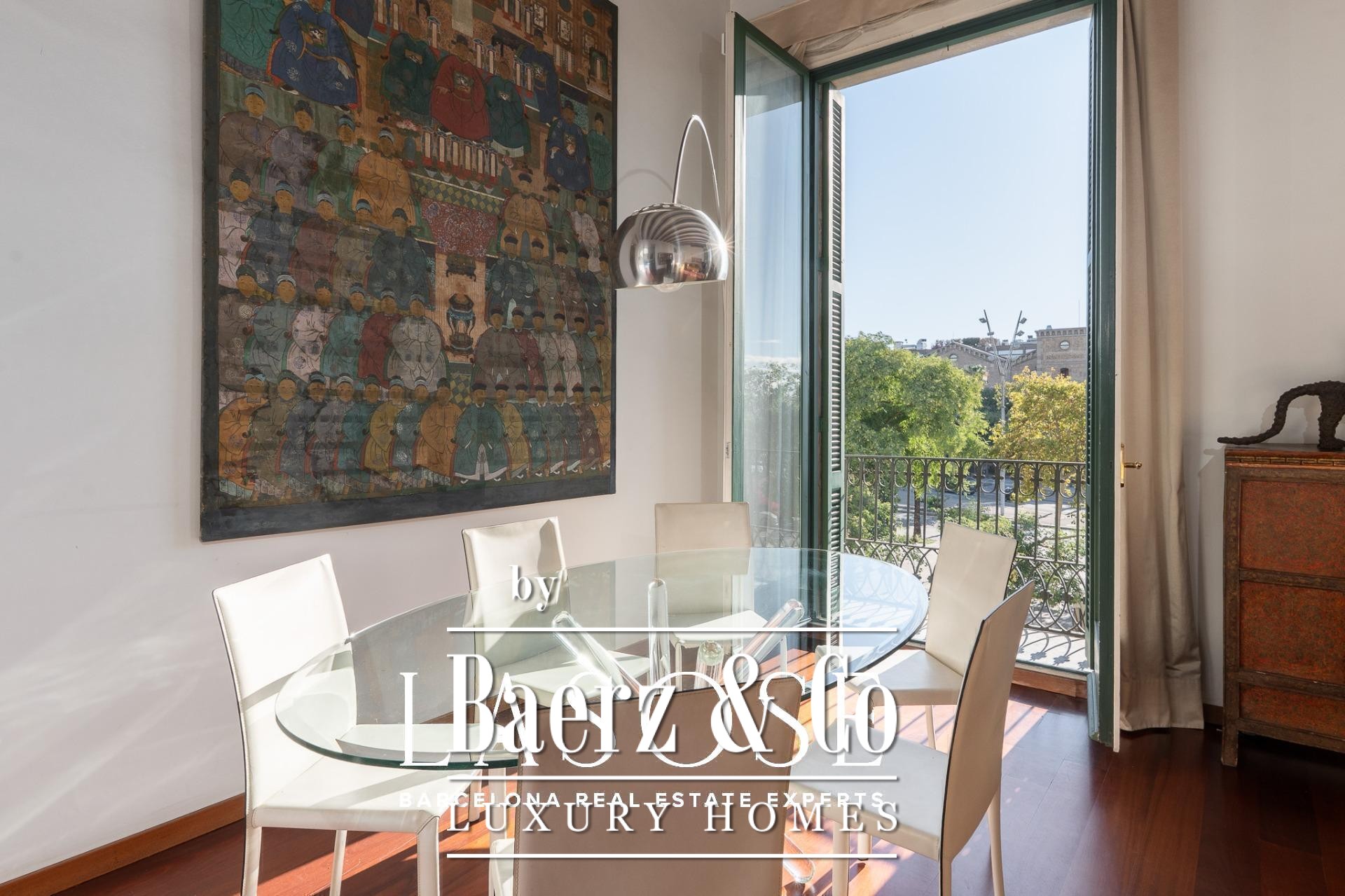 Apartment Barcelona bevindt zich in een historisch pand met uitzicht op de jachthaven van de stad. Deze woning van 122 m² beslaat een voorname locatie aan de Carrer Llauder en biedt een uitzonderlijke combinatie van karakteristiek erfgoed en hedendaags wonen. Binnen ontvouwt zich een ruimte met plafonds van 3,8 meter hoog, zichtbare houten balken en Catalaanse gewelven, verrijkt met met de hand beschilderde details. Smeedijzeren balkons omlijsten het open zeezicht en het groen van Las Ramblas de Mar, waardoor iedere kamer baadt in mediterraan licht.