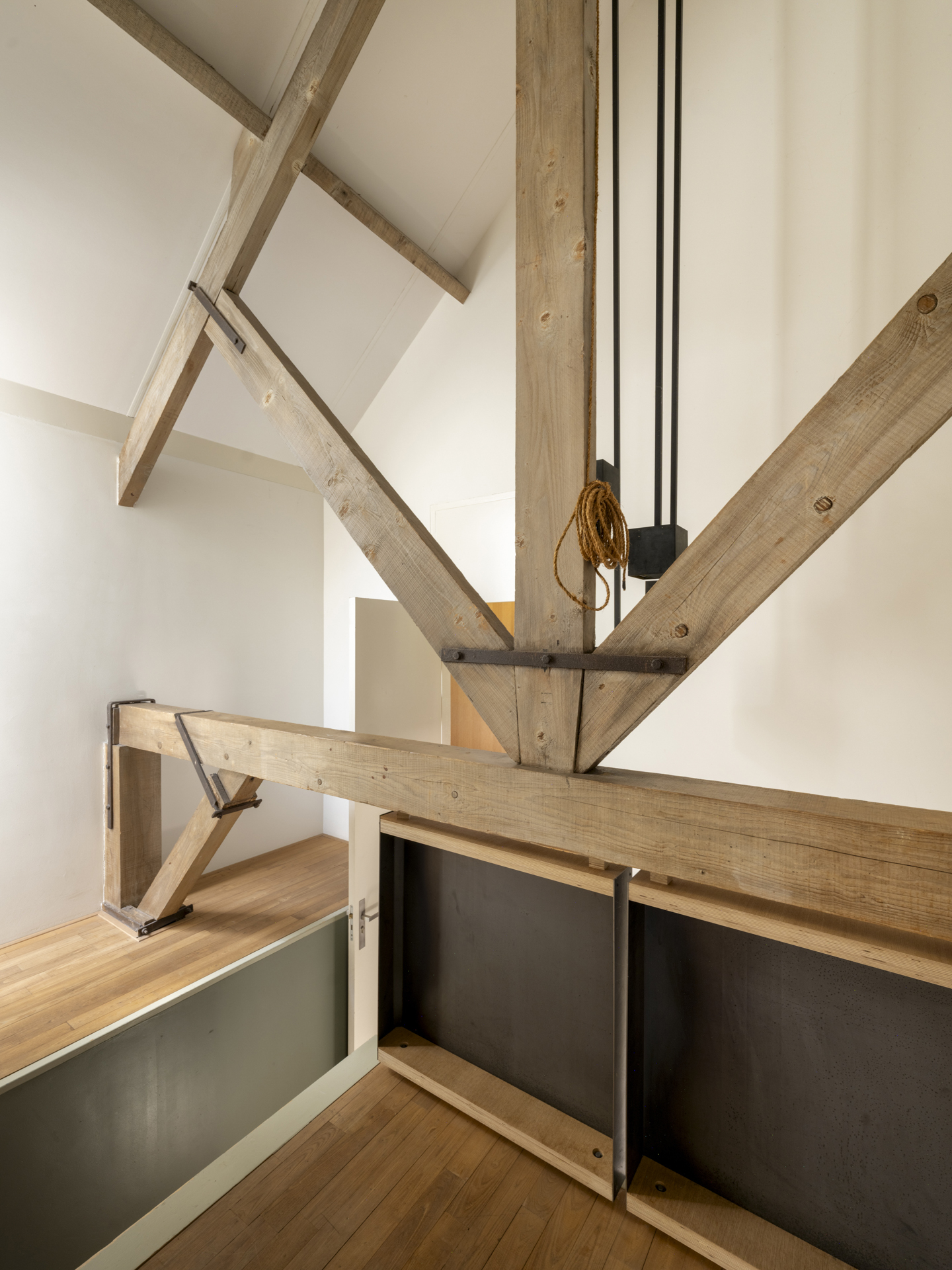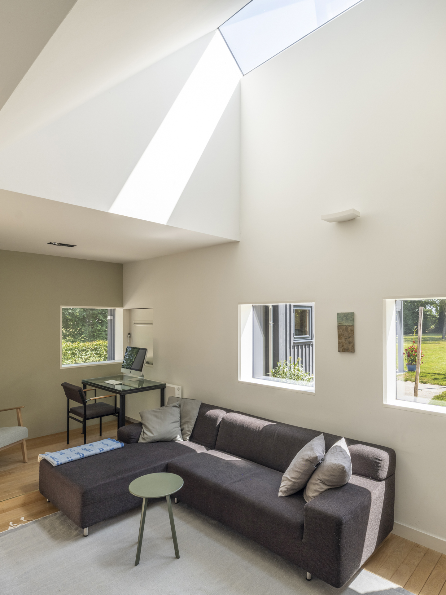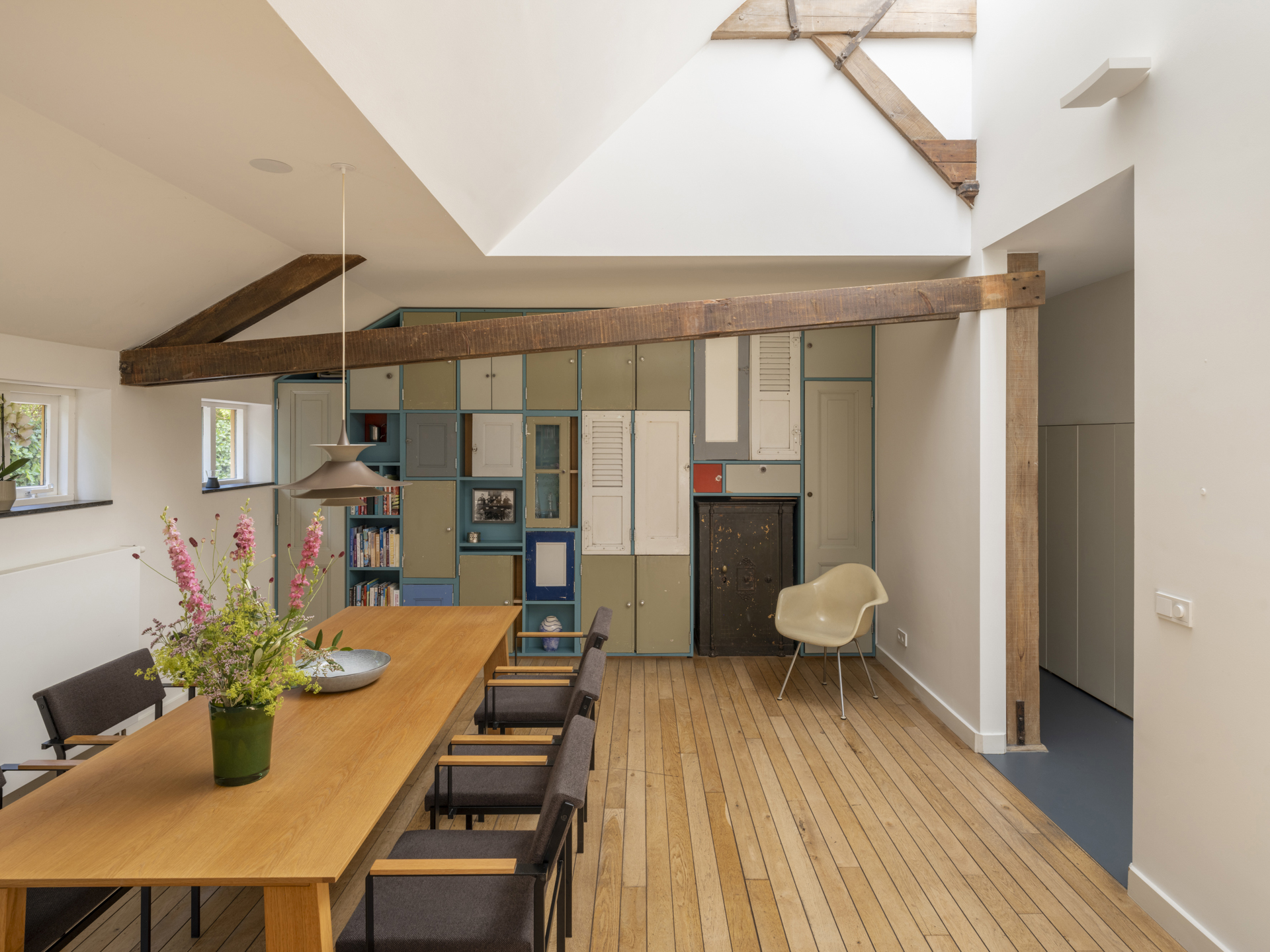 Onder leiding van architect Henri Borduin (borderarchitecture.com) is bij de verbouwing tot modern woonhuis bijzonder veel aandacht besteed aan details en lichtinval. Het oorspronkelijk karakter van de schuur is behouden gebleven, maar tegelijkertijd is deze getransformeerd tot een comfortabele, eigentijdse woning. Taps toelopende lichtkernen verbinden de ruimtes op de begane grond met het dak. Deze lichtkernen zijn zo geplaatst dat de bestaande draagstructuur en spanten een zichtbaar onderdeel van de woning vormen.