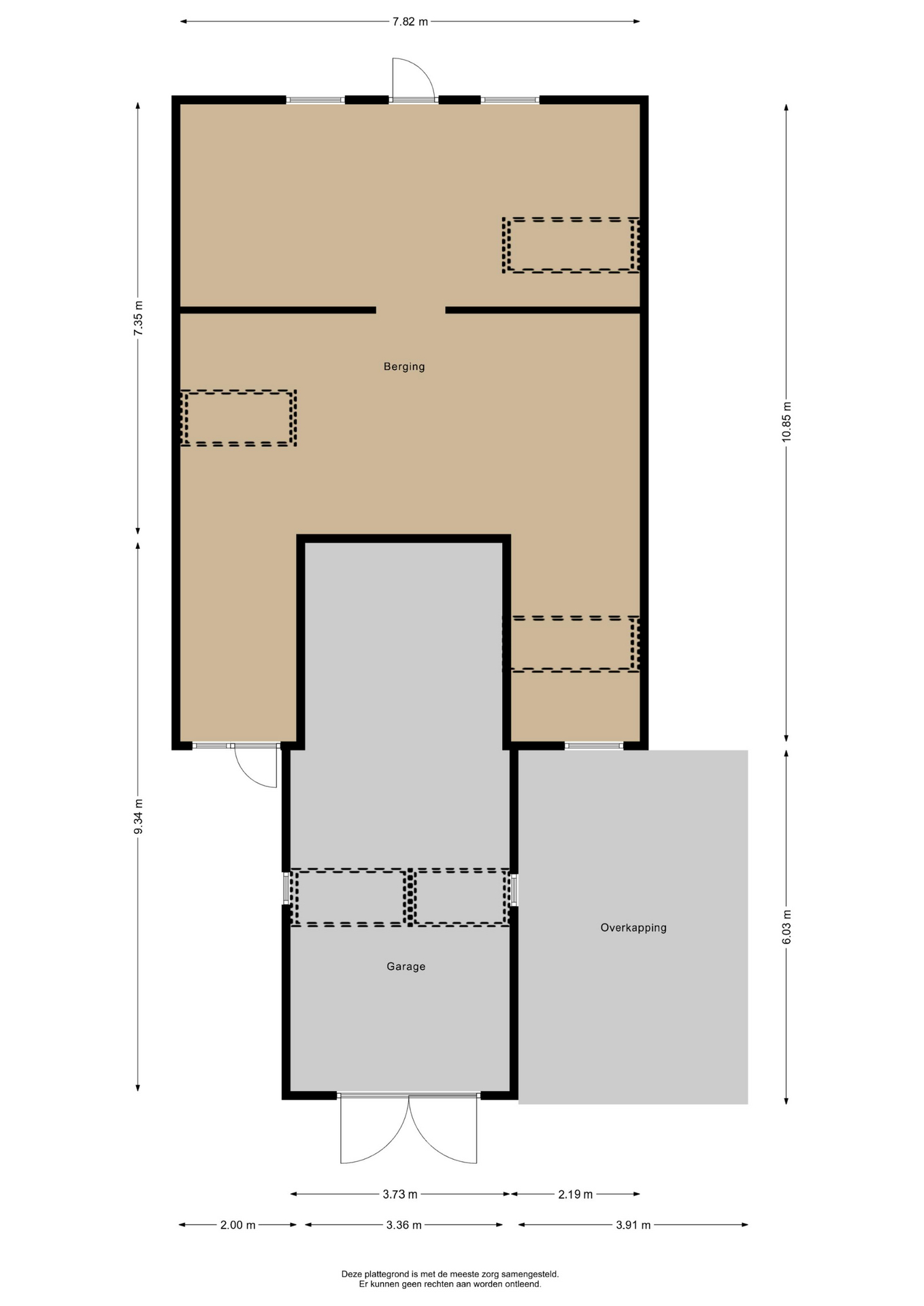 - Externe bergruimte: 127 m² (garage en grote schuur)