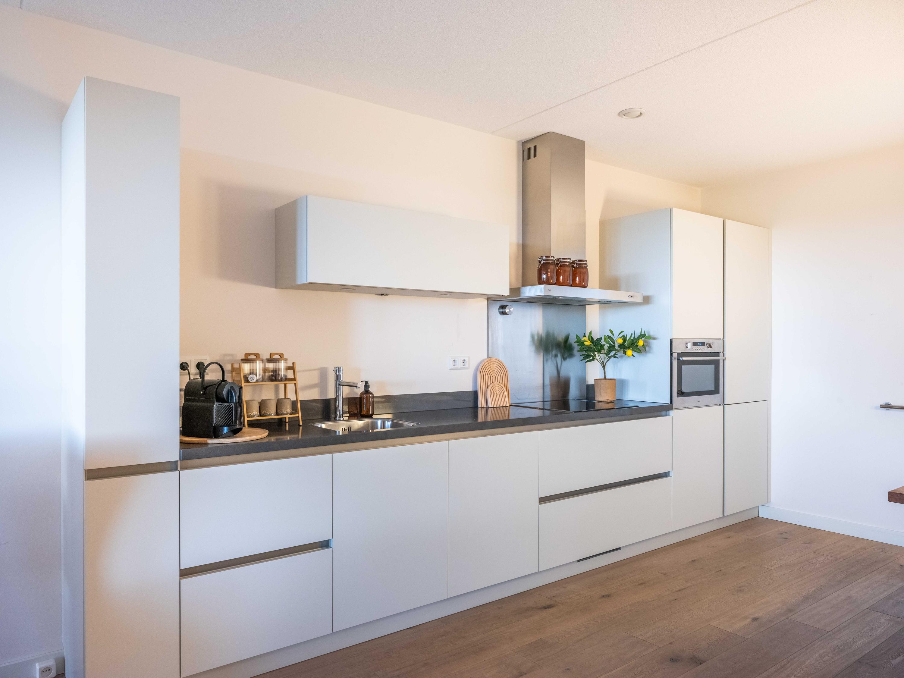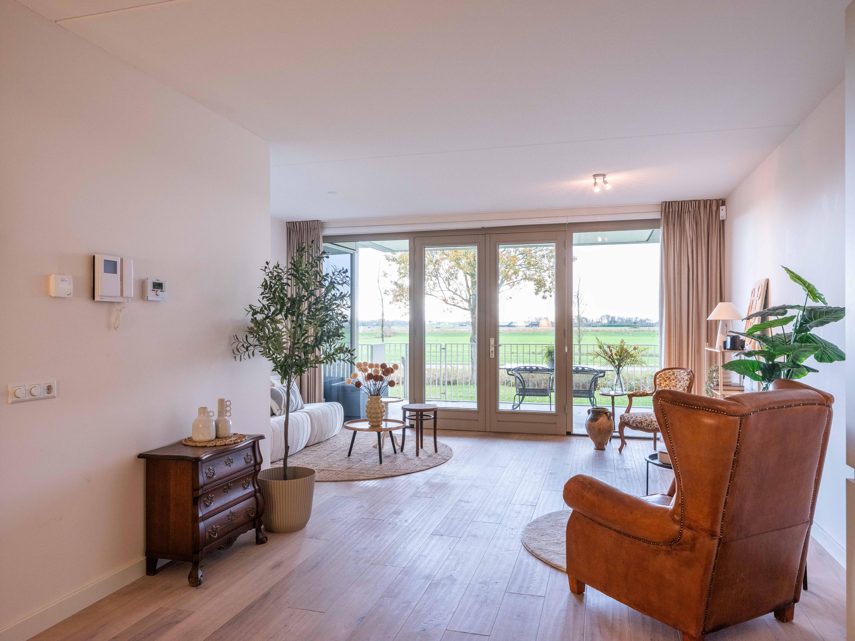 Vanuit de living, het balkon en lager gelegen terras kunt u de hele dag door genieten van prachtige wolkenluchten, vogels en het groen van de polder. De moderne open keuken bevat diverse inbouwapparatuur en een eetgedeelte.