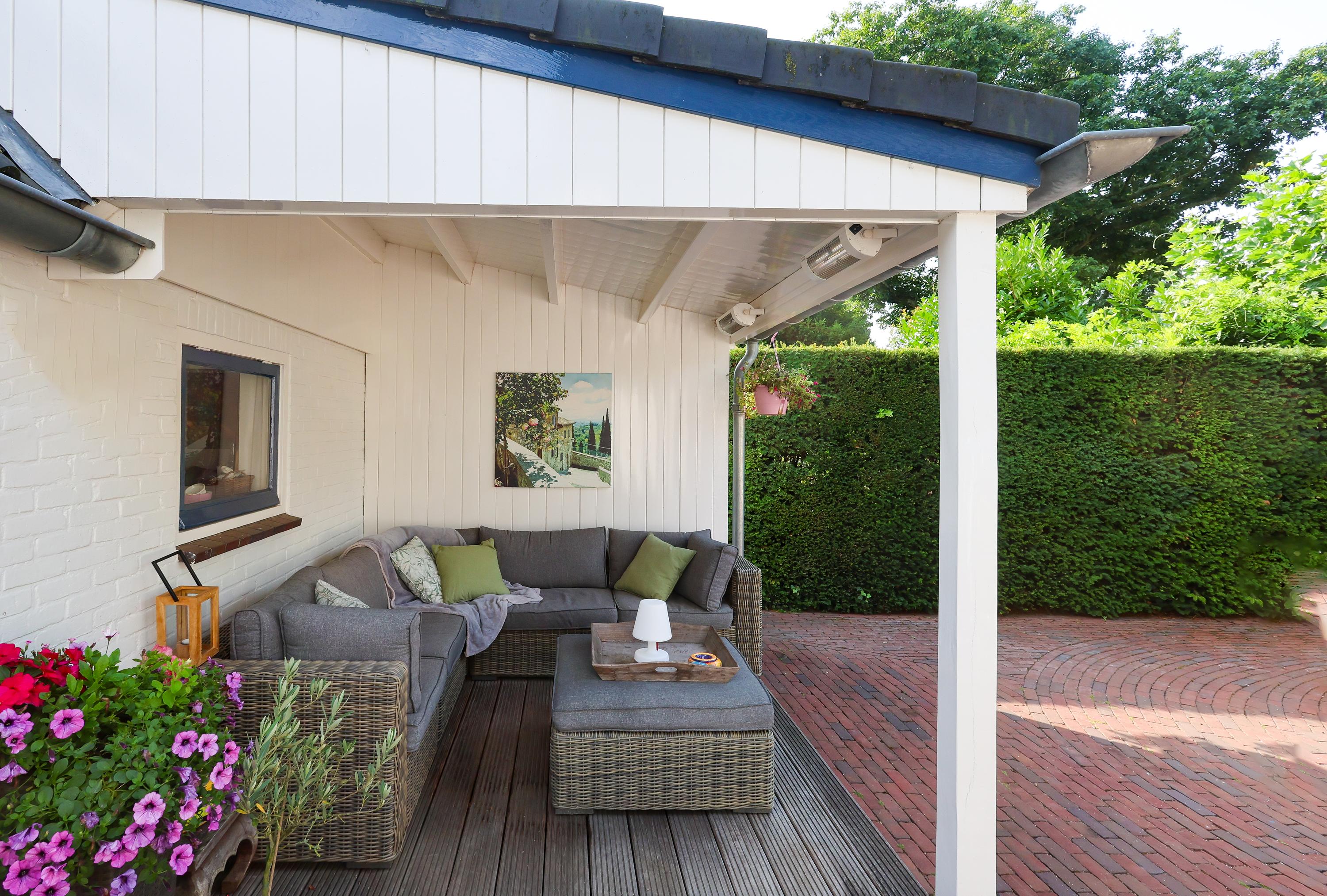 De besloten tuin rondom is zuid gericht en biedt op ieder moment van de dag een zonnige plek. De veranda nodigt uit tot lange zomerse avonden. Parkeermogelijkheden op eigen terrein voor twee auto’s.