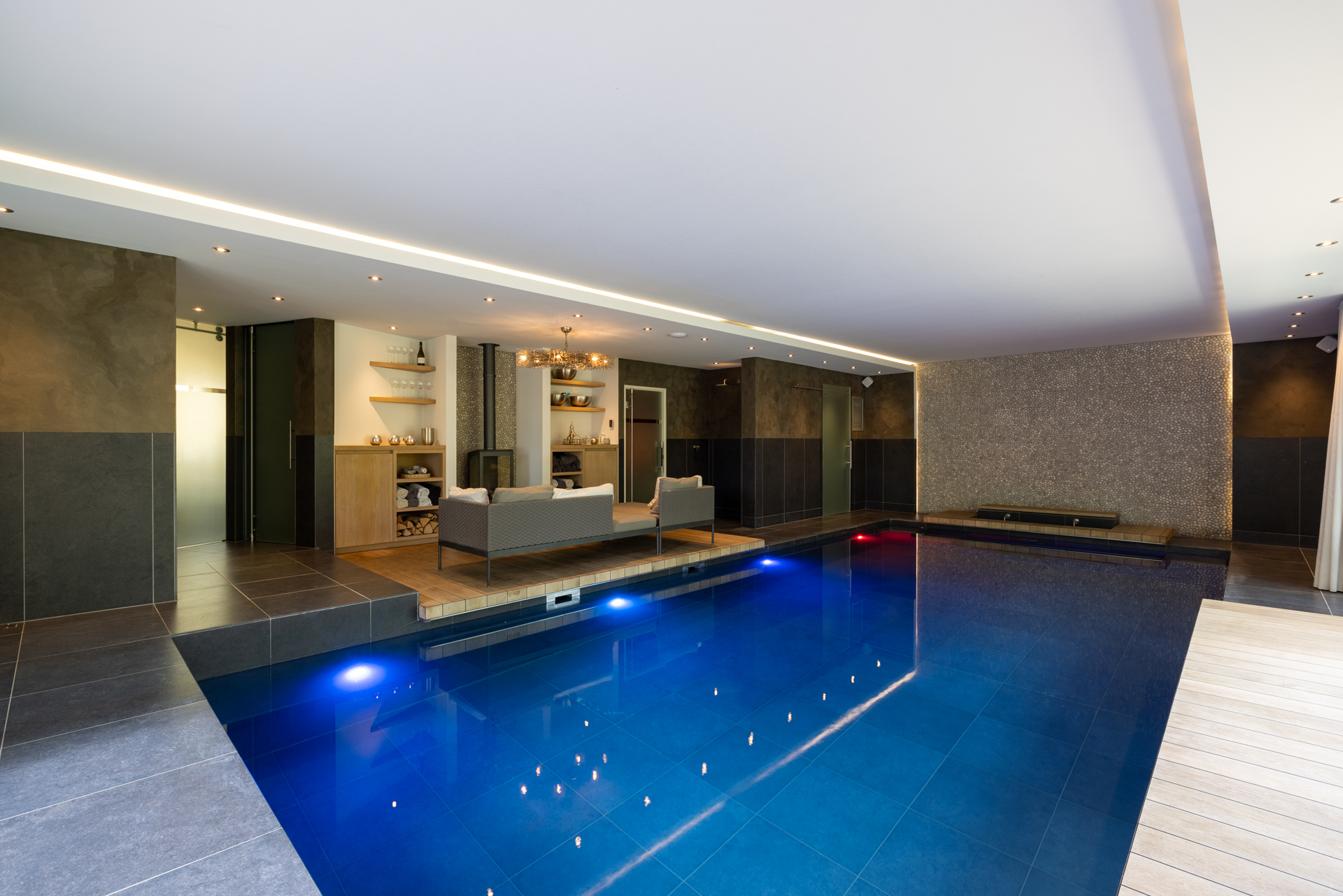 Deze ruimte is voorzien van twee grote schuifpuien welke te openen zijn en zo ervaart u het gevoel van een buitenzwembad. Tevens ontstaat hierdoor een mooie integratie met het terras, de geweldige buitenruimte en de tuin.