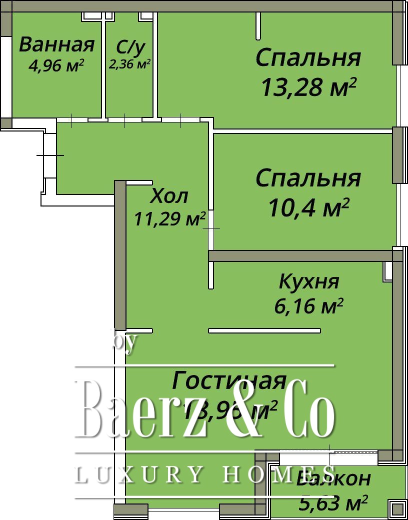 Het appartement combineert functionaliteit en comfort; het beschikt over een lichte woonkamer met open keuken en eetgedeelte, twee slaapkamers, een badkamer en een terras met panoramisch uitzicht. Aan elk detail is gedacht en het appartement is volledig gemeubileerd, klaar voor directe bewoning. De directe nabijheid van een internationale school, restaurants en supermarkten onderstreept de geschiktheid voor permanent verblijf, zomerse retraites en investeringen in zowel korte als lange termijn verhuur.