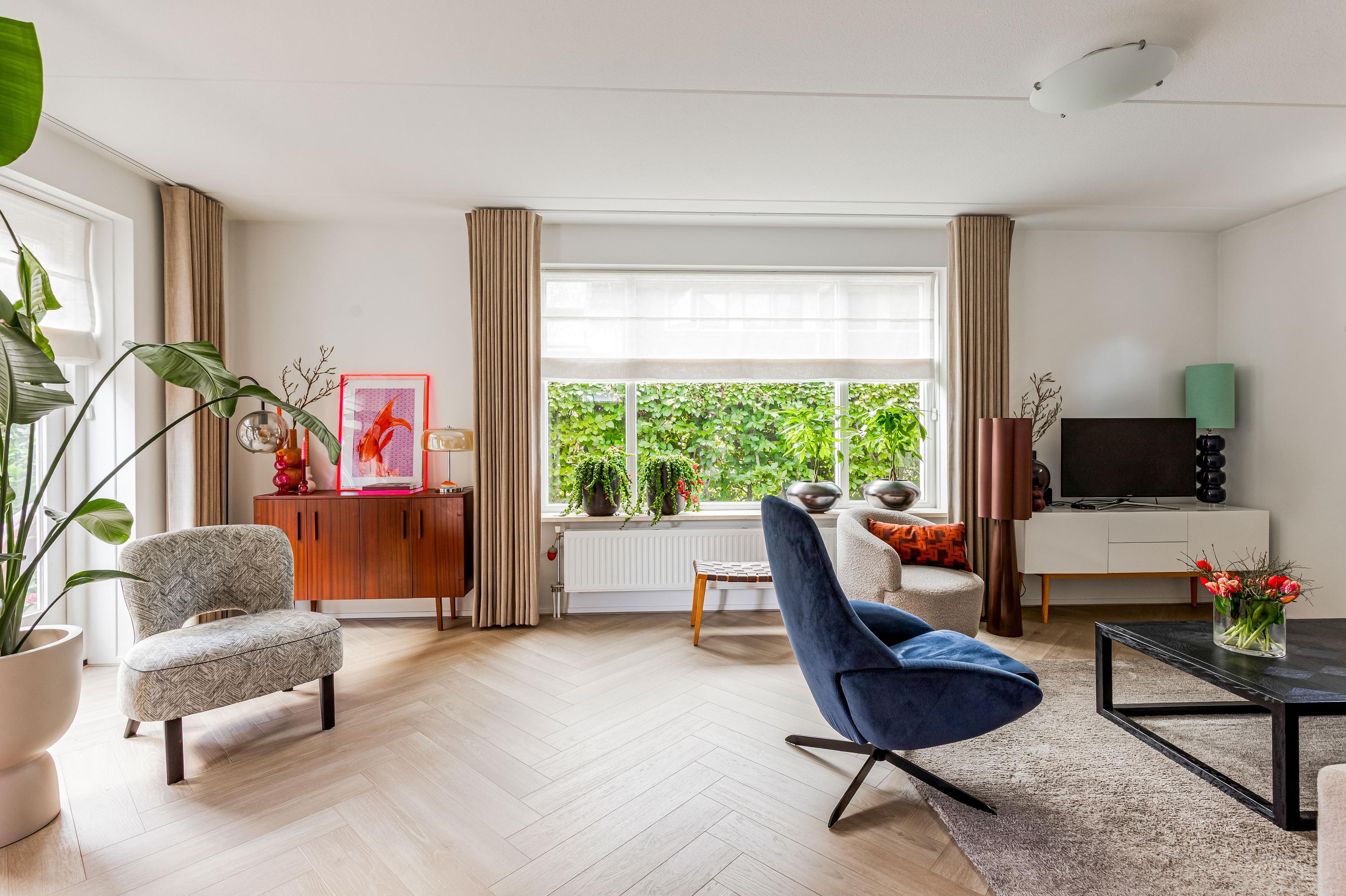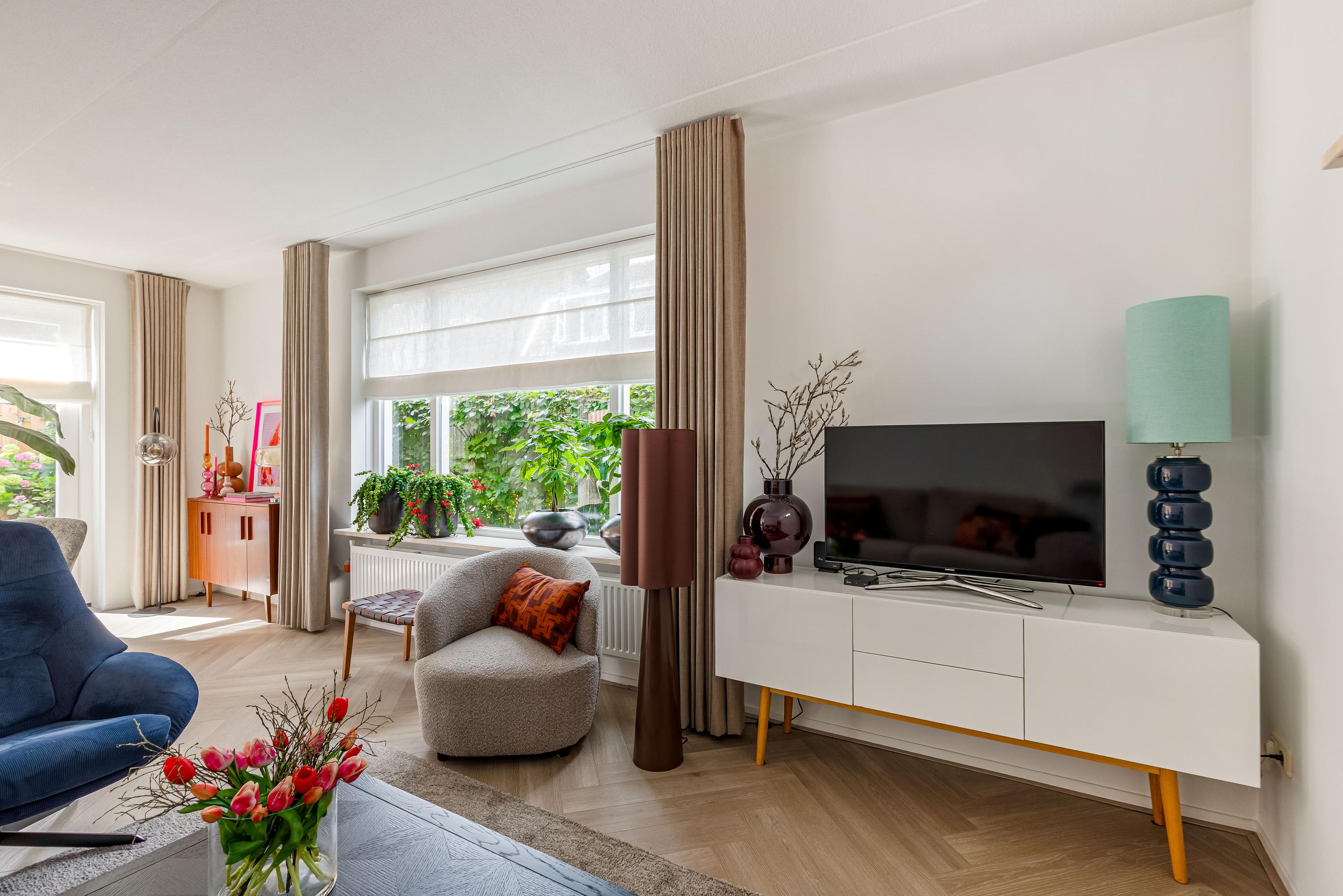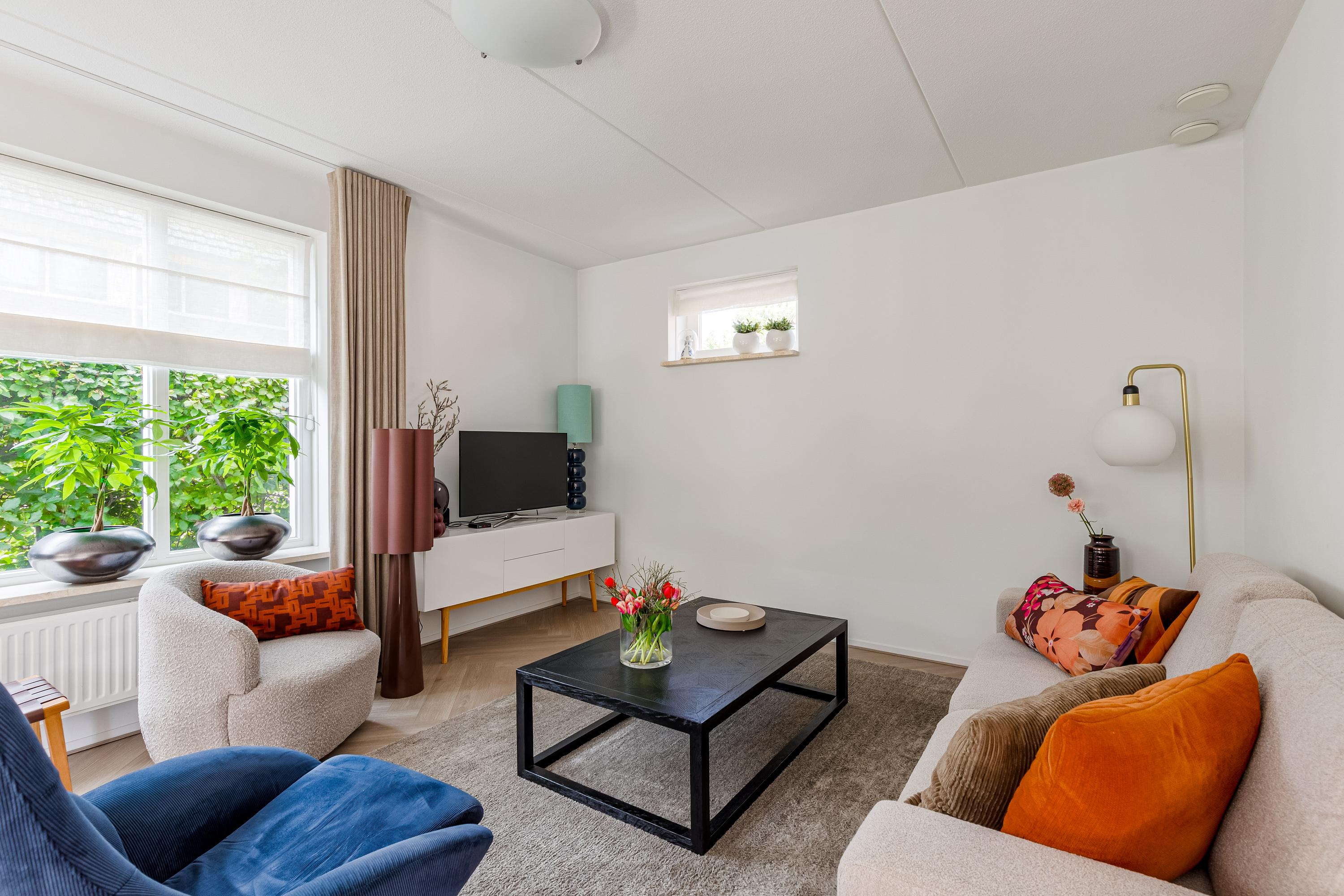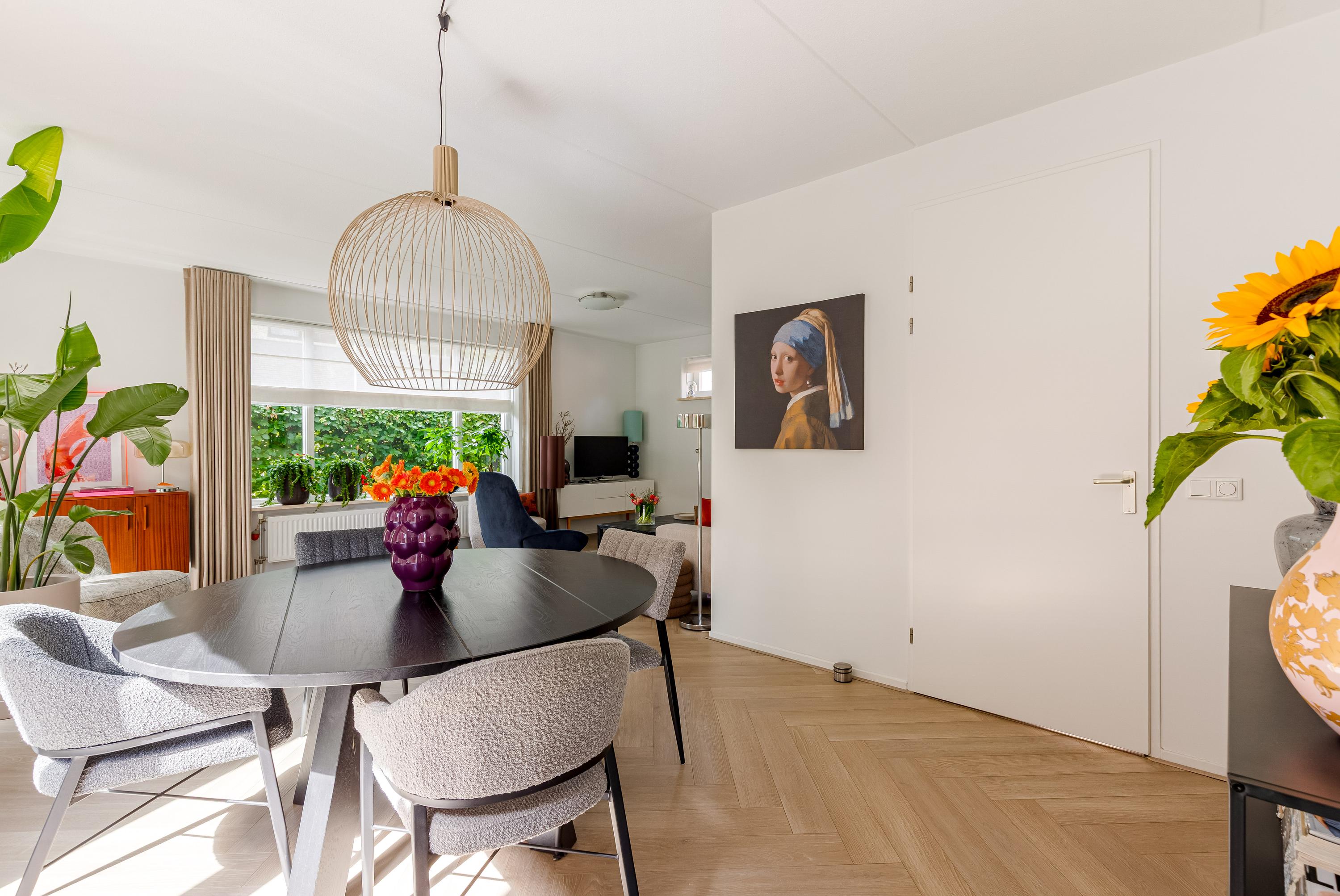 Via de ruime oprit (met plaats voor meerdere auto's én een laadpaal) betreed je de woning in een verzorgde hal met meterkast, toilet, trapopgang en toegang tot de living. De royale en lichte woonkamer straalt luxe uit, met een fraaie visgraatvloer, grote raampartijen en 2x dubbele openslaande deuren naar de zonnige achtertuin. De naadloze verbinding tussen binnen en buiten maakt dit een ideale plek om te ontspannen of te entertainen.