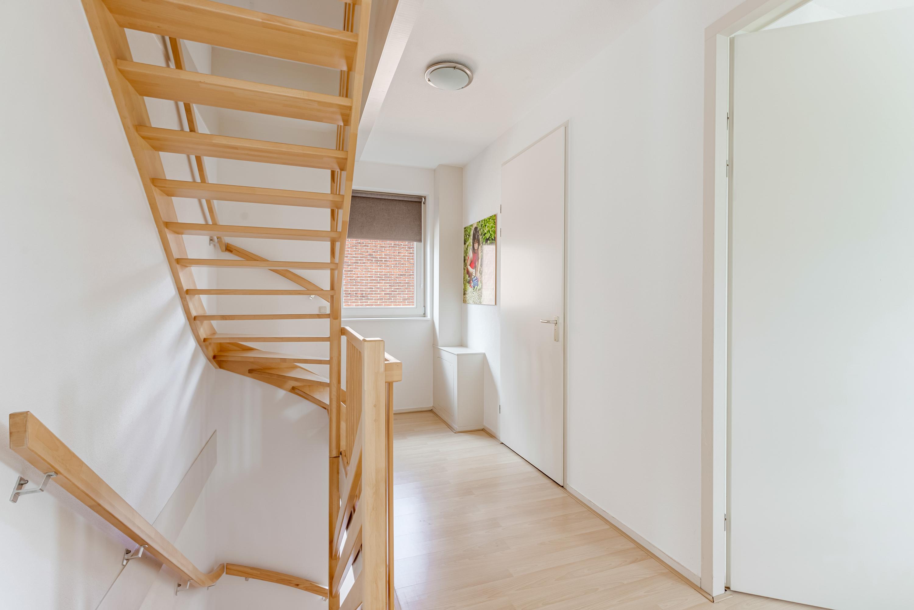 De ruime overloop biedt toegang tot vier goed bemeten slaapkamers en een luxe badkamer. Twee slaapkamers bevinden zich aan de voorzijde, terwijl de derde slaapkamer en de badkamer aan de achterzijde liggen. De stijlvolle badkamer is voorzien van een dubbele wastafel met meubel, ligbad, inloopdouche en een tweede toilet. De vierde slaapkamer is thans in gebruik als inloopkast maar kan indien gewenst worden ingericht als extra slaapkamer of werkruimte.