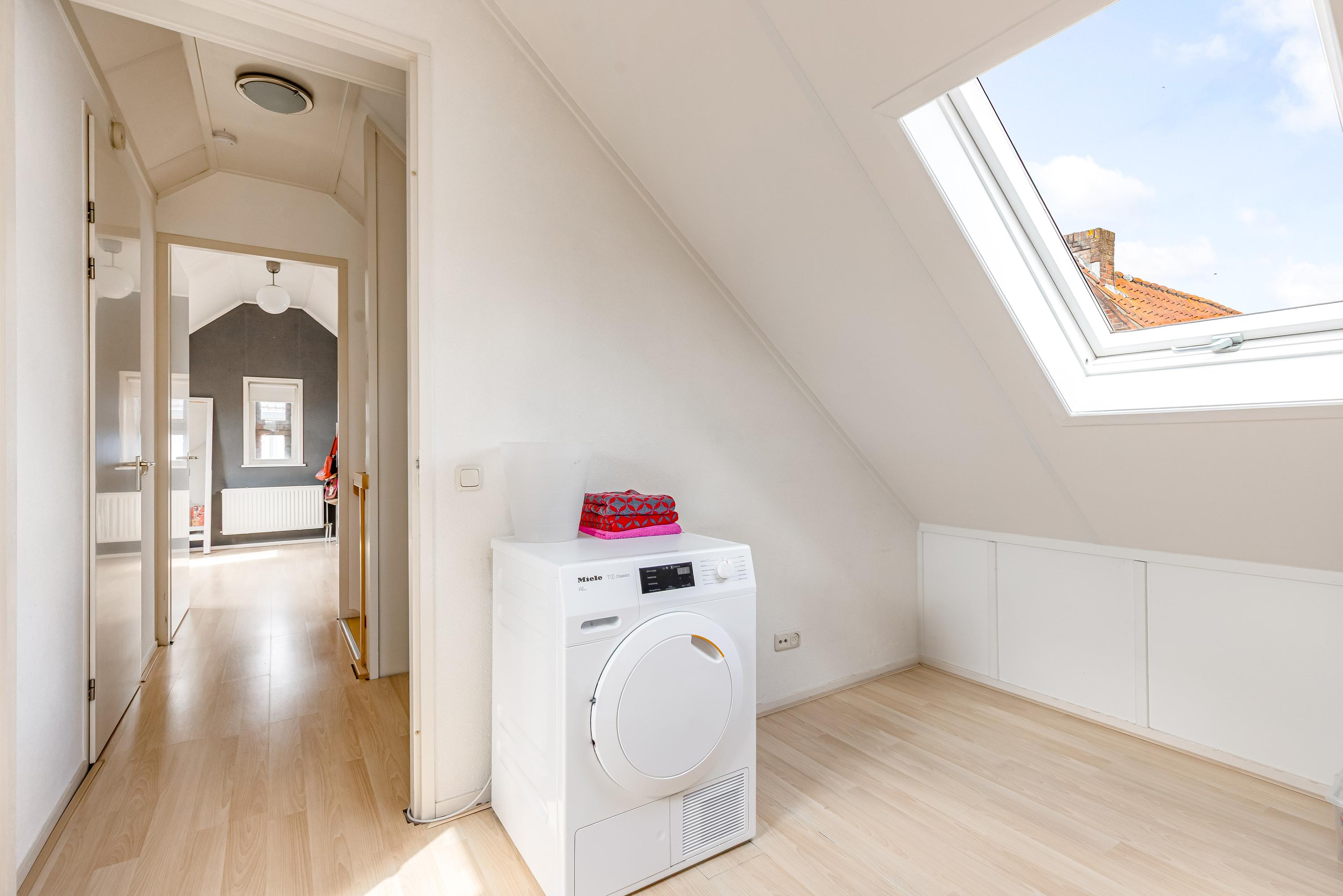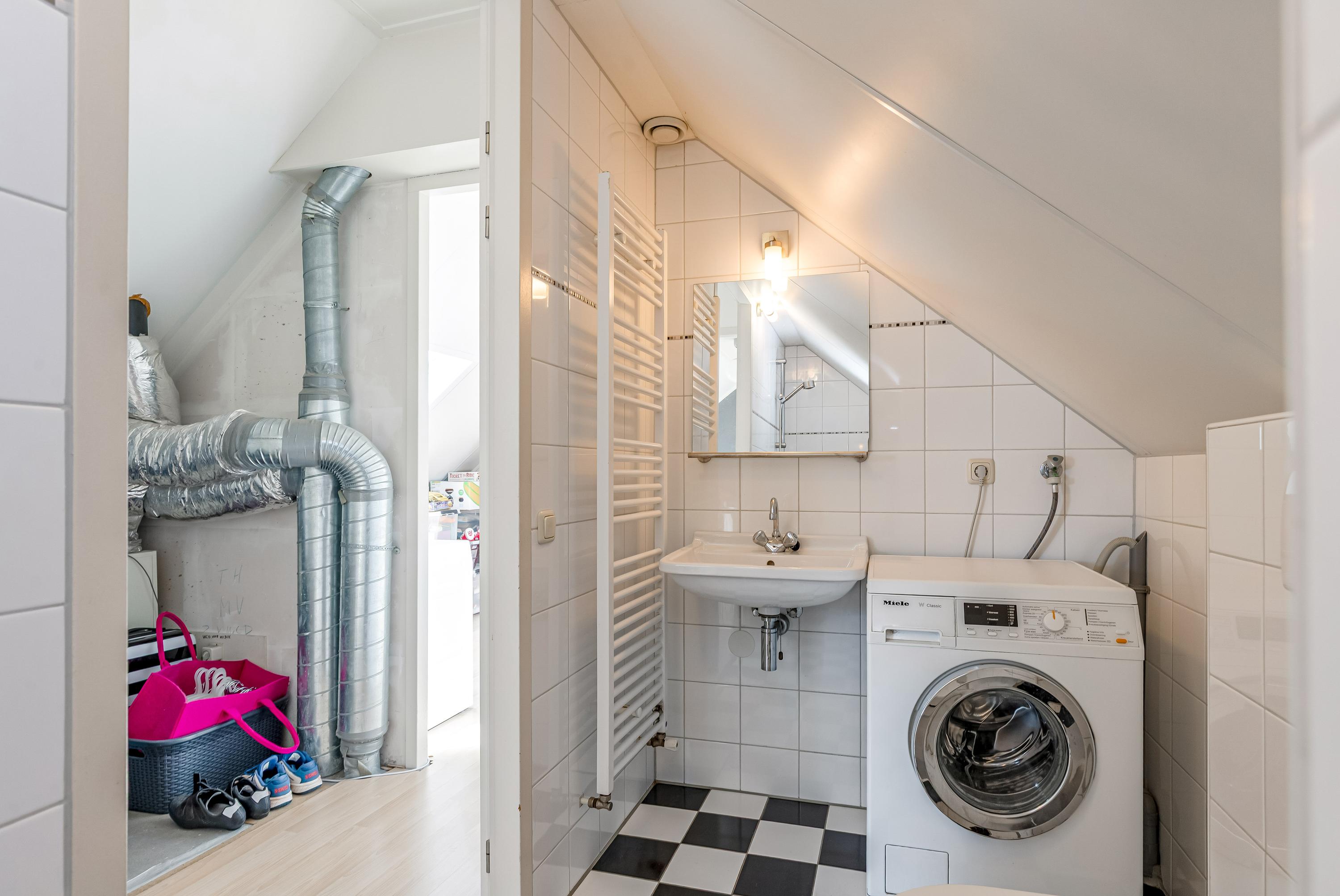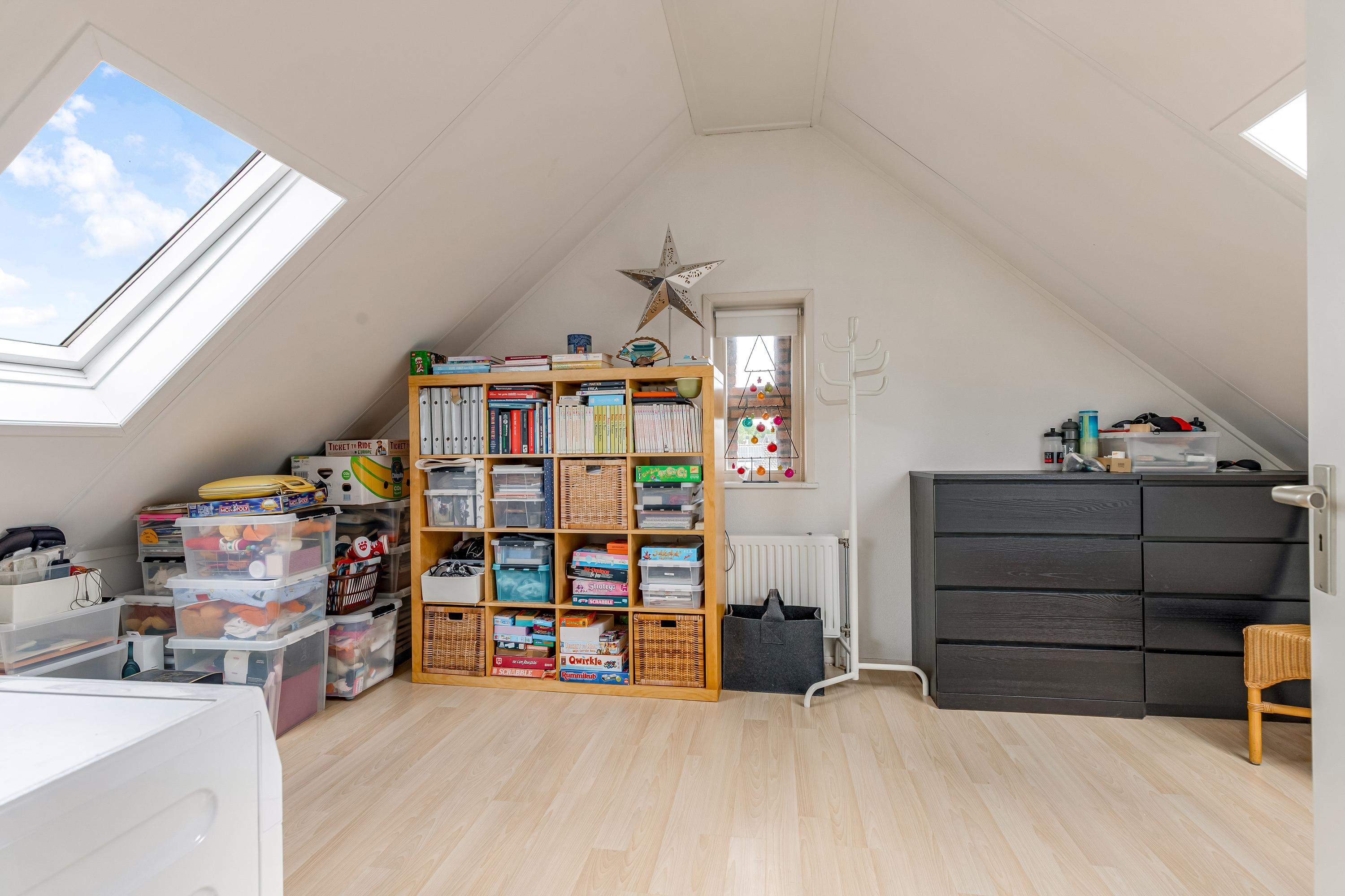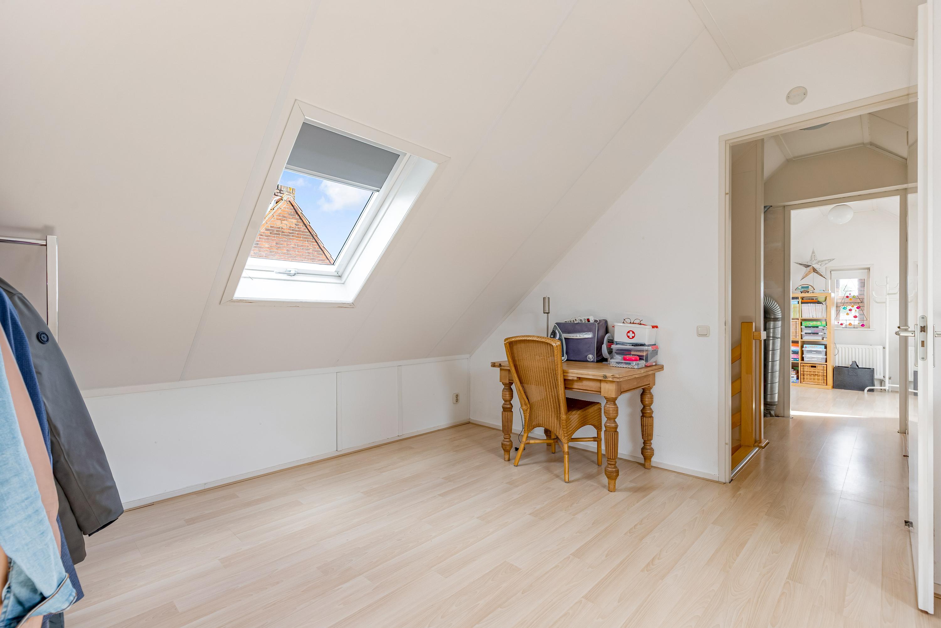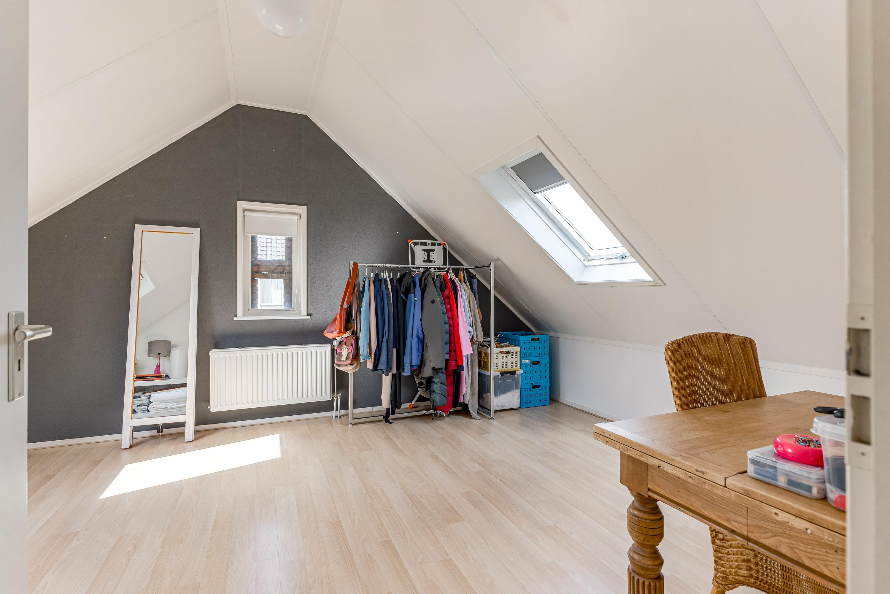 Op de zolderverdieping vind je nog twee ruime slaapkamers, beide met dakramen voor prettig daglicht. Ook bevindt zich hier een tweede complete badkamer met douche, wastafel, wasmachine aansluiting en derde toilet, evenals een praktische bergkast met opstelplaats voor de cv-installatie.