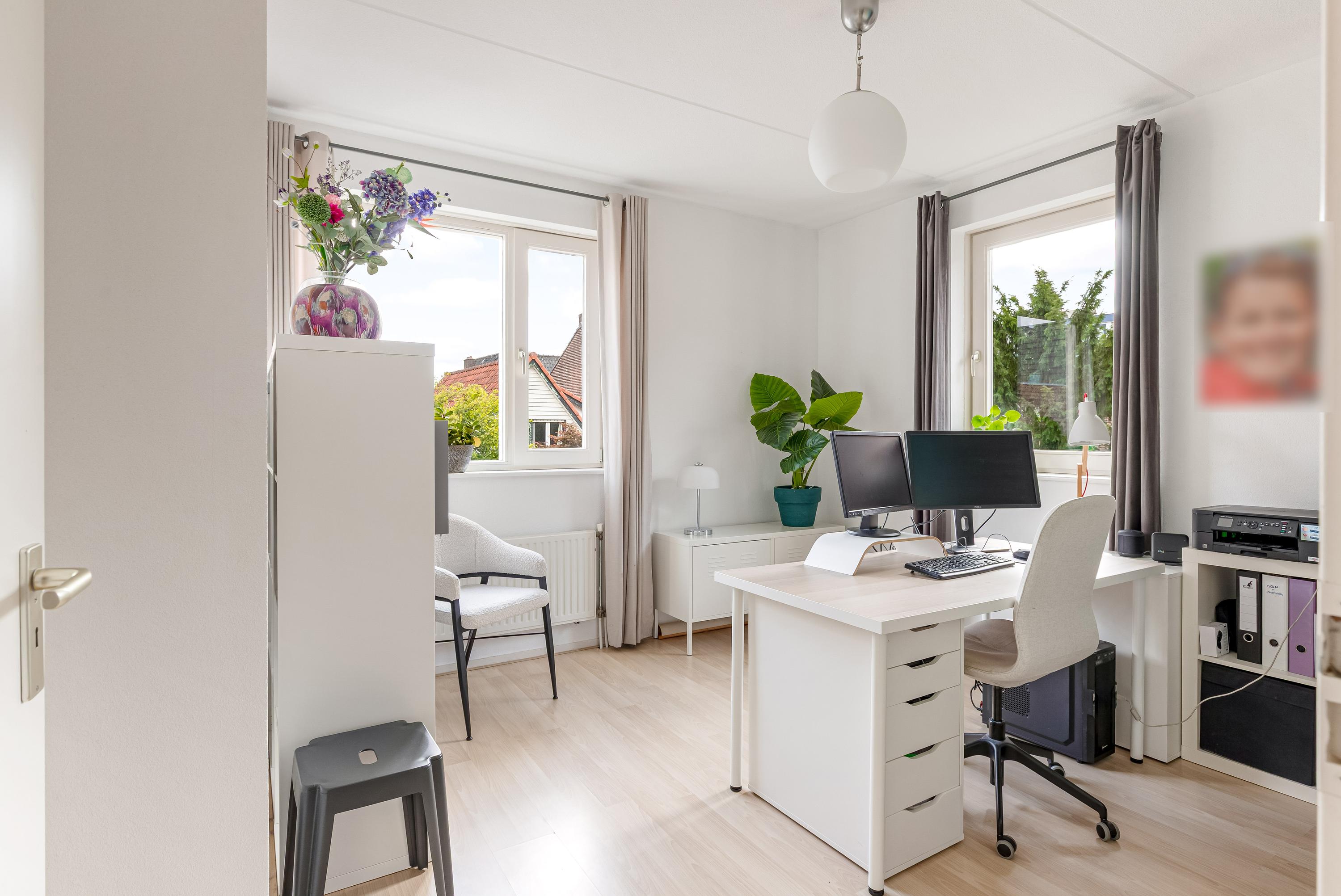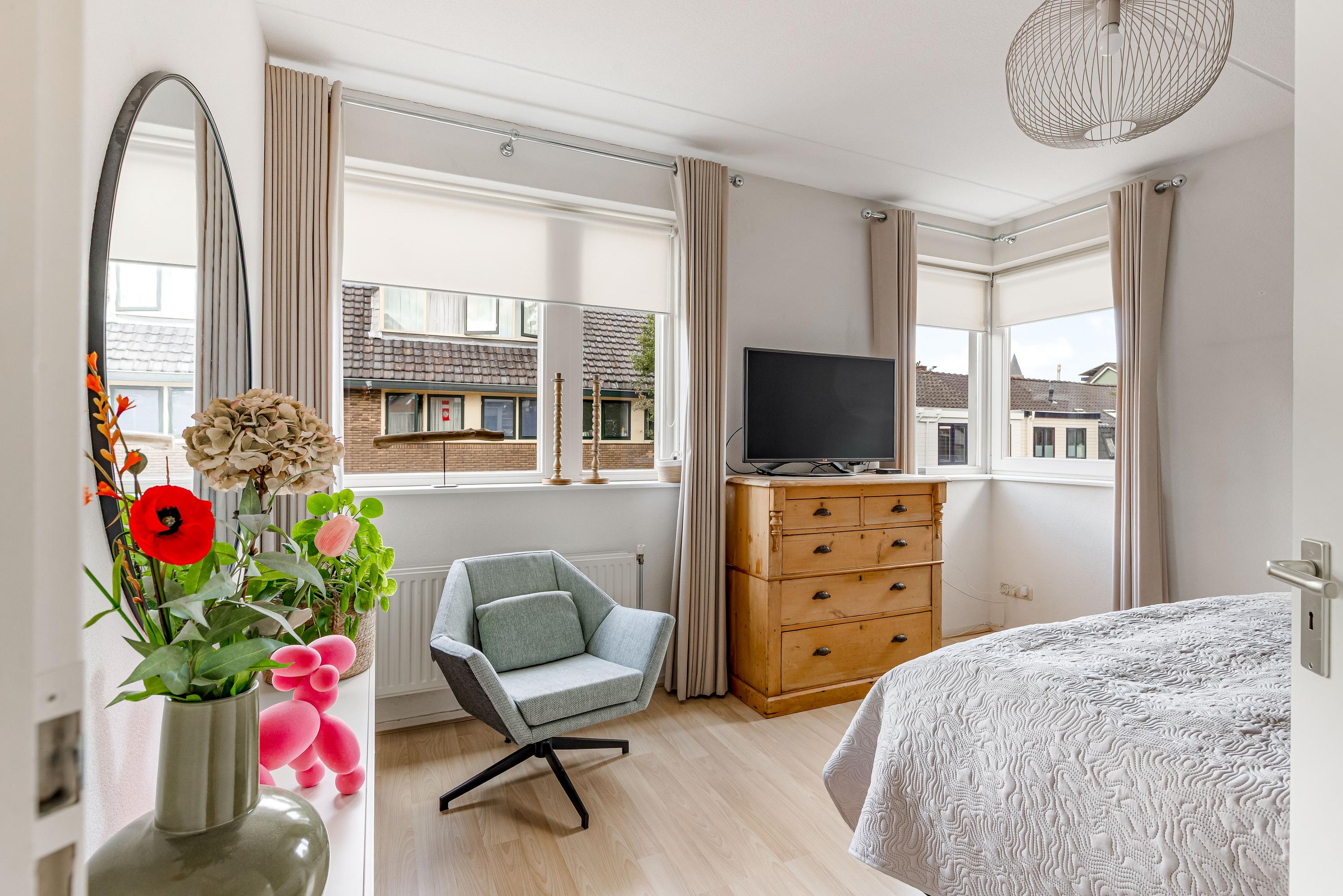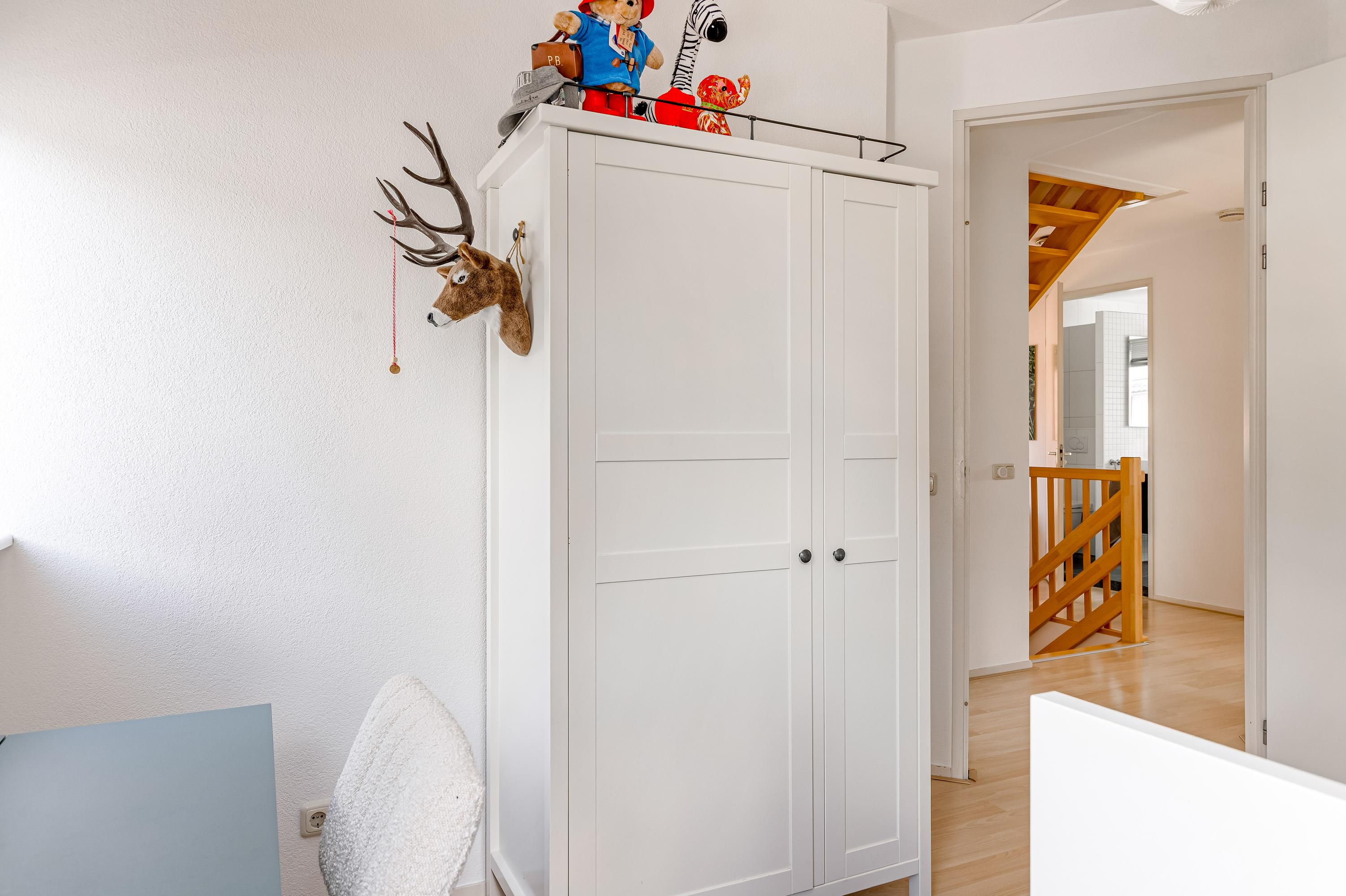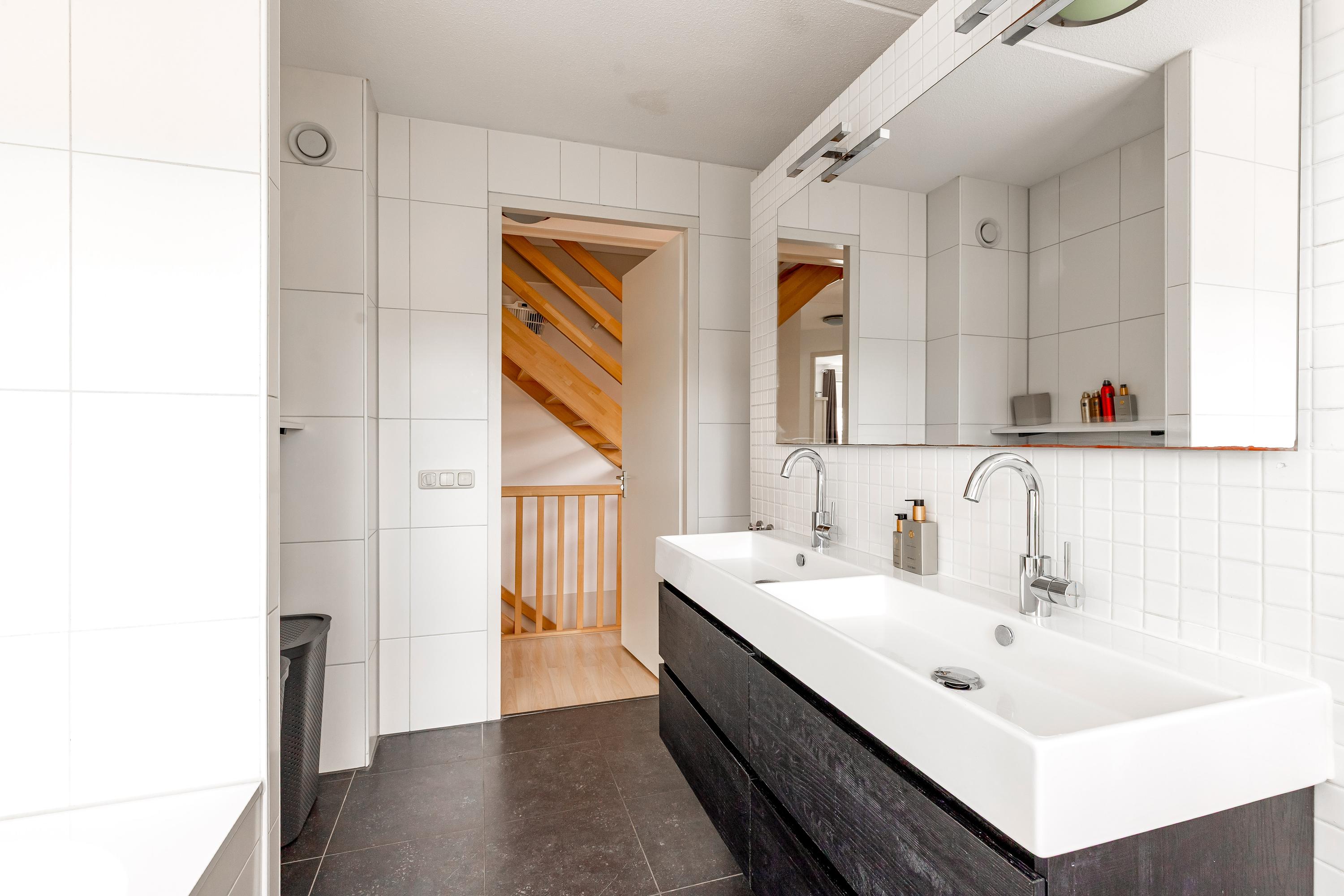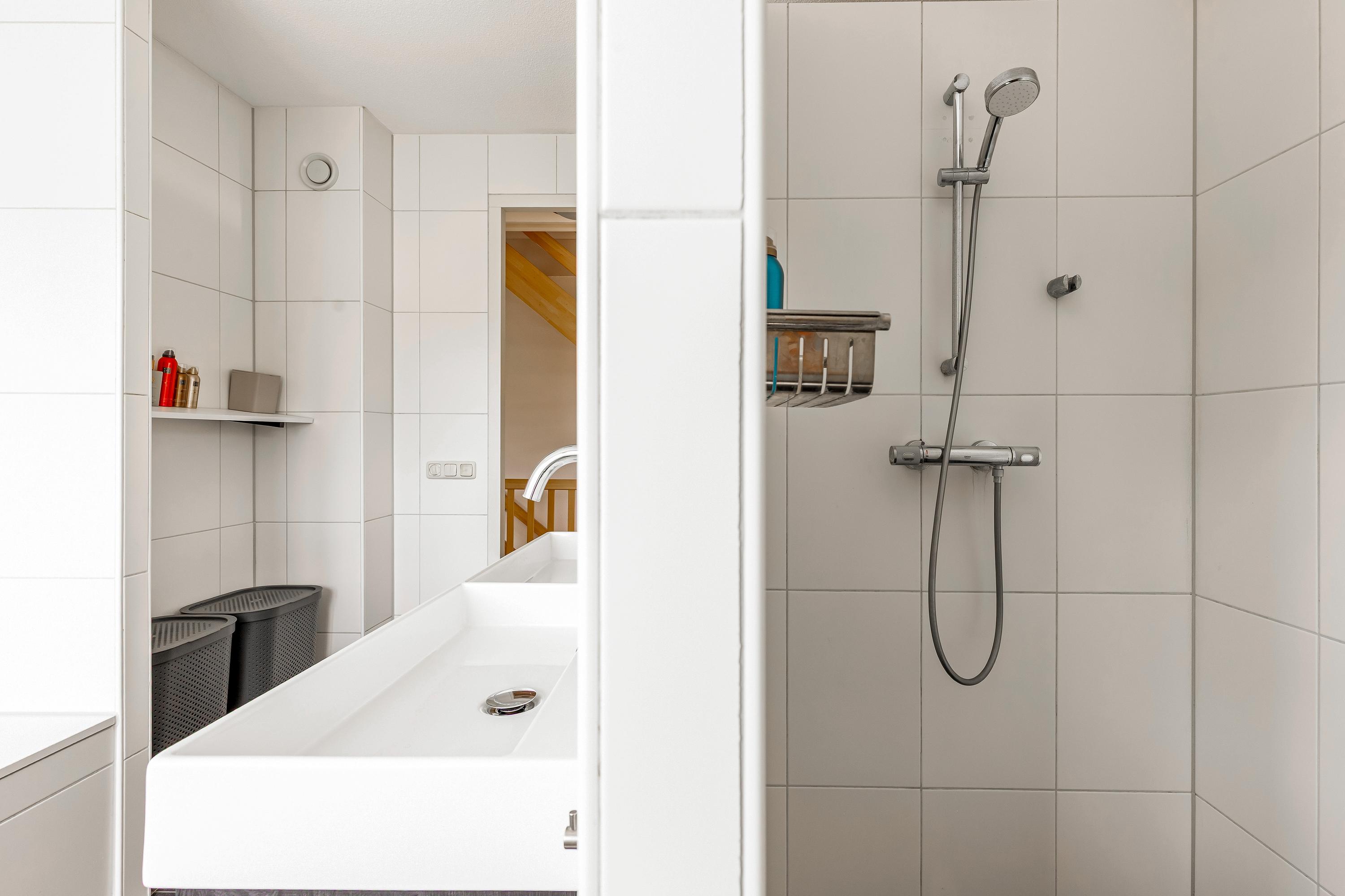 Op de zolderverdieping vind je nog twee ruime slaapkamers, beide met dakramen voor prettig daglicht. Ook bevindt zich hier een tweede complete badkamer met douche, wastafel, wasmachine aansluiting en derde toilet, evenals een praktische bergkast met opstelplaats voor de cv-installatie.