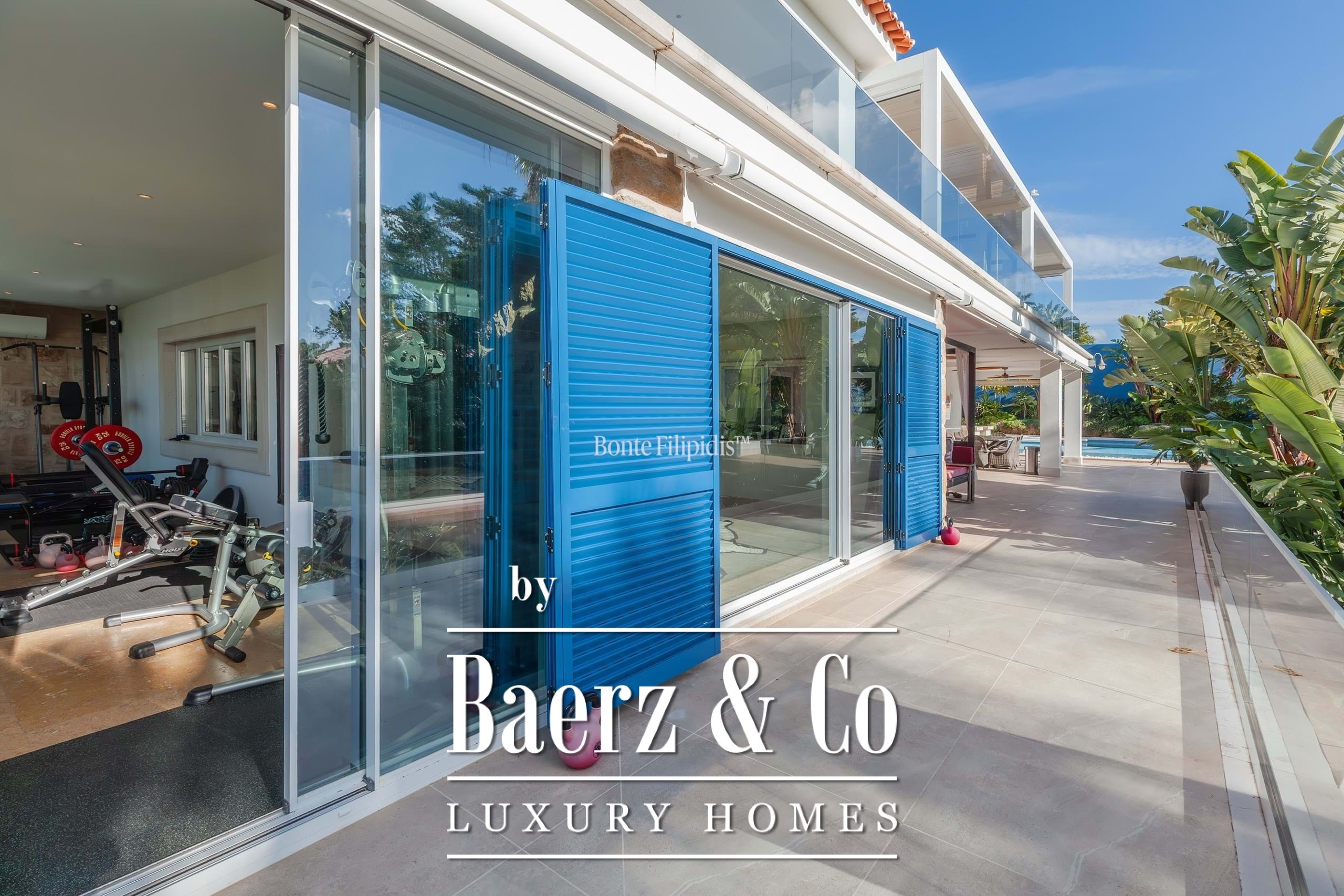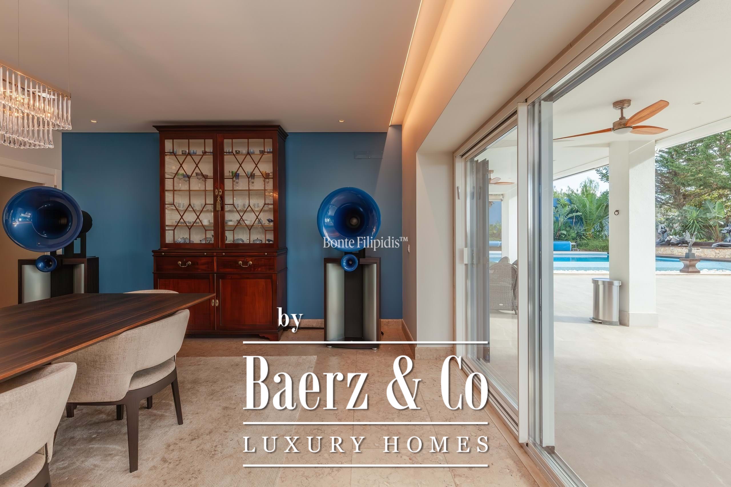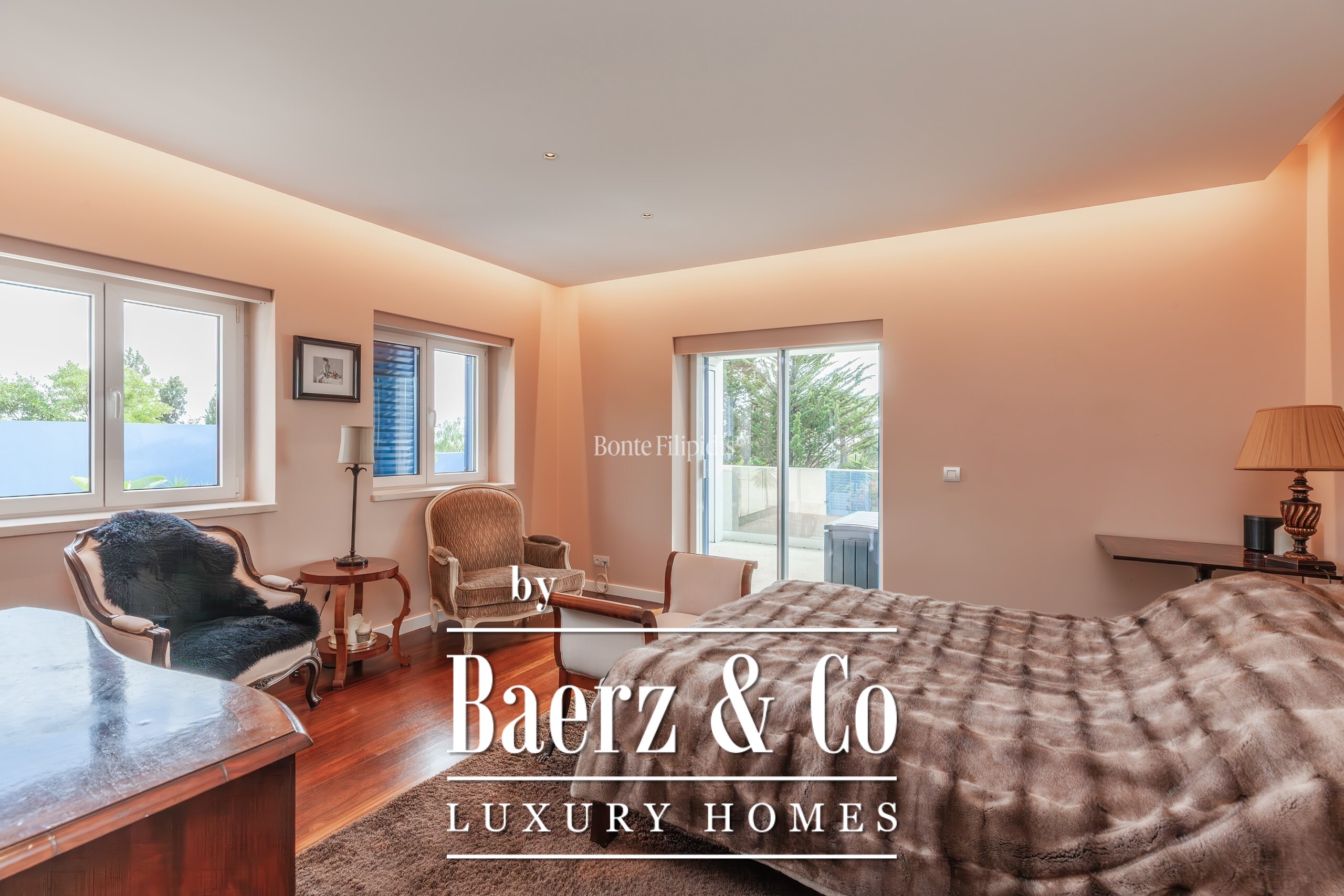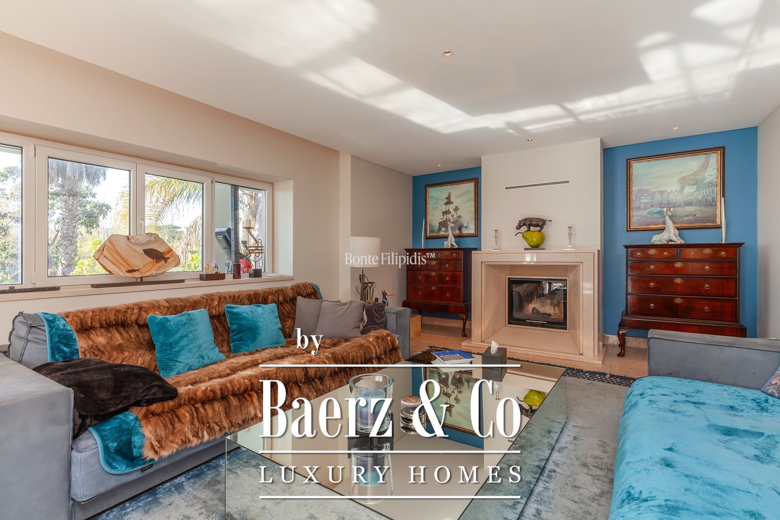 Villa Cascais e Estoril ligt op een uitzonderlijk perceel van 2.100 m² op het hoogste punt van Estoril en creëert een zeldzame balans tussen beslotenheid en comfort. Deze villa bevindt zich tussen de gerenommeerde Estoril Golf Course en directe, exclusieve toegang tot de Estoril Tennis Club; een harmonieuze combinatie van privacy en verbondenheid. Over twee verdiepingen ontvouwt zich het zeezicht, terwijl royale terrassen de tuin verdelen in diverse leefruimtes, voorzien van overdekte zitplekken, een vijver, waterval, jacuzzi en verwarmd zoutwaterzwembad voor een serene ambiance.