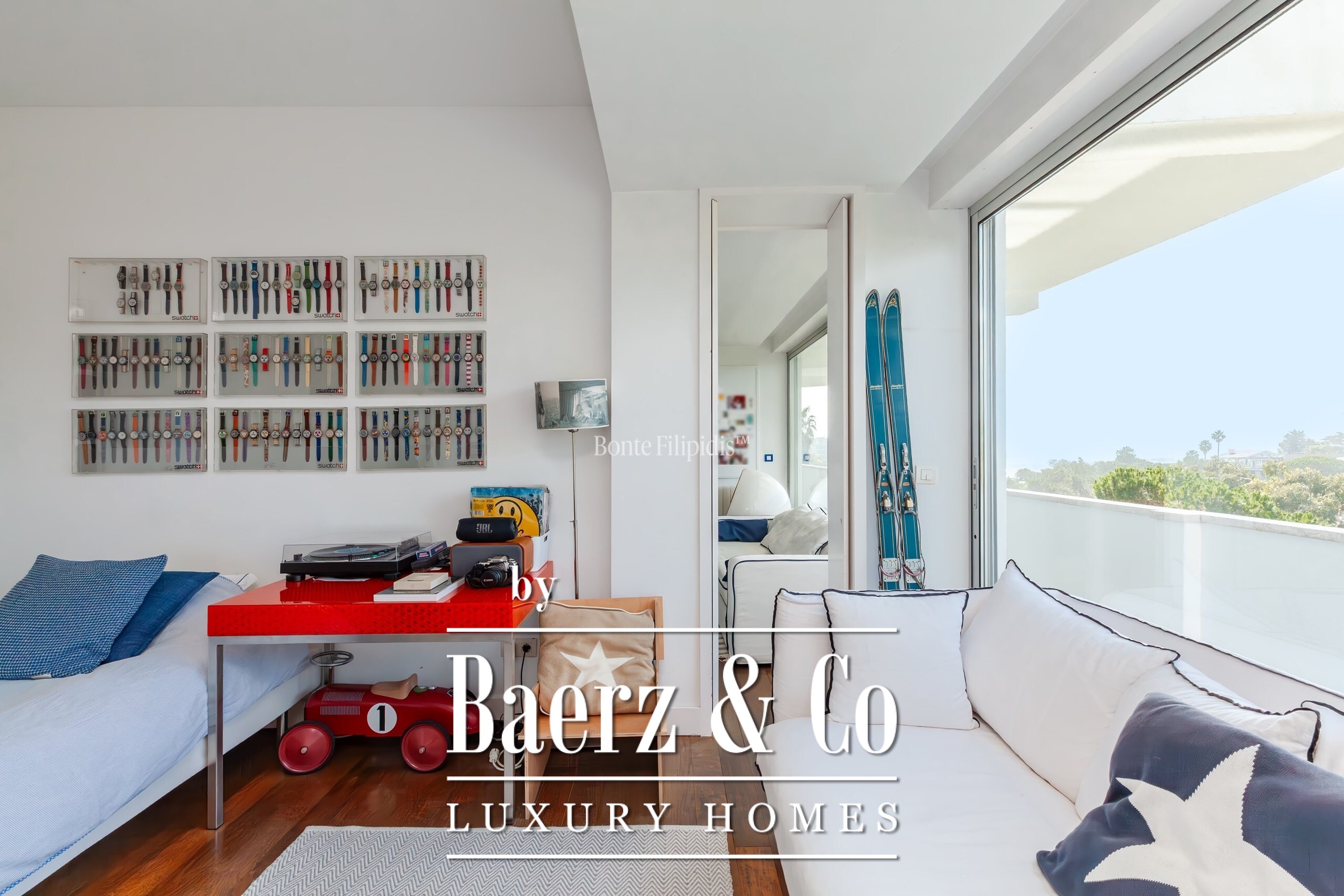 De slaapverdieping wordt gekenmerkt door een serene master suite met eigen terras, inloopkast, ensuite badkamer en fitnessruimte. Drie extra slaapkamers delen een terras op het zuiden met zeezicht en twee extra badkamers. De atelierverdieping van 216 m², met potentieel voor een eigen toegang, kan worden ingericht als gastenappartement, studio of privéverblijf.