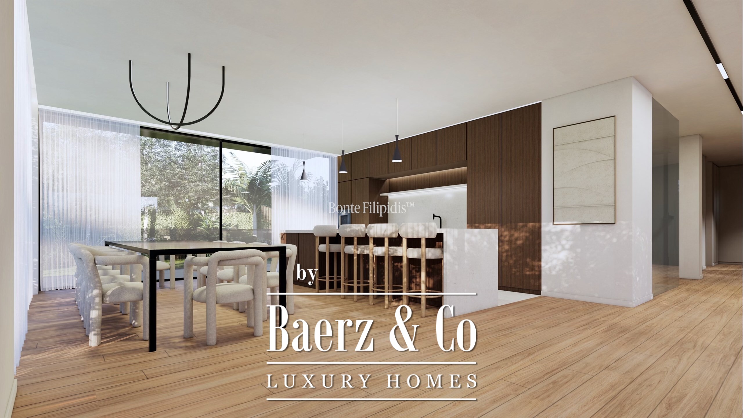 De villa is uitgerust met technologische voorzieningen zoals vloerverwarming, VRF/VRV-airconditioning, geïntegreerd Sonos-geluidssysteem, domoticasysteem, camerabewaking, oplaadpunt voor elektrische auto’s en een ethernetnetwerk. Havwoods eiken vloeren en een travertin gevel omlijsten de leefruimtes; de badkamers zijn afgewerkt met Laufen en Dornbracht.