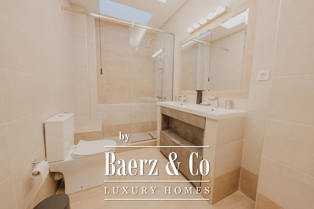 Het appartement is zorgvuldig en volledig gerenoveerd, waarbij hedendaags design wordt gecombineerd met hoogwaardige materialen. De woon- en eetkamer verbreden naar het balkon aan de waterzijde, waardoor natuurlijk licht binnenvalt en dagelijks het uitzicht op de Egeïsche Zee en de zonsondergang wordt omlijst. De aparte, volledig uitgeruste keuken biedt privacy en praktisch comfort, terwijl alle drie de slaapkamers voorzien zijn van royale inbouwkasten en een veilige kluis. Twee badkamers zijn gericht op comfort en helderheid, met moderne afwerkingen die de kwaliteitsbeleving versterken.