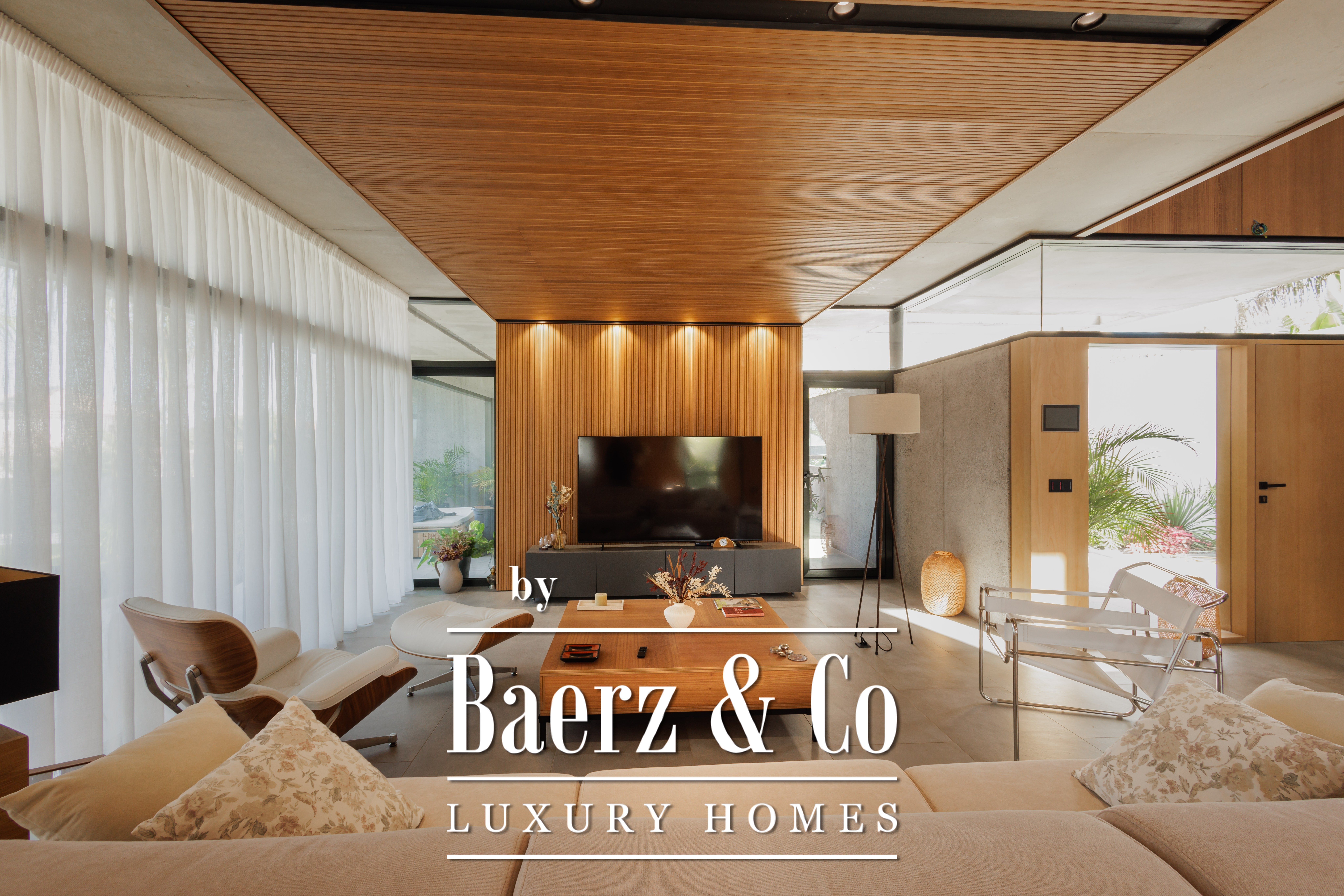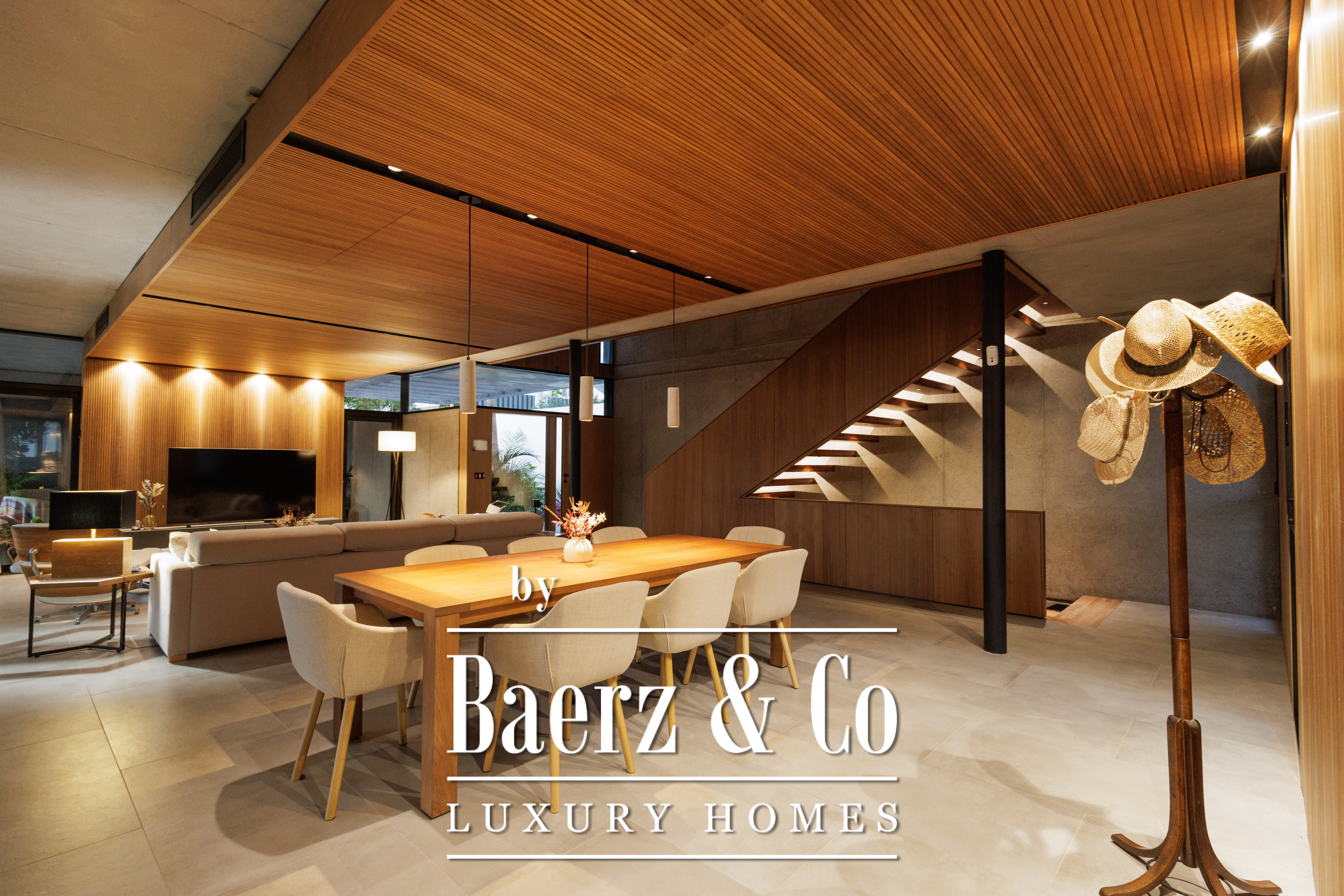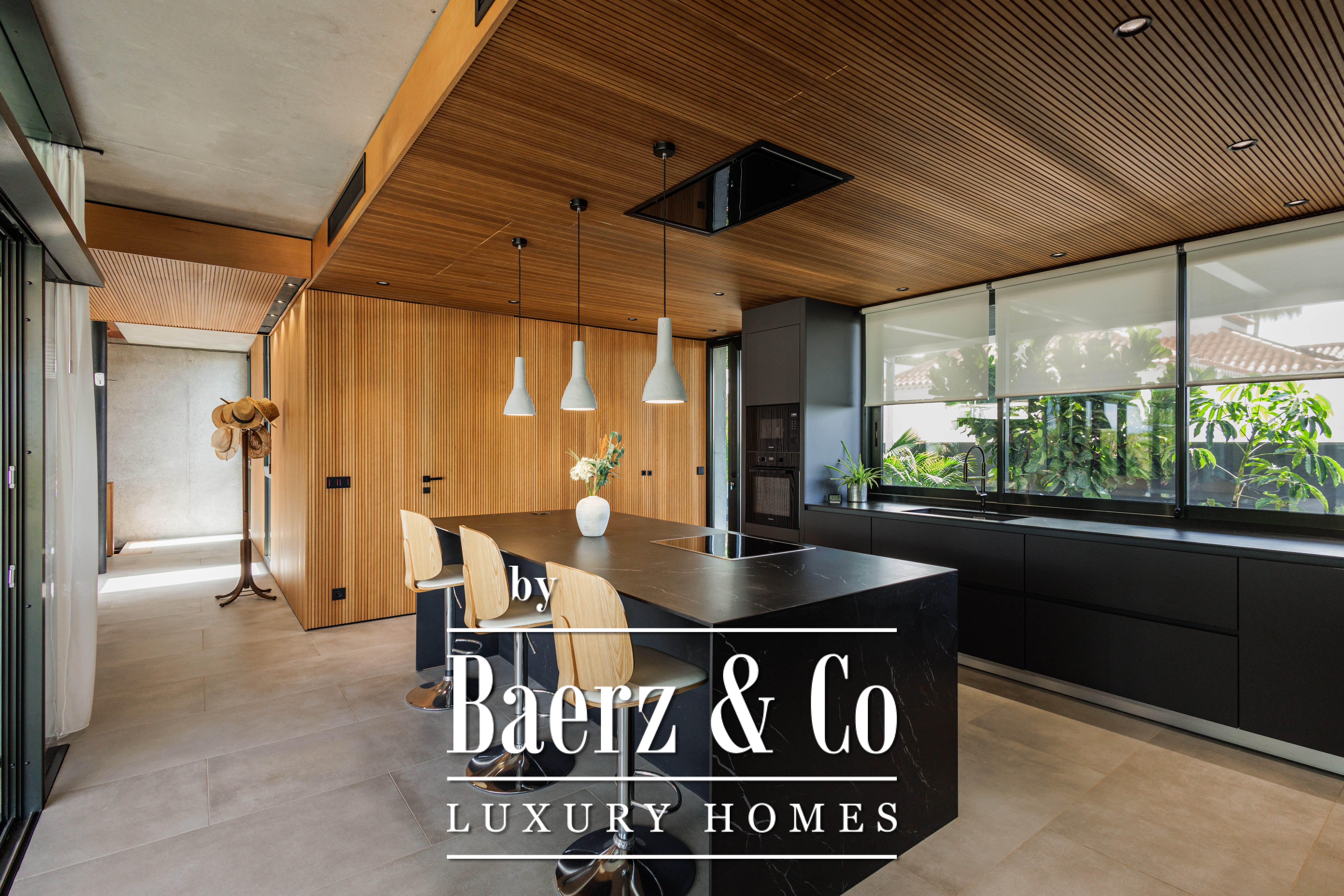Deze villa is meer dan een huis, het is een waar kunstwerk. De architectuur is zorgvuldig gemaakt met gepolijst beton, warme houtaccenten en natuursteen en straalt eigentijdse verfijning uit. Strakke lijnen, minimalistisch design en eersteklas materialen zoals glas, staal en beton creëren een verbluffende esthetiek en zorgen tegelijkertijd voor uitzonderlijke duurzaamheid en een lange levensduur.