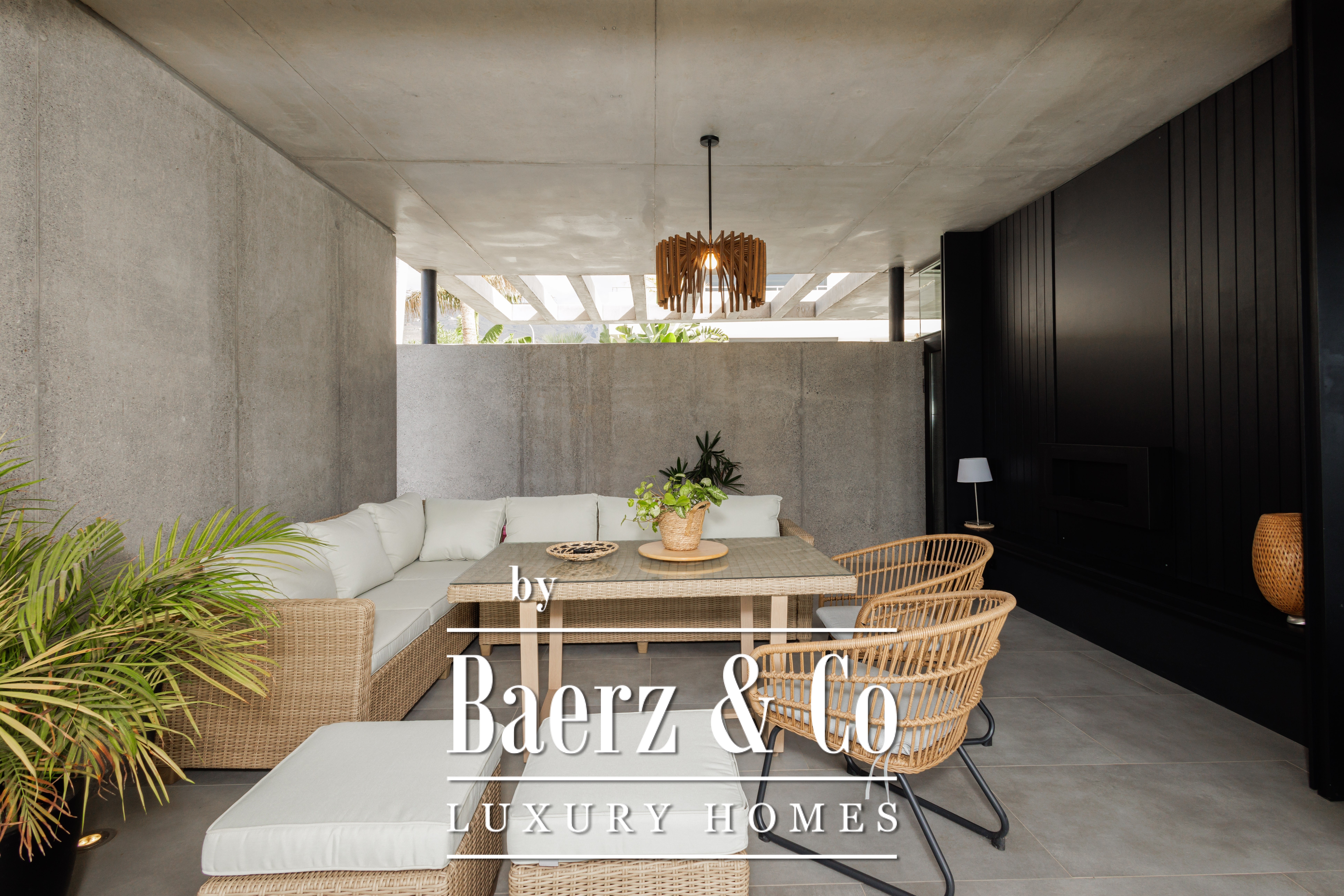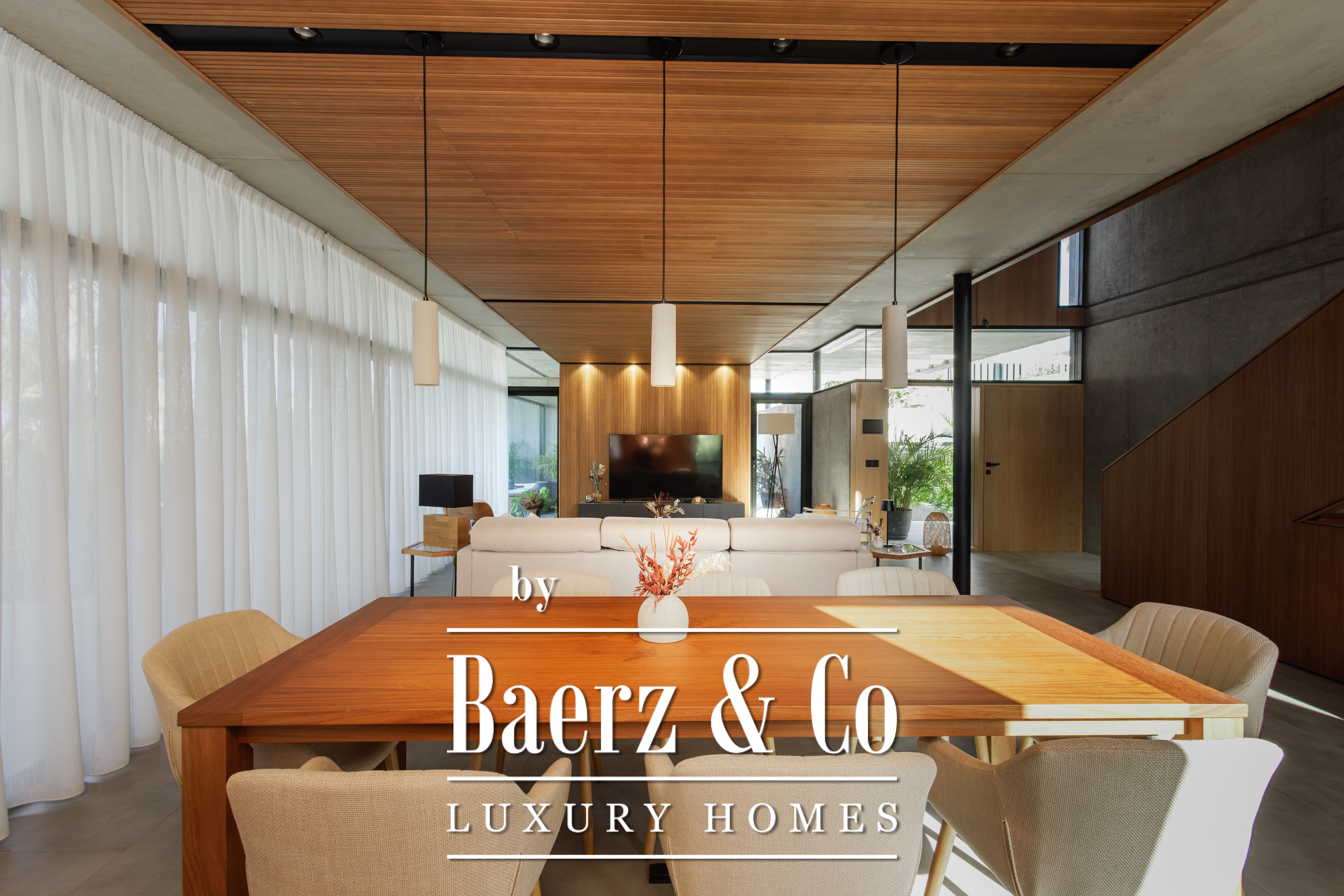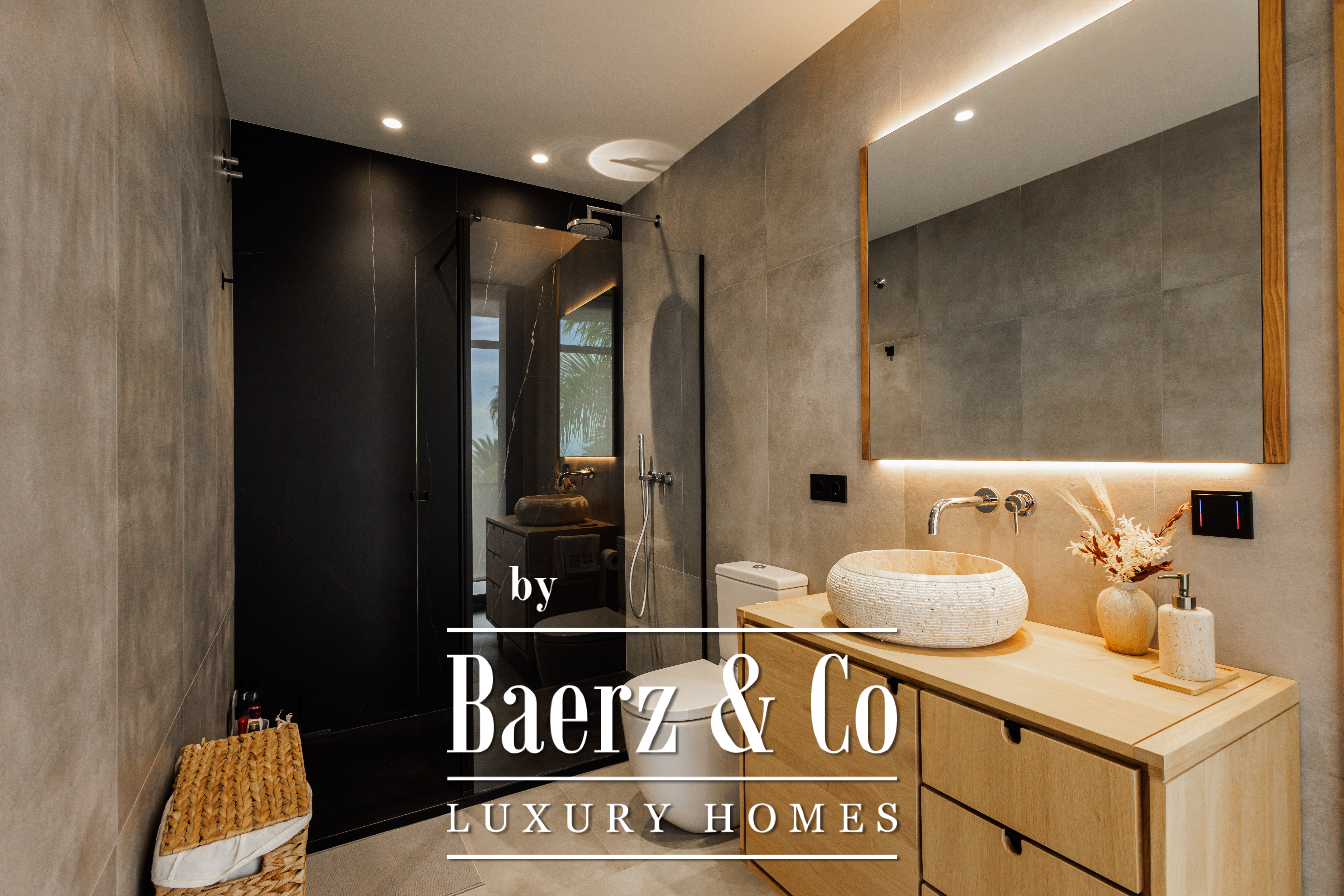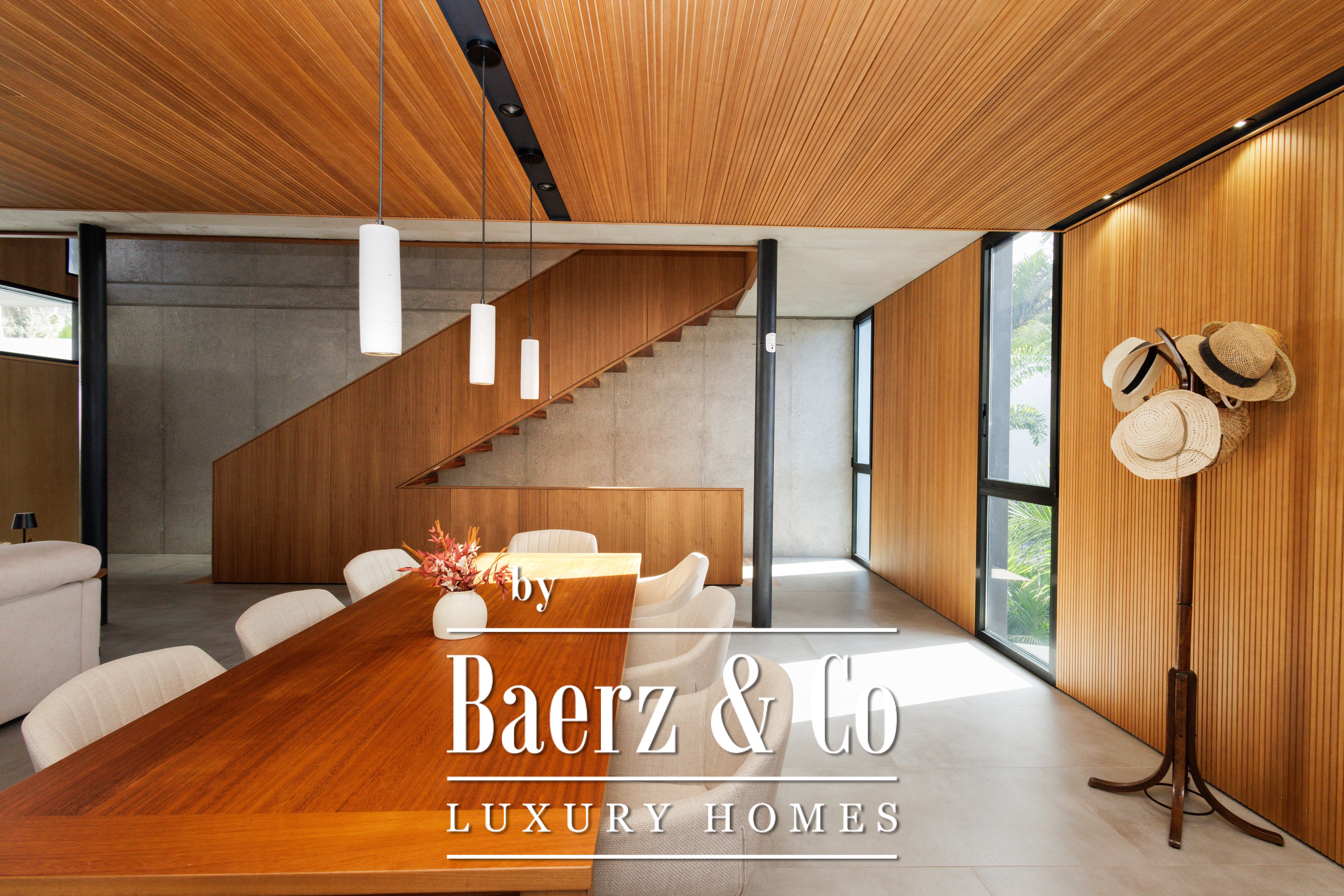 Deze villa is meer dan een huis, het is een waar kunstwerk. De architectuur is zorgvuldig gemaakt met gepolijst beton, warme houtaccenten en natuursteen en straalt eigentijdse verfijning uit. Strakke lijnen, minimalistisch design en eersteklas materialen zoals glas, staal en beton creëren een verbluffende esthetiek en zorgen tegelijkertijd voor uitzonderlijke duurzaamheid en een lange levensduur.
