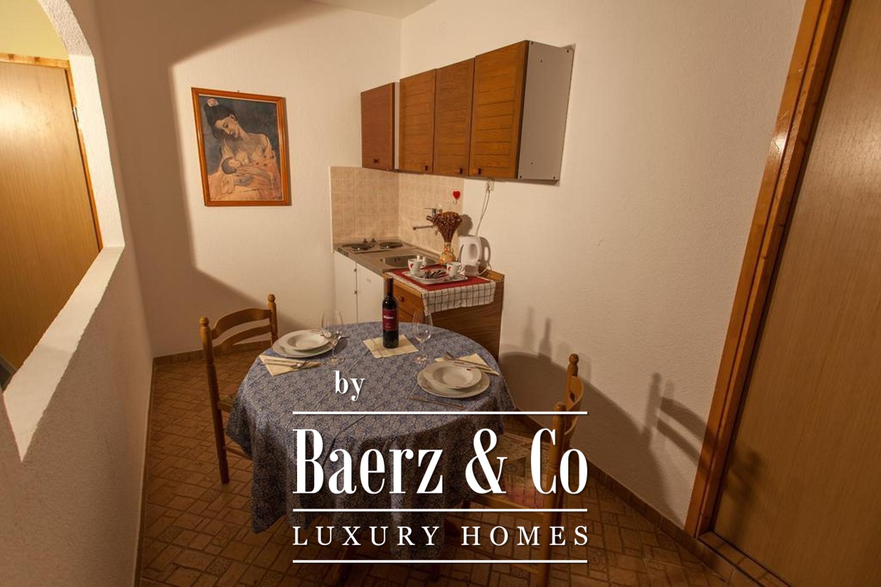 Op de tweede verdieping bevinden zich twee studio’s en de entree van een royaal duplex-appartement met keuken, eetgedeelte, woonkamer, wasruimte en ruim terras. De bovenste duplexverdieping biedt twee slaapkamers, een badkamer en een inloopkast, wat bijdraagt aan een hoogwaardig woongenot. Hoogwaardige buitenkozijnen, een vernieuwd dak en een recent gerestaureerde gevel onderstrepen het duurzame karakter van deze investering. Privéparkeerplaatsen voor zeven auto’s, op slechts 100 meter afstand, zijn inbegrepen. Dankzij de veelzijdigheid—als gezinswoning, gastenverblijf of investering—is deze woning een unieke kans binnen de tijdloze charme van Cres.