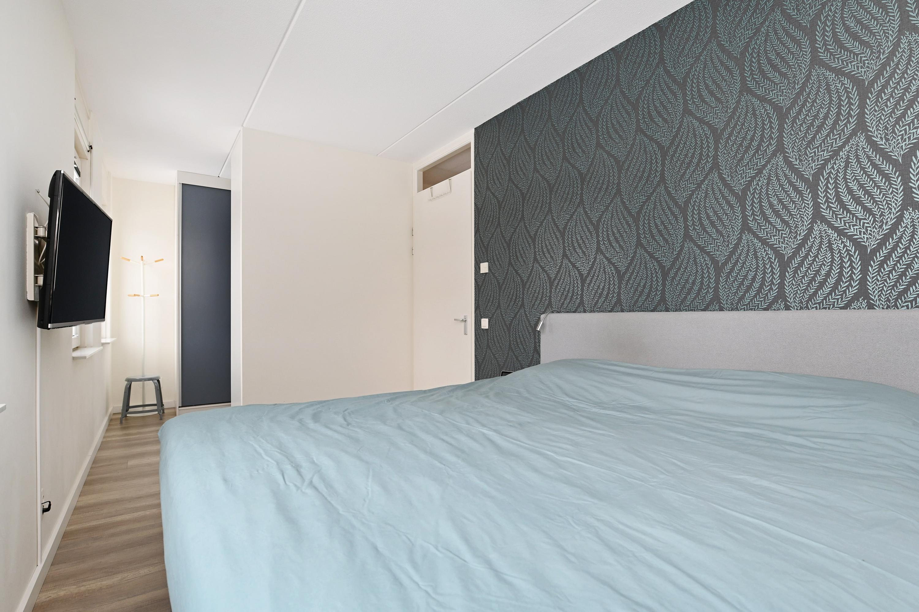 Overloop, twee slaapkamers, waarvan de slaapkamer aan de voorzijde is voorzien van een wastafel en tevens een semi-open ruimte heeft die in gebruik is als praktische berging. Hier bevindt zich tevens de aansluiting voor de wasmachine en de droger. De slaapkamer aan de achterzijde is eveneens heel ruim en deze heeft een extra dakvenster.