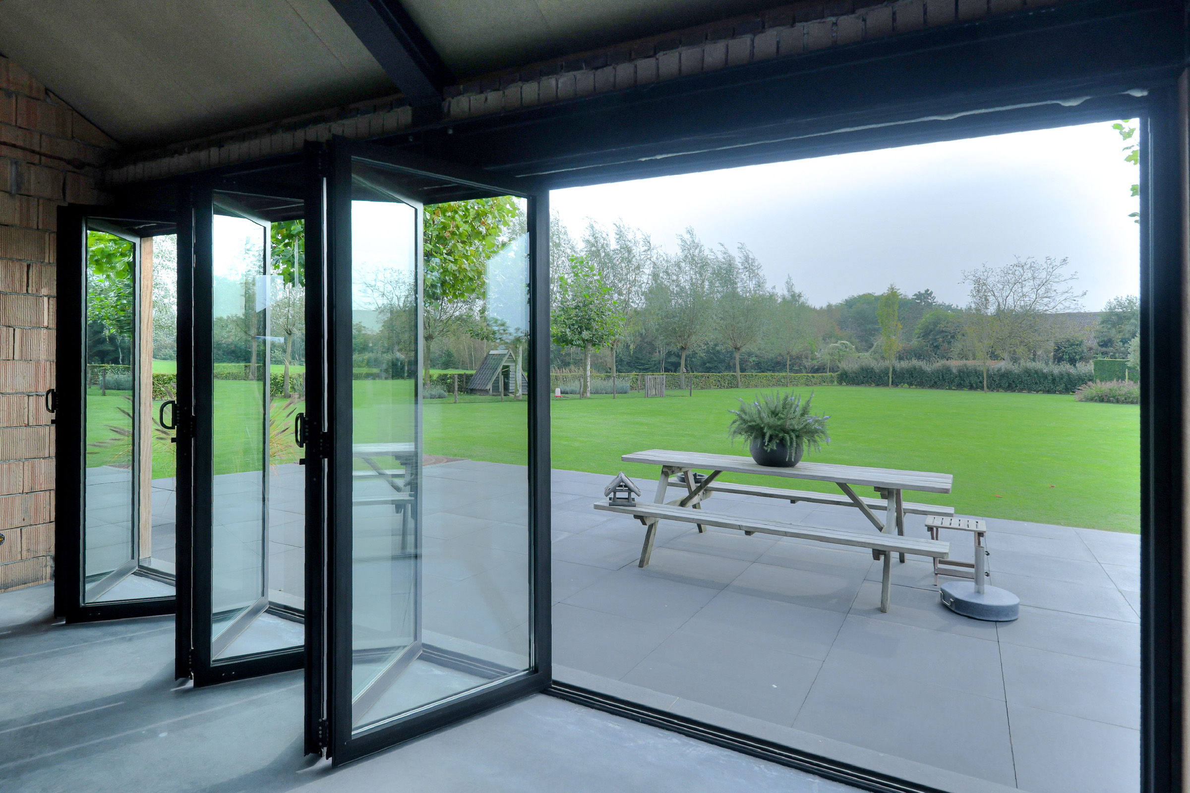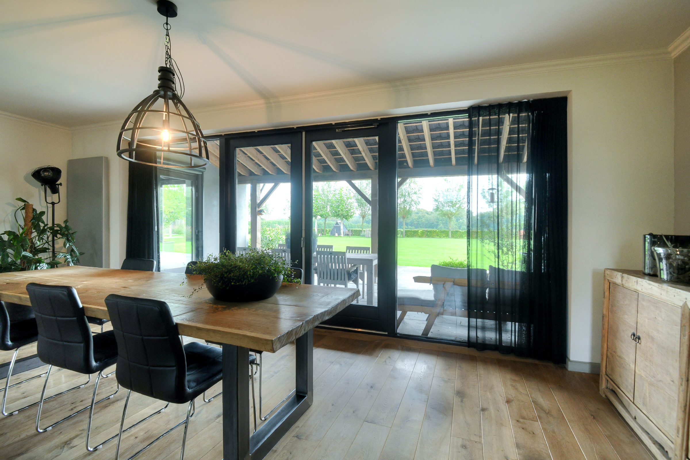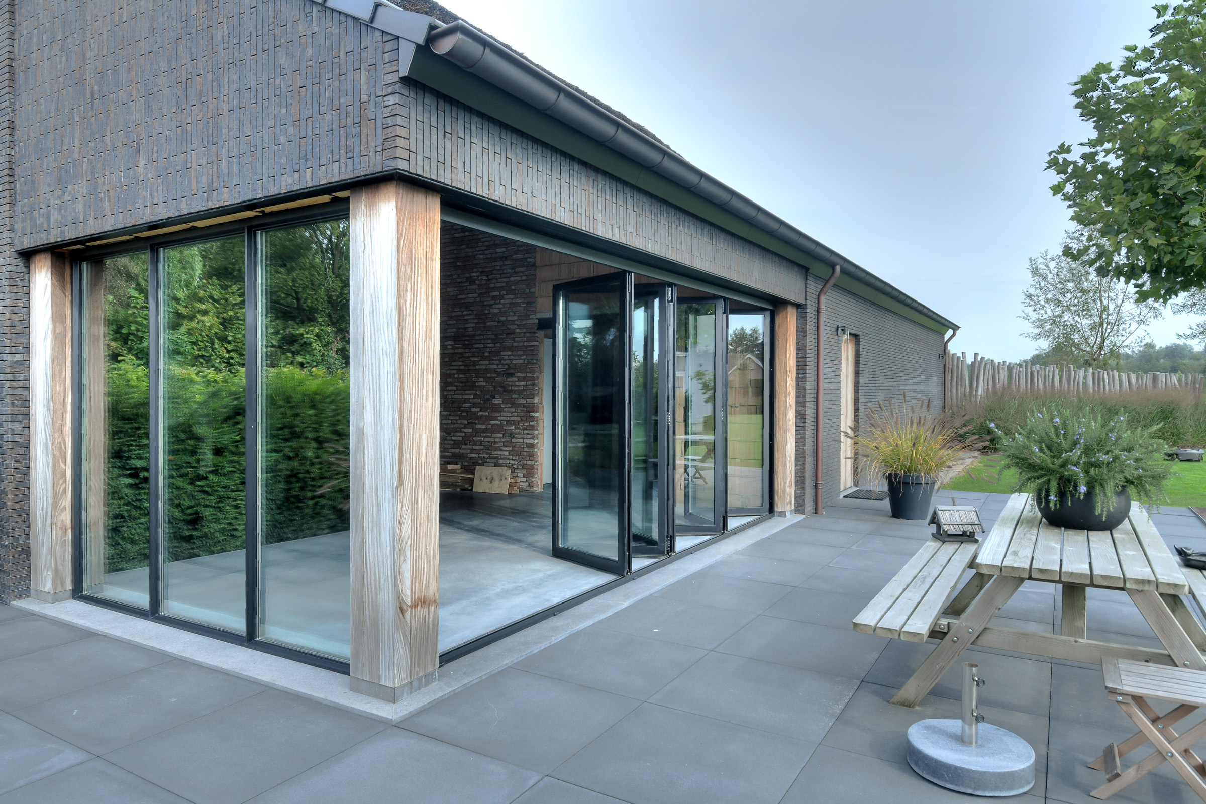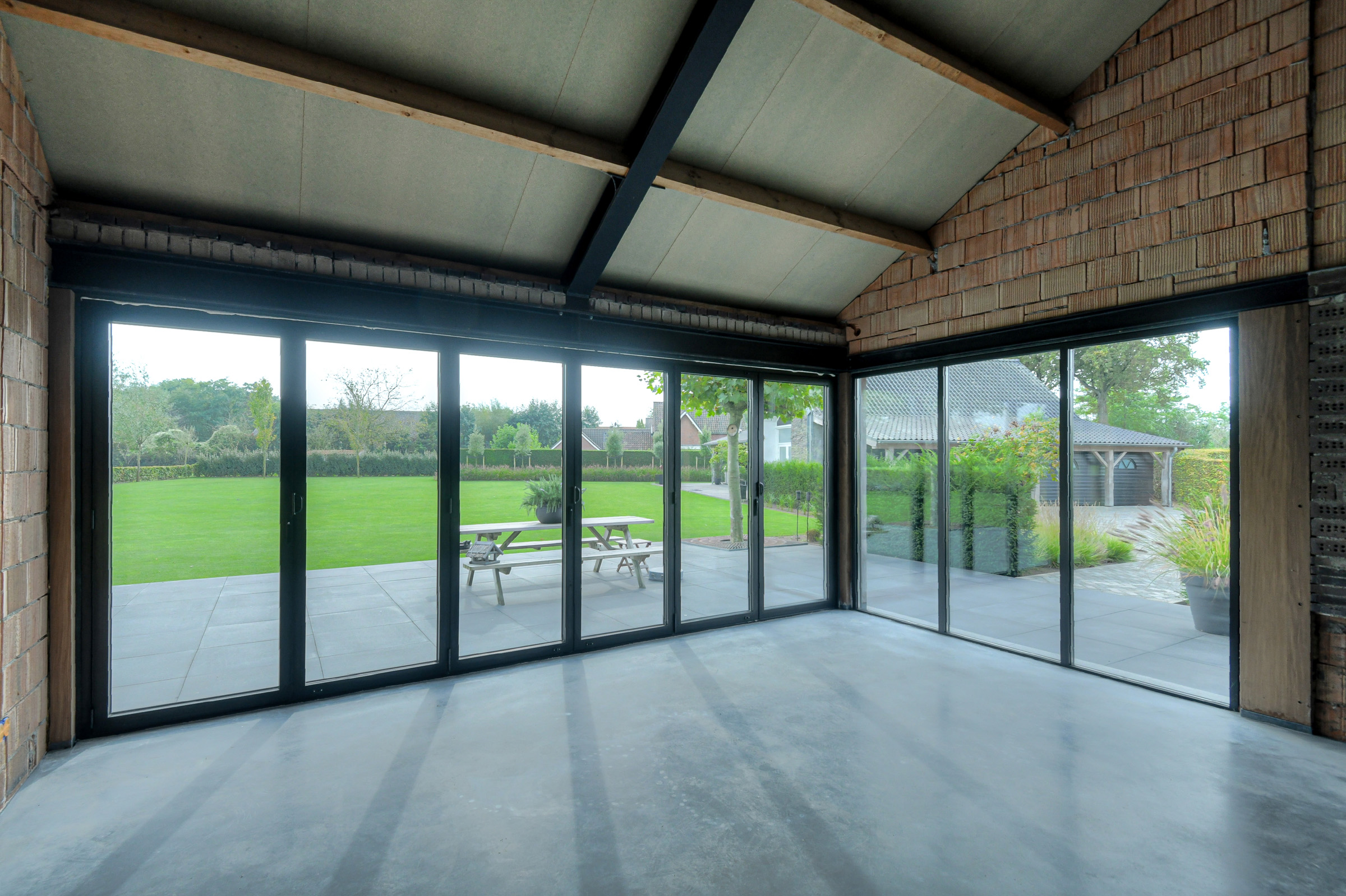 Verder is er een volledig te openen pui/vouwwand aanwezig waardoor een geheel open verbinding met de tuin ontstaat.
