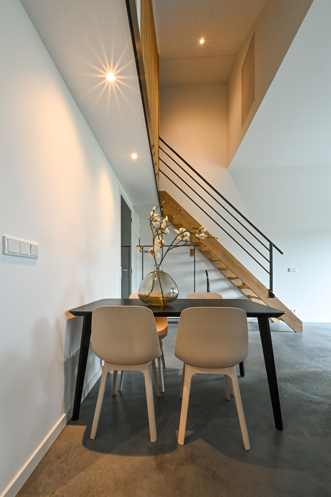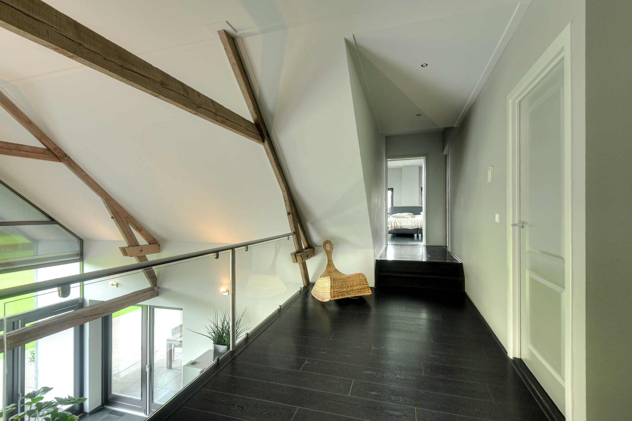 Overloop/vide, met zicht op de woon-/eetkeuken en vanwaar toegang tot: