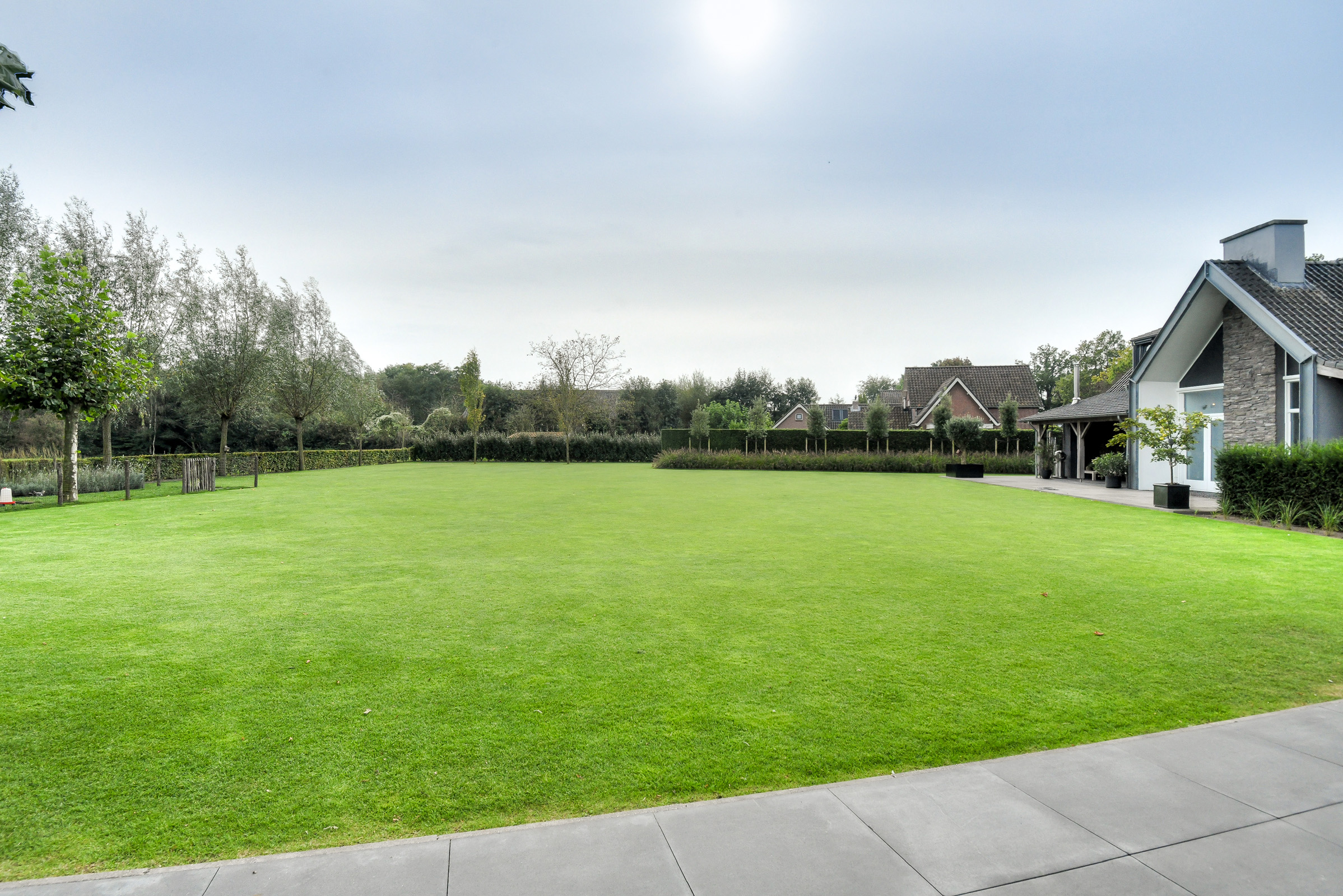 De tuin biedt optimale privacy en is fraai aangelegd, met onder andere een groot gazon, borders met siergrassen, boompjes, en heesters. Aan de achterzijde is de tuin begrensd door een lage beukenhaag waardoor het zicht op het achtergelegen gebied gewaarborgd is.