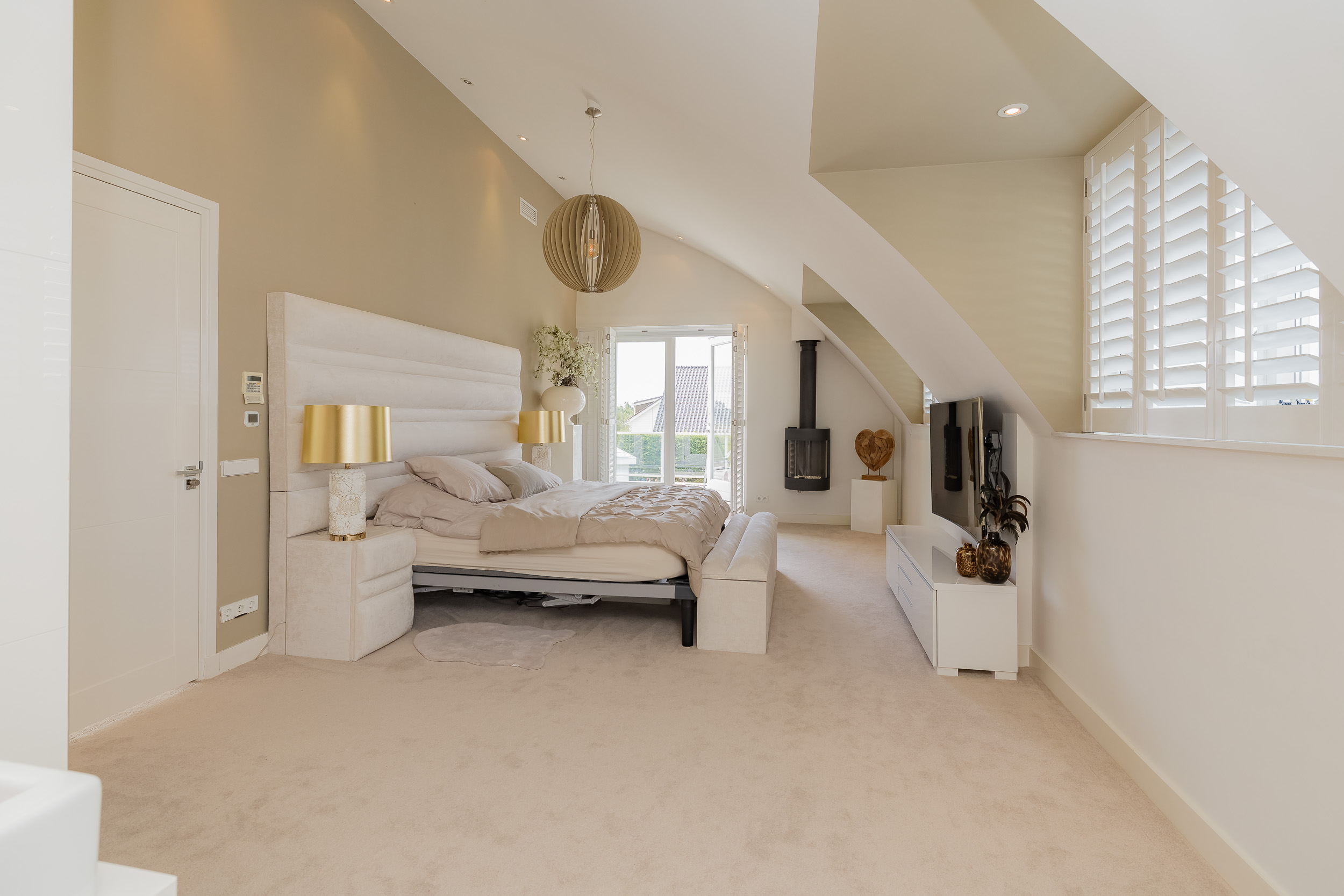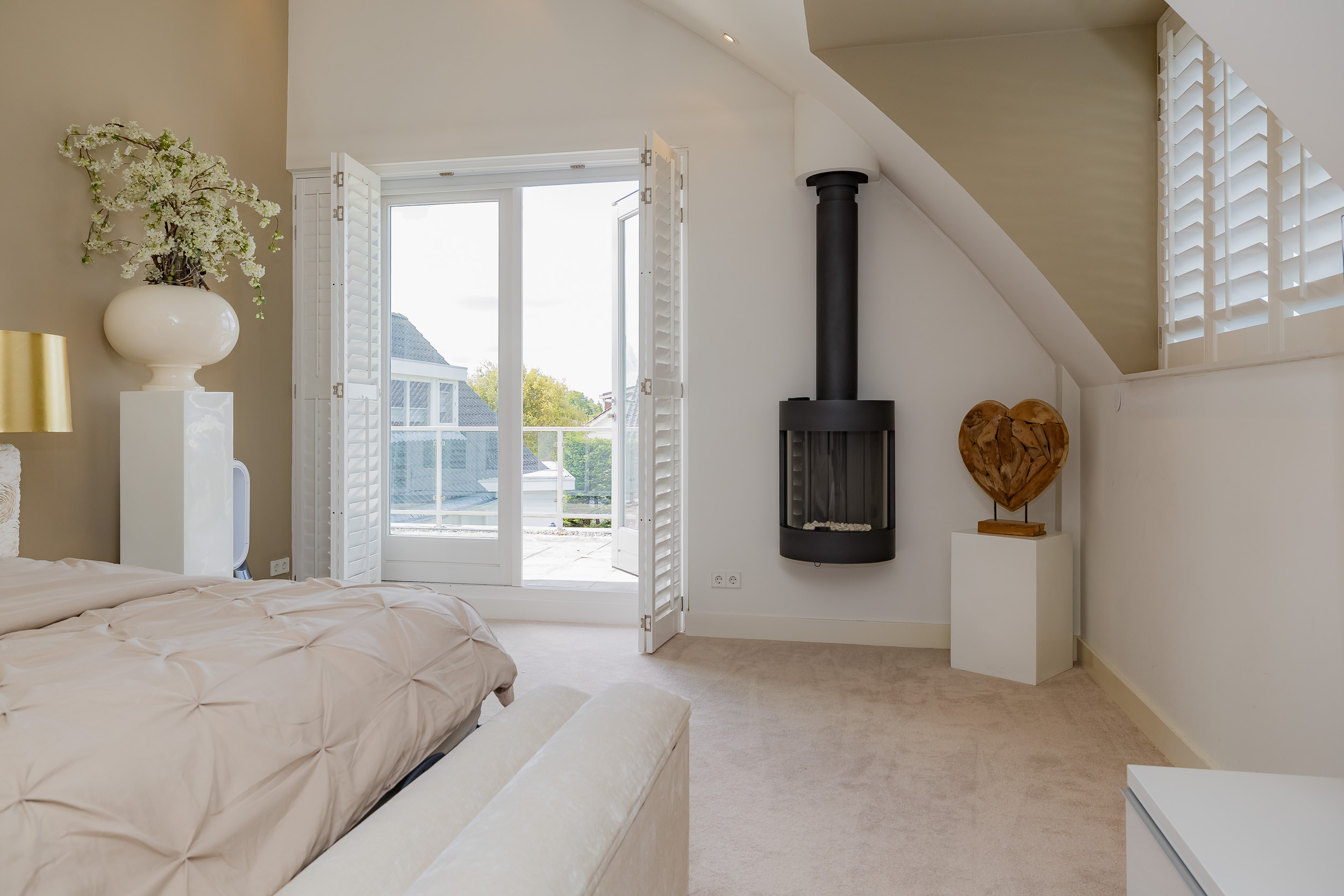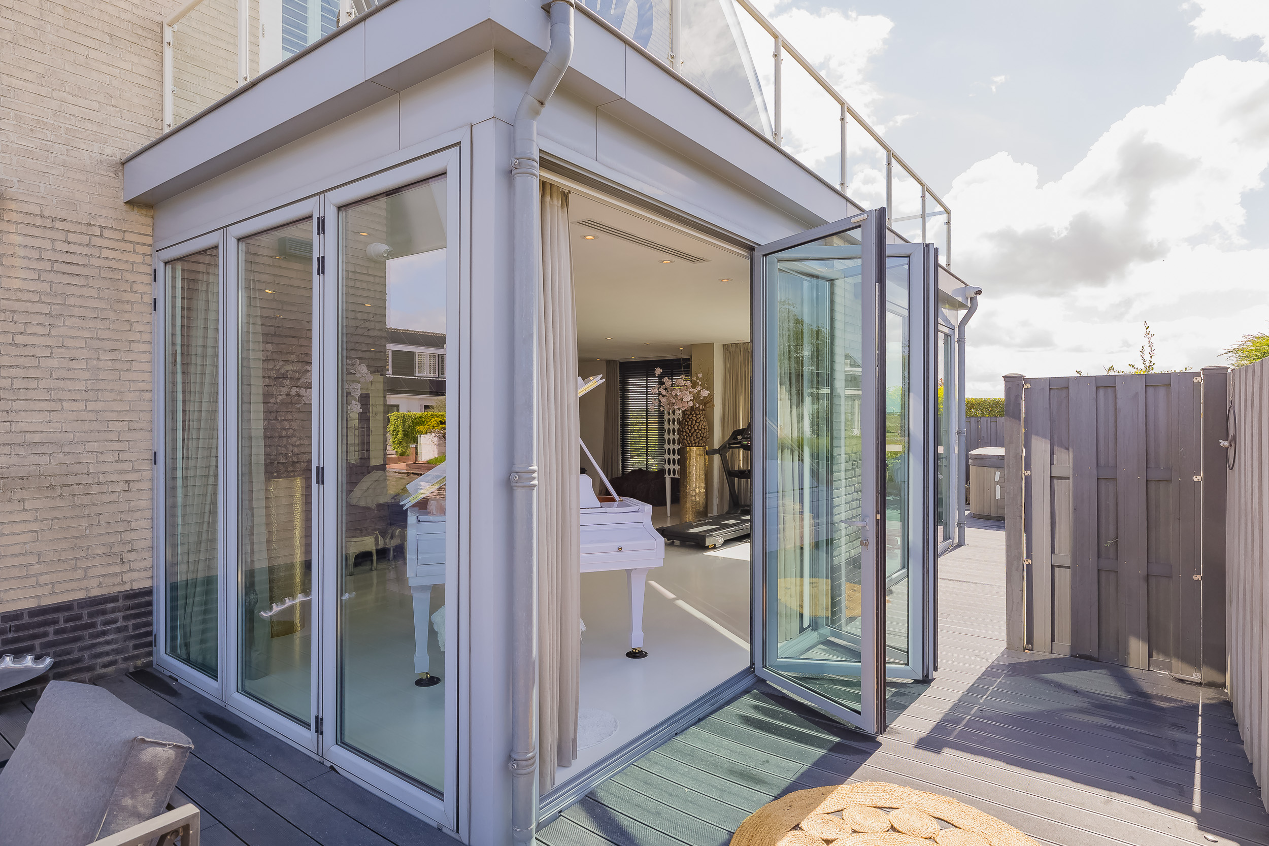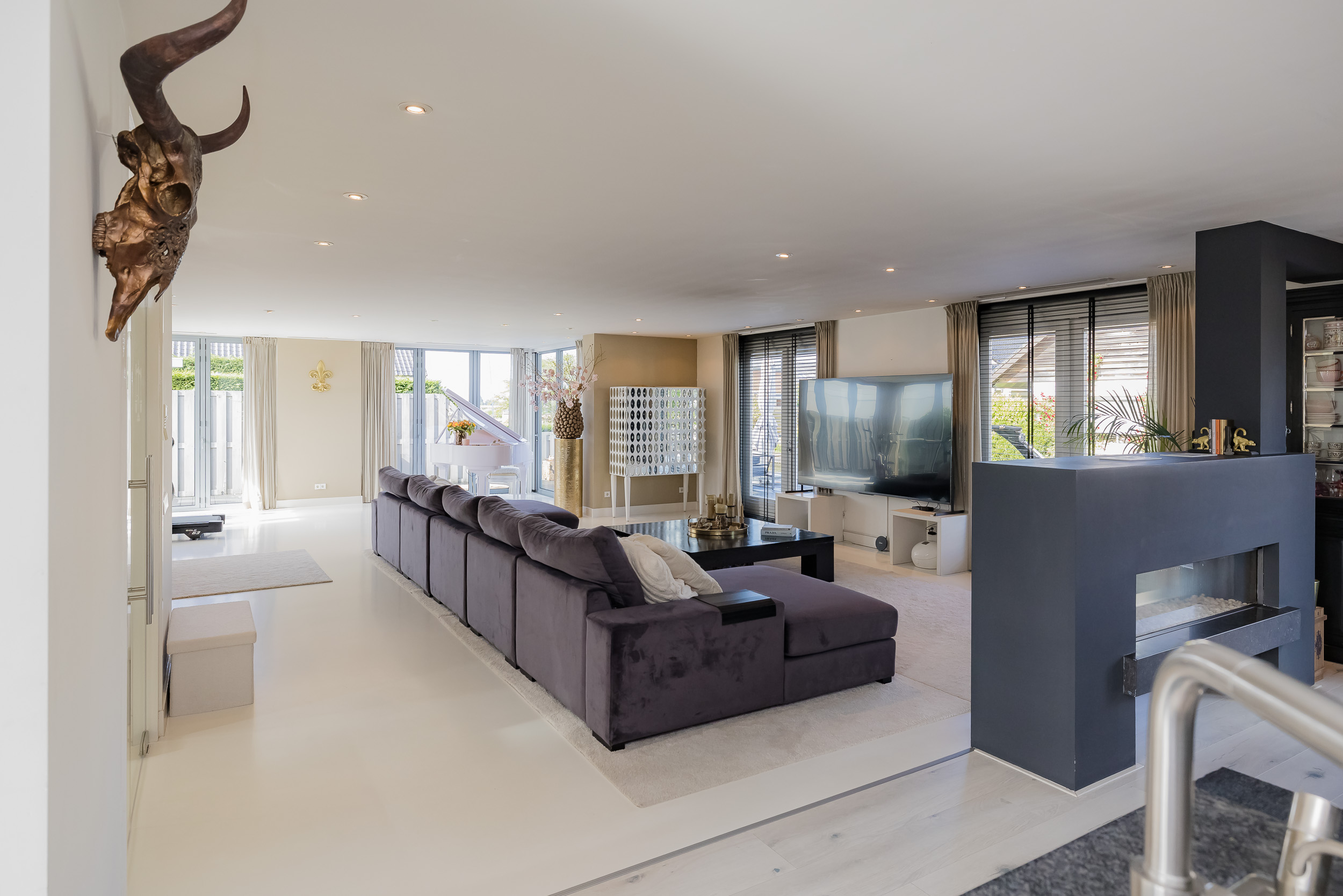 • Royale woonkamer met gashaard en luxe harmonicadeuren