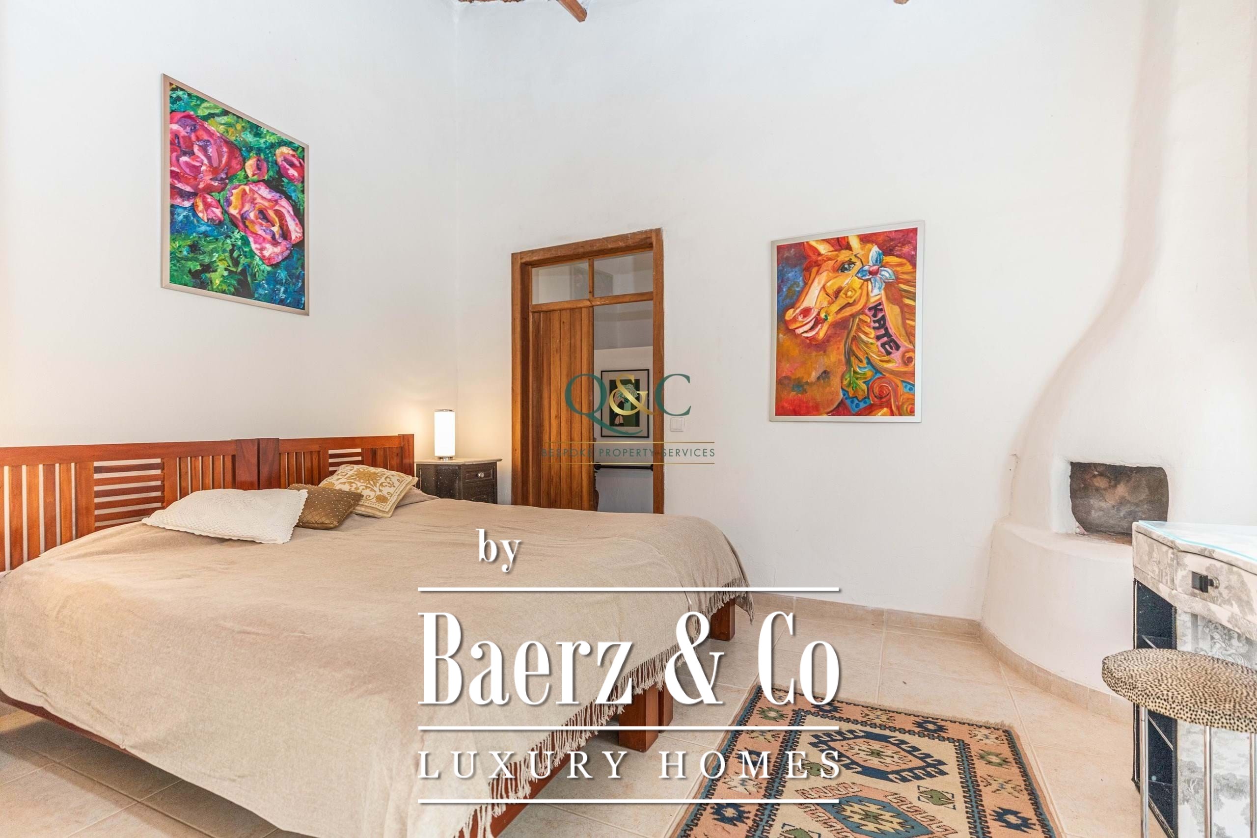 Binnen zorgen twee slaapkamers met en-suite badkamers voor zowel stijl als functionaliteit, waarvan één met douche en de ander met ligbad én douche. De originele stenen muur in de volledig uitgeruste keuken en ontbijtruimte zorgt voor een tastbare verbinding met de plek, terwijl plafonds van bamboe en houten balken bijdragen aan de kenmerkende warmte van het huis. Een houtkachel en duo-therm radiatoren van natuursteen bieden comfortabel wonen in elk seizoen, aangevuld met airconditioning die entree en woonkamer subtiel koelt. Een extra kantoorruimte biedt veelzijdigheid en gemak.