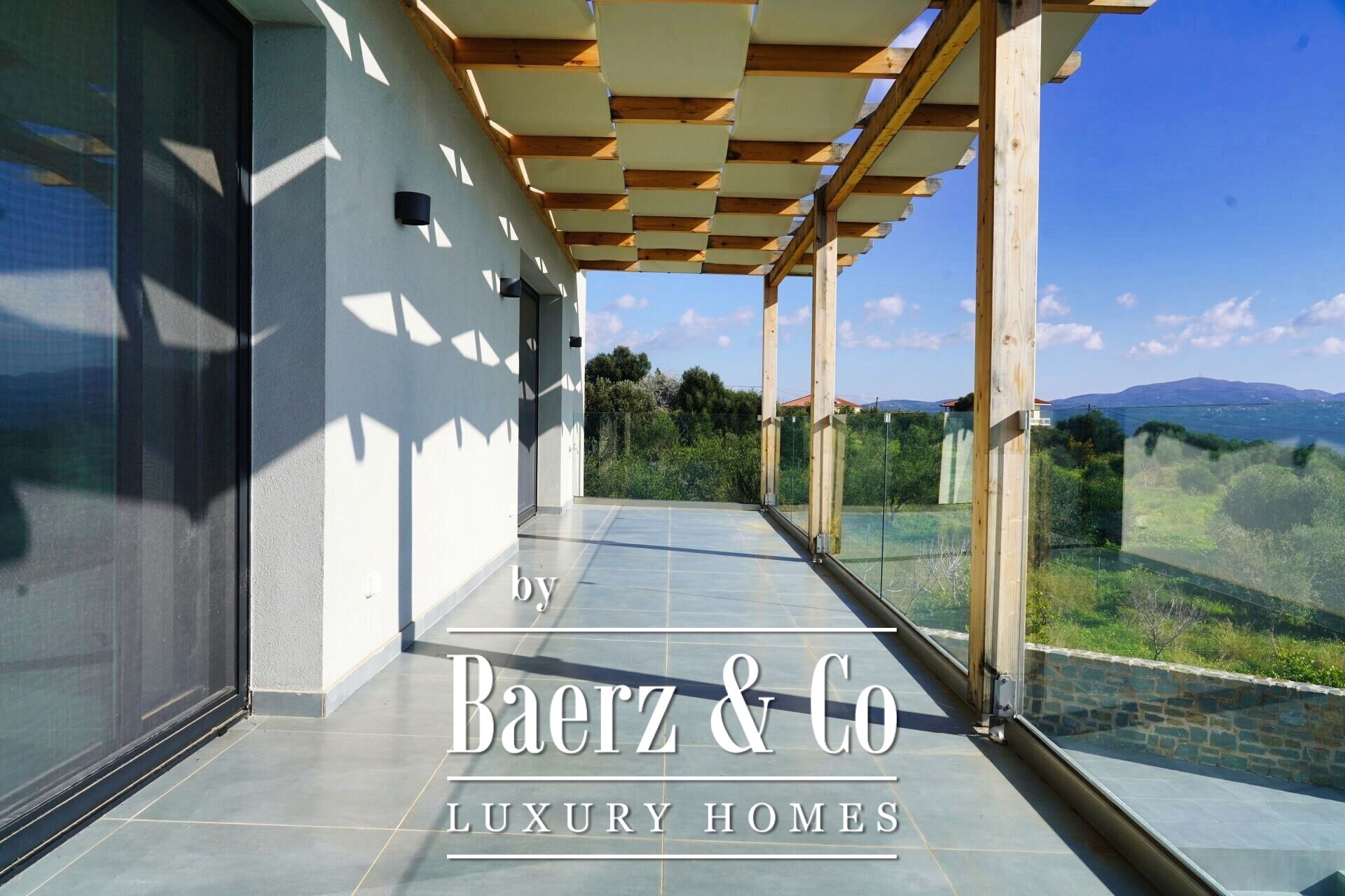 Deze luxe maisonette in Methoni vormt een ingetogen norm voor hedendaags wonen aan de Griekse kust. Gelegen in Kamaria Methoni, bevindt de woning zich op een perceel van 415 m², omgeven door serene landschappen en wijdse zeezichten die direct een gevoel van rust creëren.