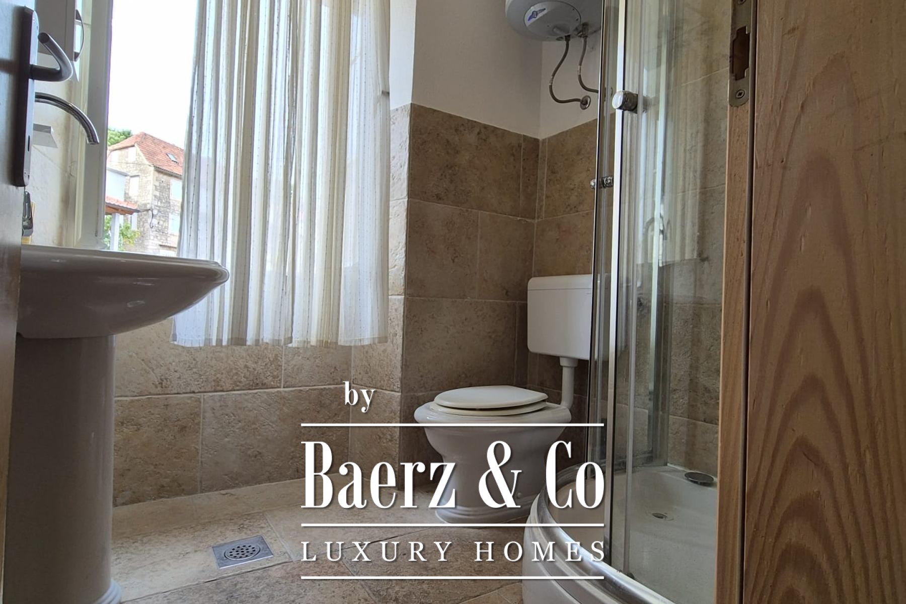 De begane grond herbergt een volledig uitgerust restaurant waarvan de deuren direct uitkomen aan de promenade, perfect voor zowel lokale gasten als bezoekers in zacht maritiem licht. Op de eerste verdieping bevindt zich een ruime eetzaal, een royale keuken en een badkamer; deze indeling biedt flexibiliteit in dagelijks gebruik of mogelijkheden voor uitgebreide gastvrijheid. De bovenverdieping bevat vier slaapkamers, een badkamer en een woonkamer met toegang tot een terras dat uitzicht biedt op de haven, het dorp en de zee, waardoor het tijdloze Dalmatische leven tastbaar wordt.