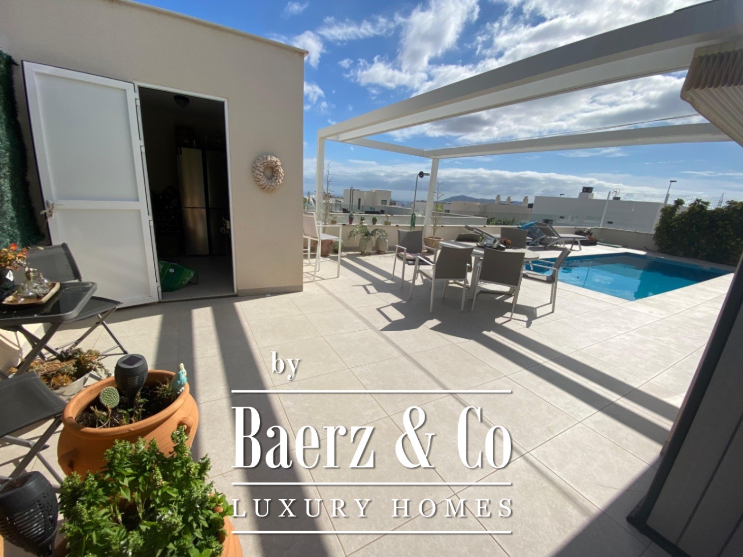 Buiten is er een privézwembad, zonneterras, barbecue zone met bar, buitenkeuken en privé parkeergelegenheid, evenals een berging met wasruimte.