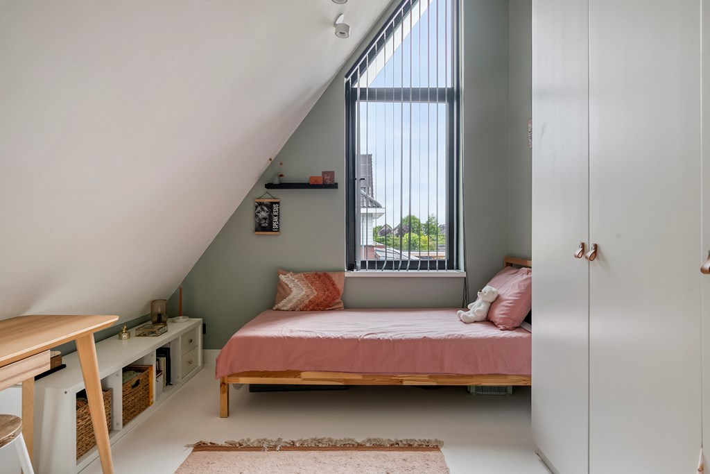 Elke kamer op deze verdieping is slim ingedeeld en biedt voldoende ruimte voor een bed, een kast of een werkplek. Grote ramen zorgen voor een prettige lichtinval, terwijl de karakteristieke schuine wanden extra sfeer geven. De kamers zijn ideaal als slaapvertrek, maar ook inzetbaar als werk-, studeer- of hobbykamer.