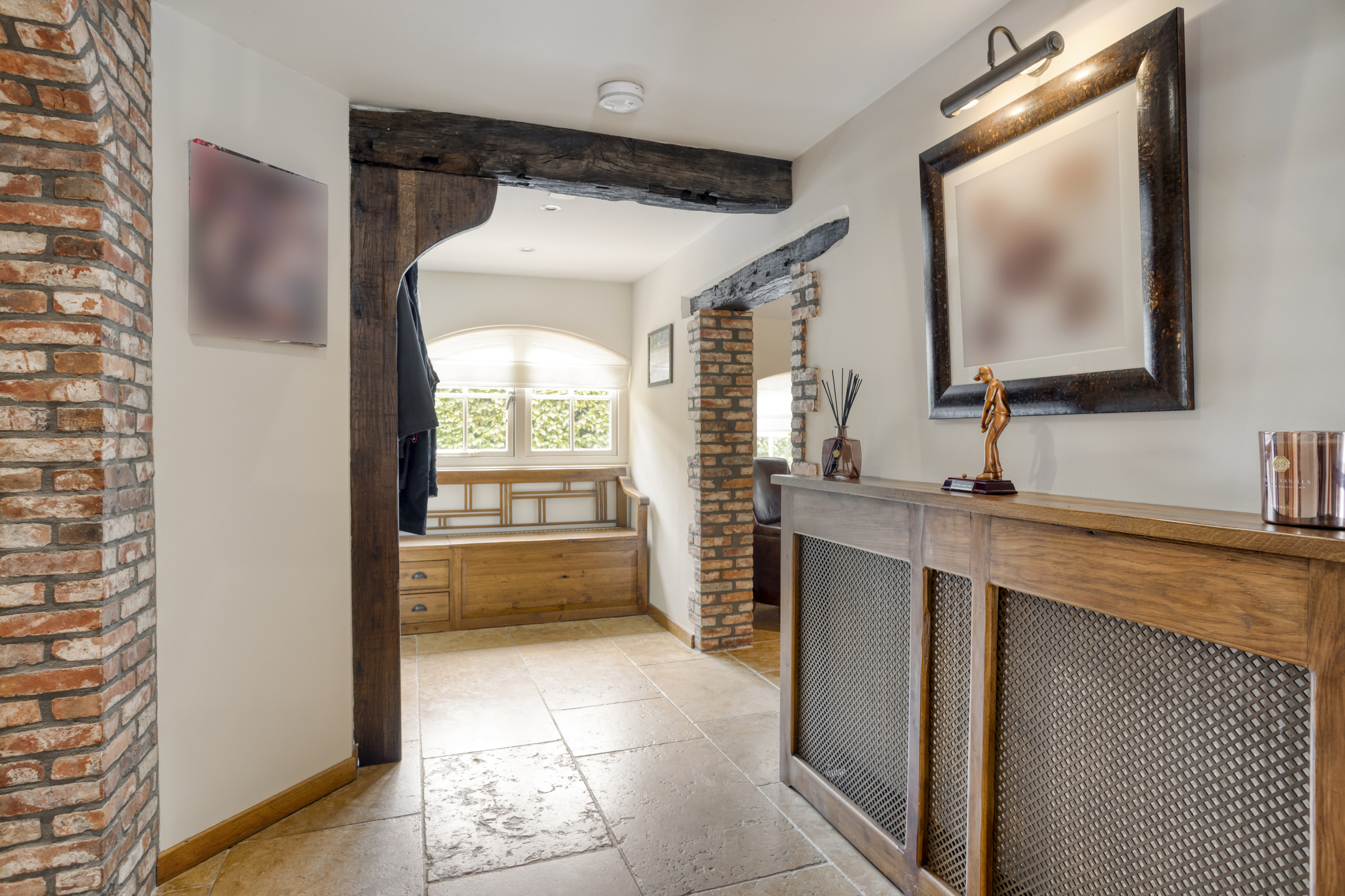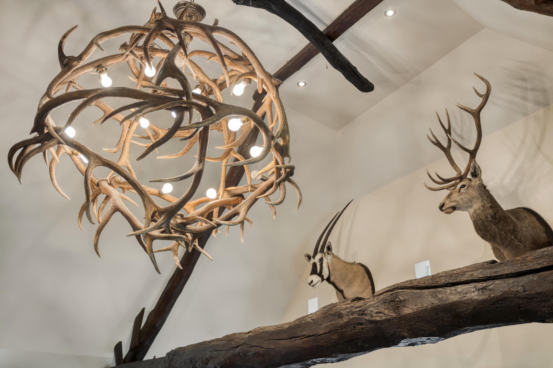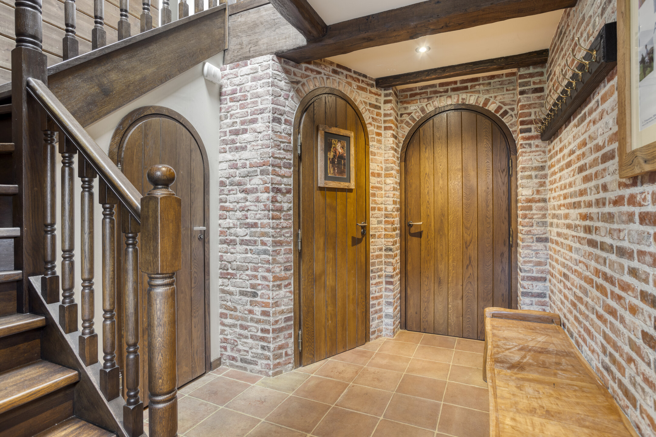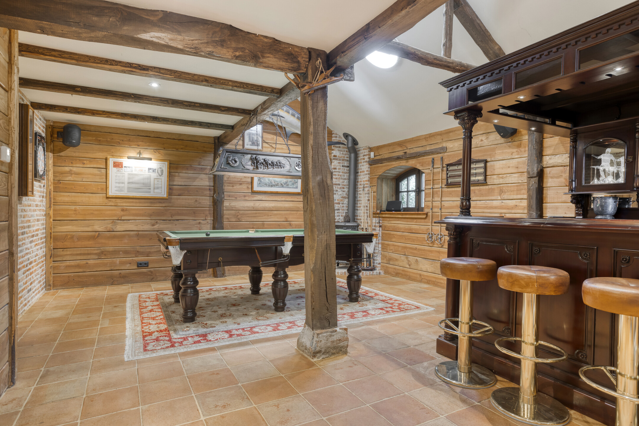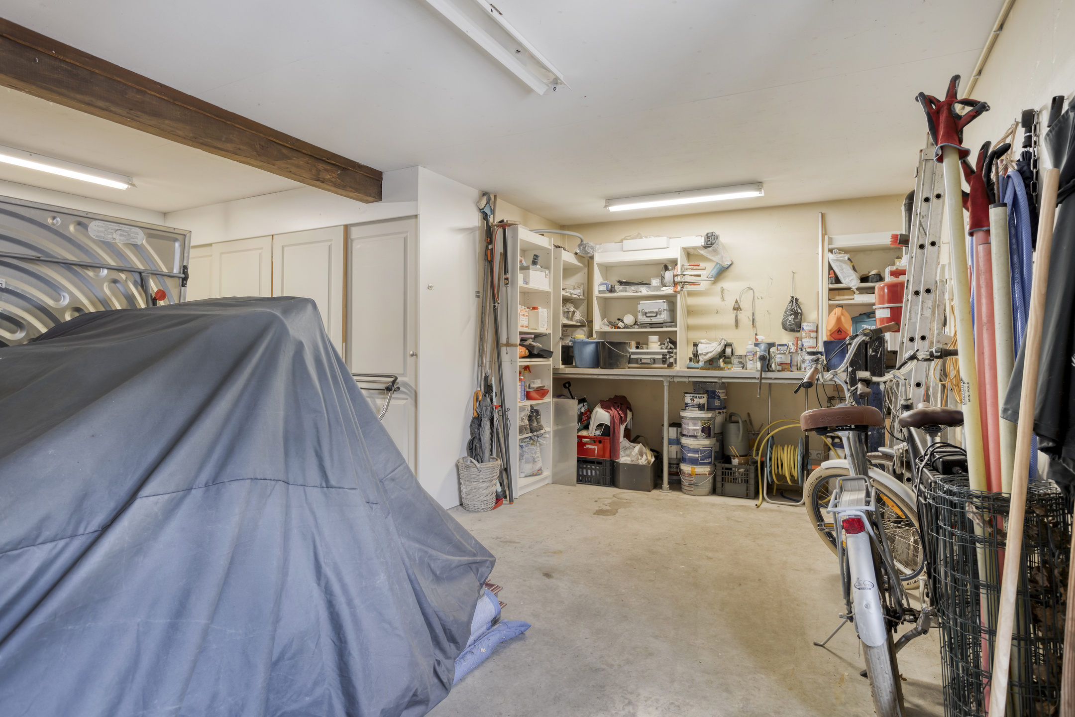 - De woonboerderij en bijgebouw beschikken over hoge plafonds met prachtige balkenconstructie en karakteristieke