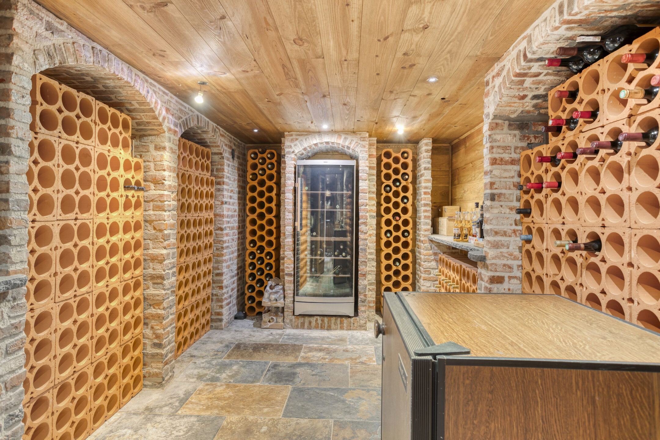 De geheel gerenoveerde woonboerderij is onder meer voorzien van een sfeervolle woonkamer, een stijlvolle eetkamer, een ruime en luxe woonkeuken, een grote (wijn)kelder, twee badkamers en vier comfortabele slaap-kamers. Het gastenverblijf beschikt ook nog eens over twee slaapkamers en twee badkamers.
