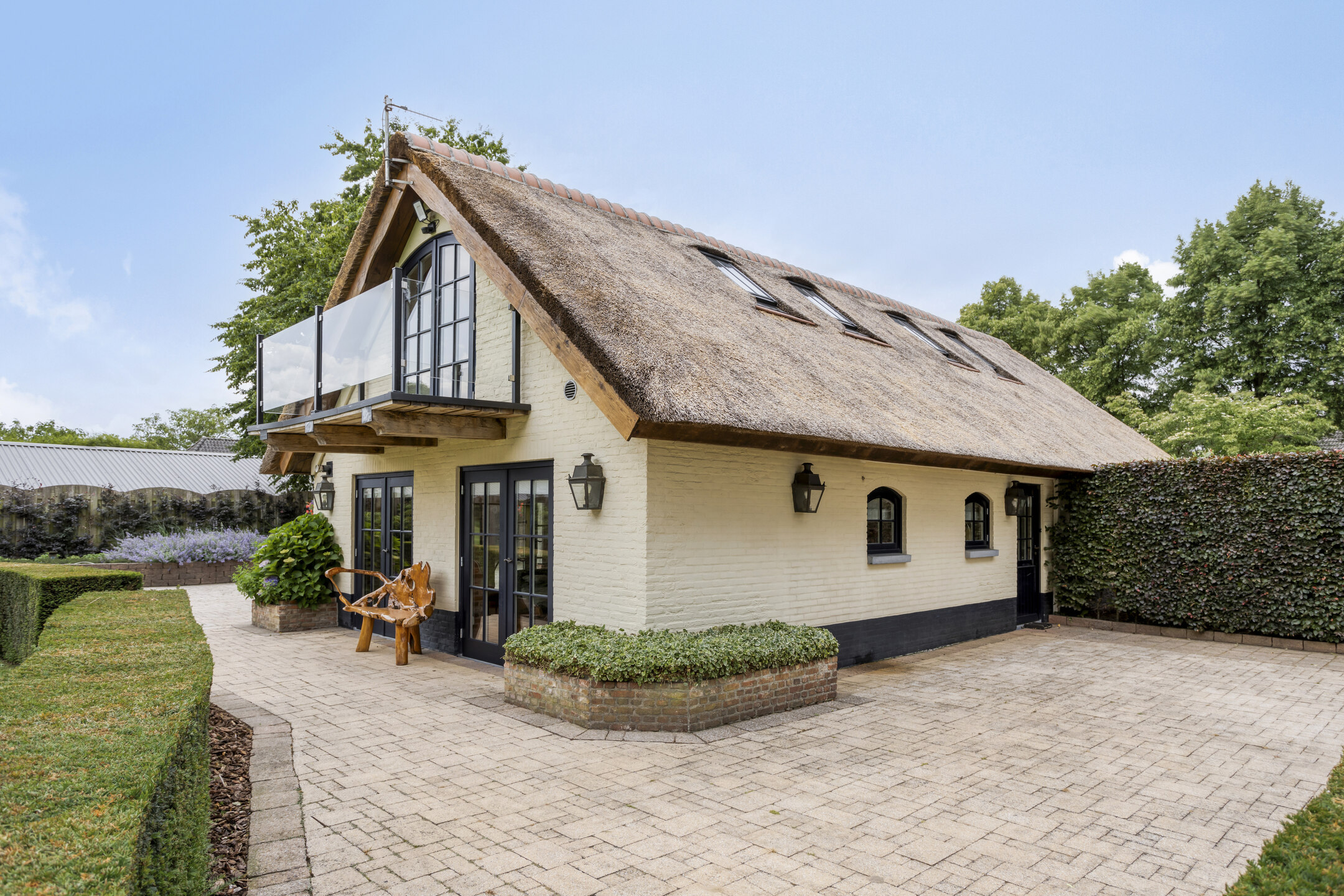 - De woonboerderij, het gastenverblijf en bijgebouw zijn in 2025 voorzien van een nieuwe rieten kap.