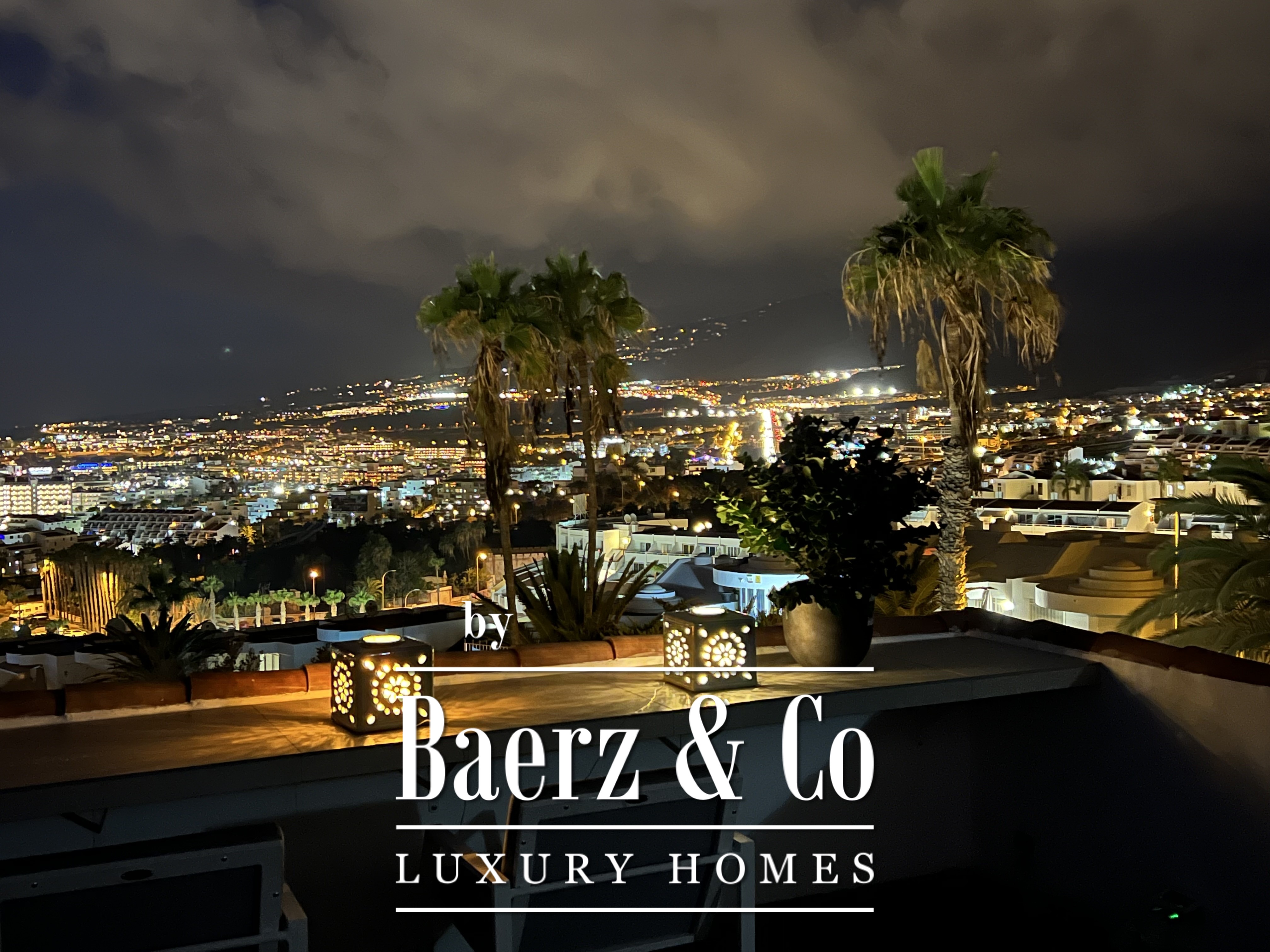 In de geliefde urbanisatie San Eugenio vind je deze ruime en lichte woning met 2 verdiepingen, waarbij de belangrijkste leefruimte en slaapkamers allemaal op één niveau liggen. Er zijn 3 ruime slaapkamers, waarvan één met toegang tot een overdekt terras aan de voorzijde van de villa, 3 badkamers en 1 gastentoilet. De woonkamer is zeer groot en komt uit op het grote terras van 144 m2 met privézwembad en prachtig uitzicht op de oceaan, het eiland La Gomera en de kustlijn.
