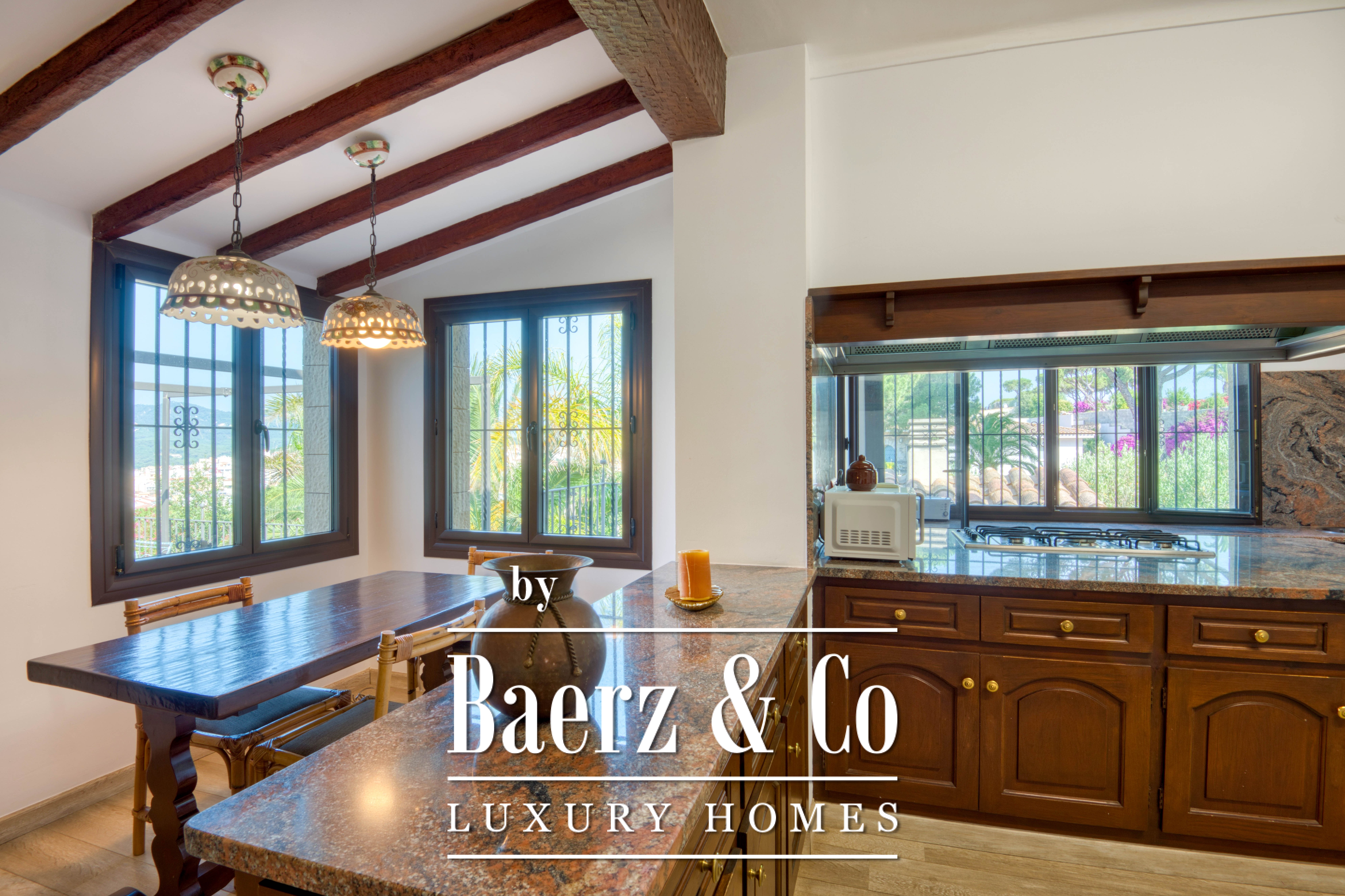 Buiten nodigen een royaal zwembad en een privétennisbaan uit tot ontspanning en sportiviteit, beschut door volwassen begroeiing. Het uitzicht reikt ver over de Middellandse Zee, het Sant Feliu-klooster, de Sant Elm-berg en de Ardenya-richel, telkens wisselend met het licht. Met een garage, airconditioning, barbecuezone en speelkamer ademt deze luxe villa te koop in Sant Feliu de Guixols ingetogen luxe en zeldzame authenticiteit, perfect geschikt voor permanent wonen of als gekoesterd toevluchtsoord.