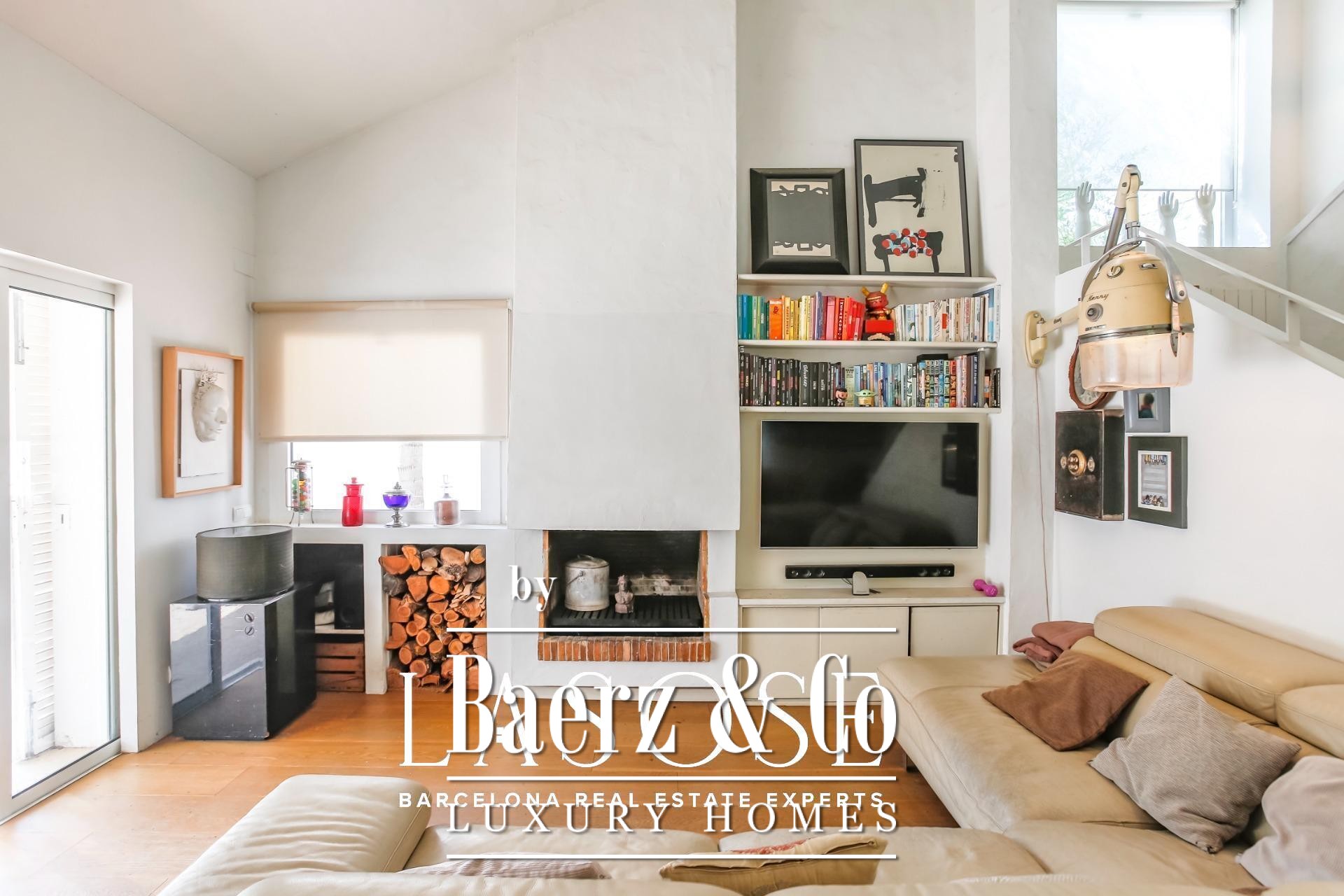 Het interieur ontvouwt zich in een harmonisch ritme. Een elegante living met open haard loopt over in de tuin en de compleet uitgeruste keuken met centraal werkeiland grenst aan een privépatio en parkeergelegenheid. Op de begane grond zorgt een gastenverblijf of werkplek voor extra flexibiliteit, terwijl de bovenverdieping drie lichte tweepersoons slaapkamers biedt met uitzicht op de tuin en plafonds van dubbele hoogte. Verfijnde afwerkingen en neutrale tinten onderstrepen overal de natuurlijke elegantie van de architectuur.