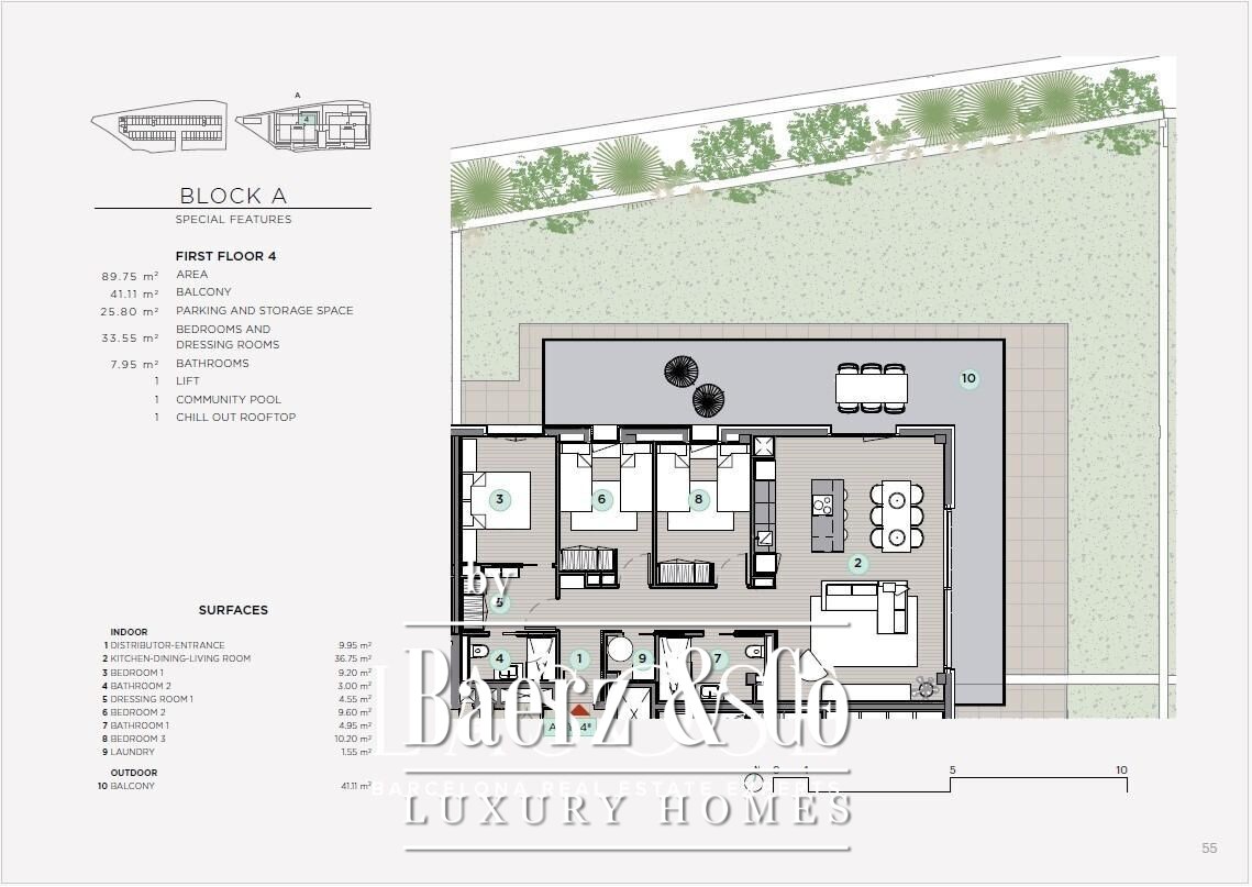 Privéterrassen en aangelegde tuinen nodigen uit tot onbezorgd buitenleven, aangevuld met een zoutwaterzwembad voor contemplatieve middagen. Het appartement voldoet aan de hoogste Spaanse bouweisen, met LED-verlichting, akoestische isolatie en hoogwaardige afwerking voor een lange levensduur en tijdloze uitstraling. Wie een exclusief appartement te koop zoekt in Sitges, vindt hier een harmonieuze balans tussen modern design, mediterraan licht en discreet, duurzaam wonen.