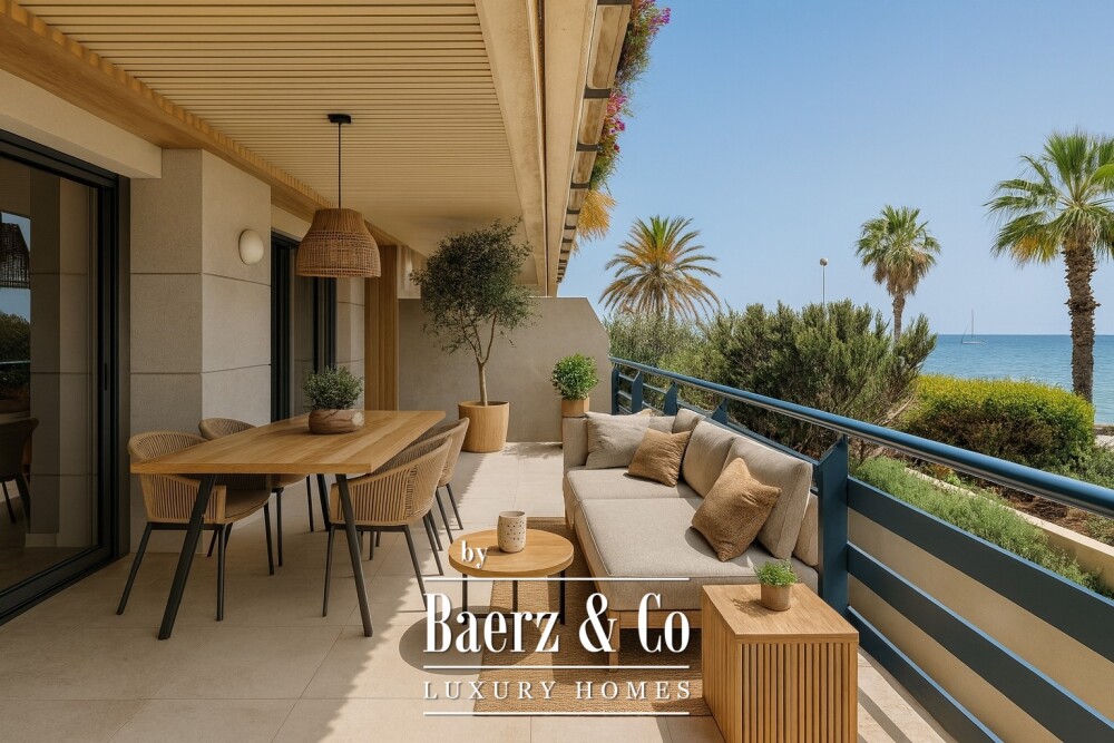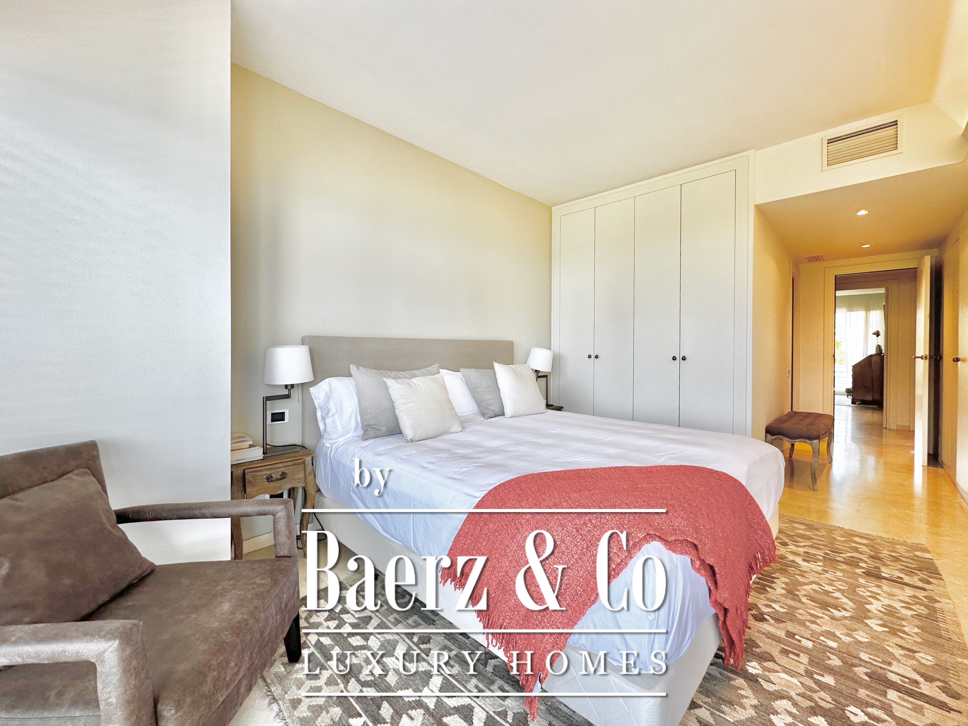 Dit appartement aan zee in Sitges bevindt zich in de begeerde enclave Terramar en biedt direct toegang tot de Middellandse Zee. Comfort en ingetogen elegantie kenmerken de doordacht ontworpen leefruimte van 216 m², waarbij iedere kamer toegang tot buiten heeft. Vier tweepersoonsslaapkamers, elk met directe toegang tot het terras en een ensuite badkamer, zorgen voor een ruimtelijk ritme van privacy en verbondenheid met de zee. De hoofdsuite nodigt uit tot het bewonderen van het uitzicht over het water vanuit bed, terwijl de belangrijkste living daglicht en horizon in het dagelijks leven verweeft.