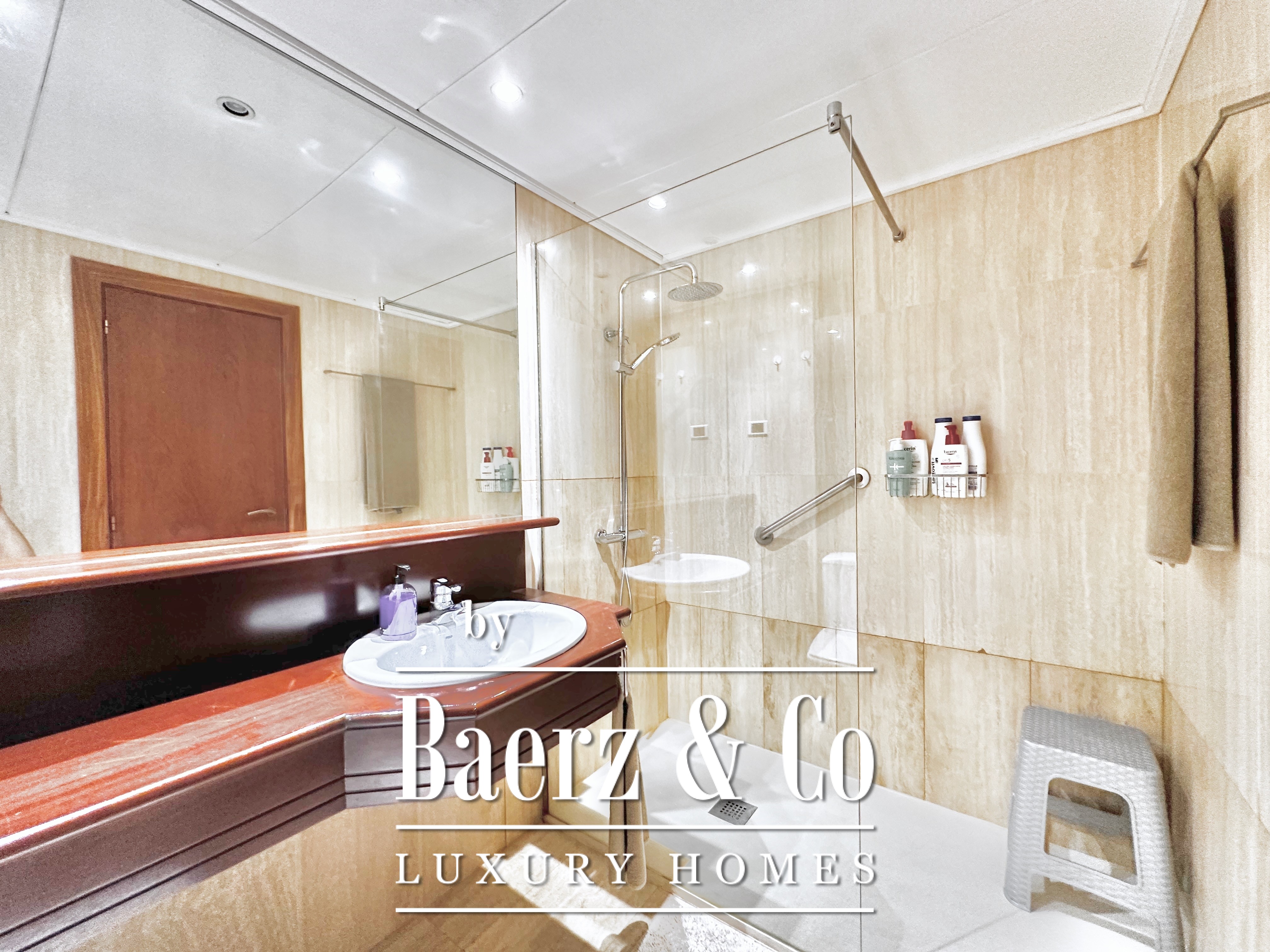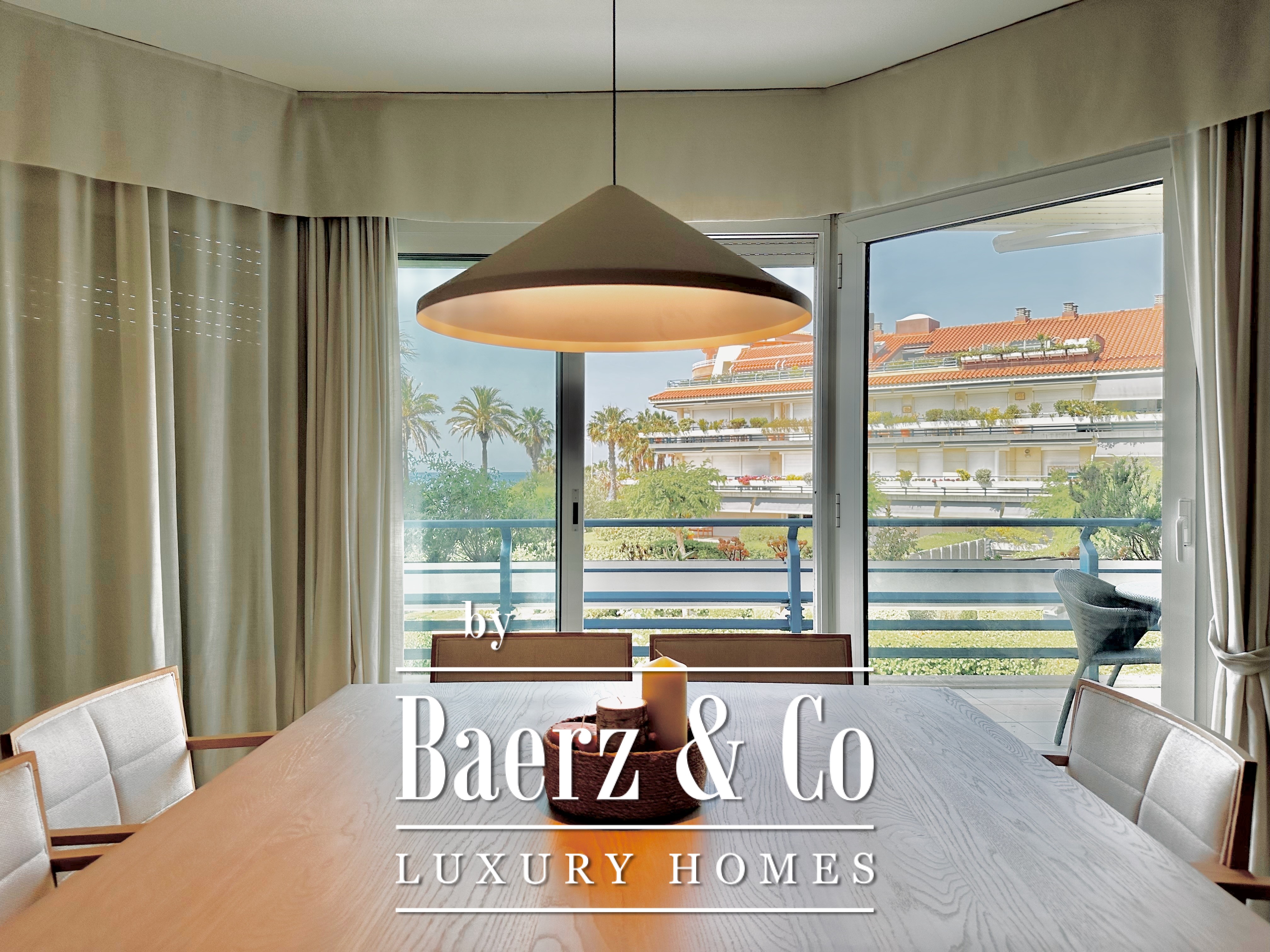 Twee royale terrassen van in totaal 71 m² omlijsten het appartement; één kijkt uit op de rustige gezamenlijke tuinen, de andere ligt direct boven de kustlijn voor een onbelemmerd panoramisch uitzicht. De keuken en eetruimte combineren functionaliteit en openheid en lopen uit op een terras omgeven door groen. De woning is recent gerenoveerd en beschikt over twee parkeerplaatsen en een berging van 14 m².