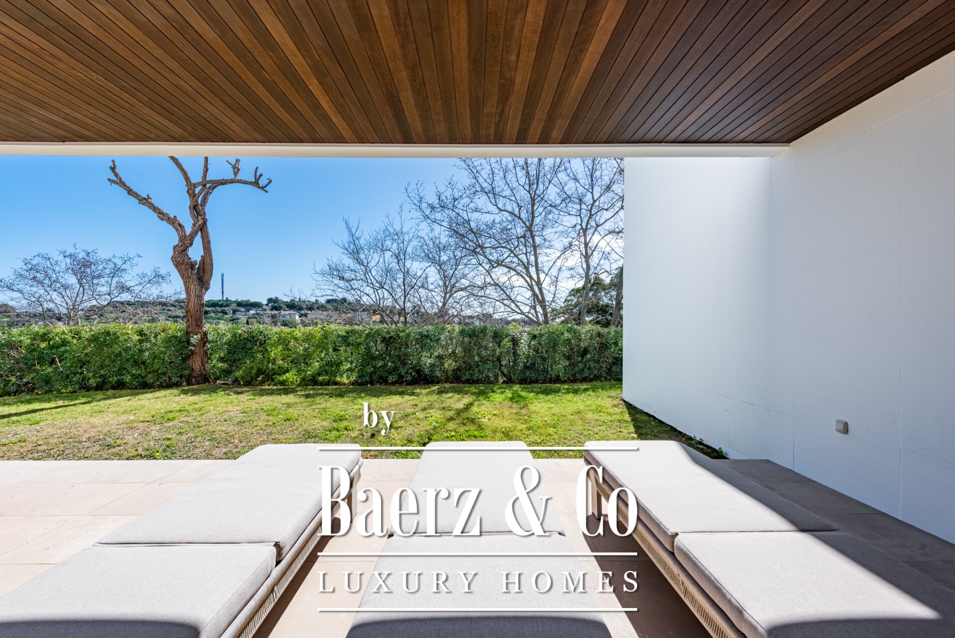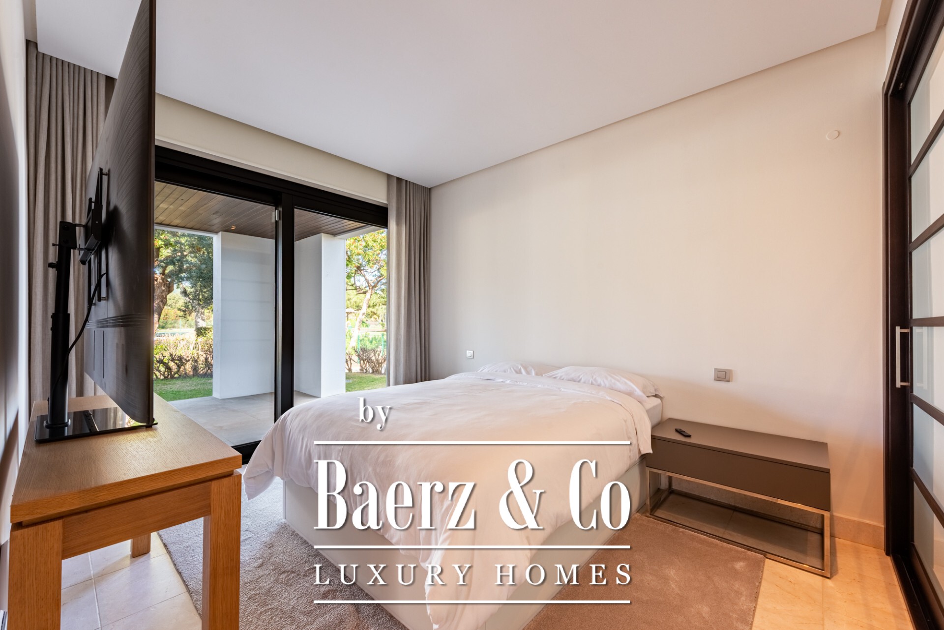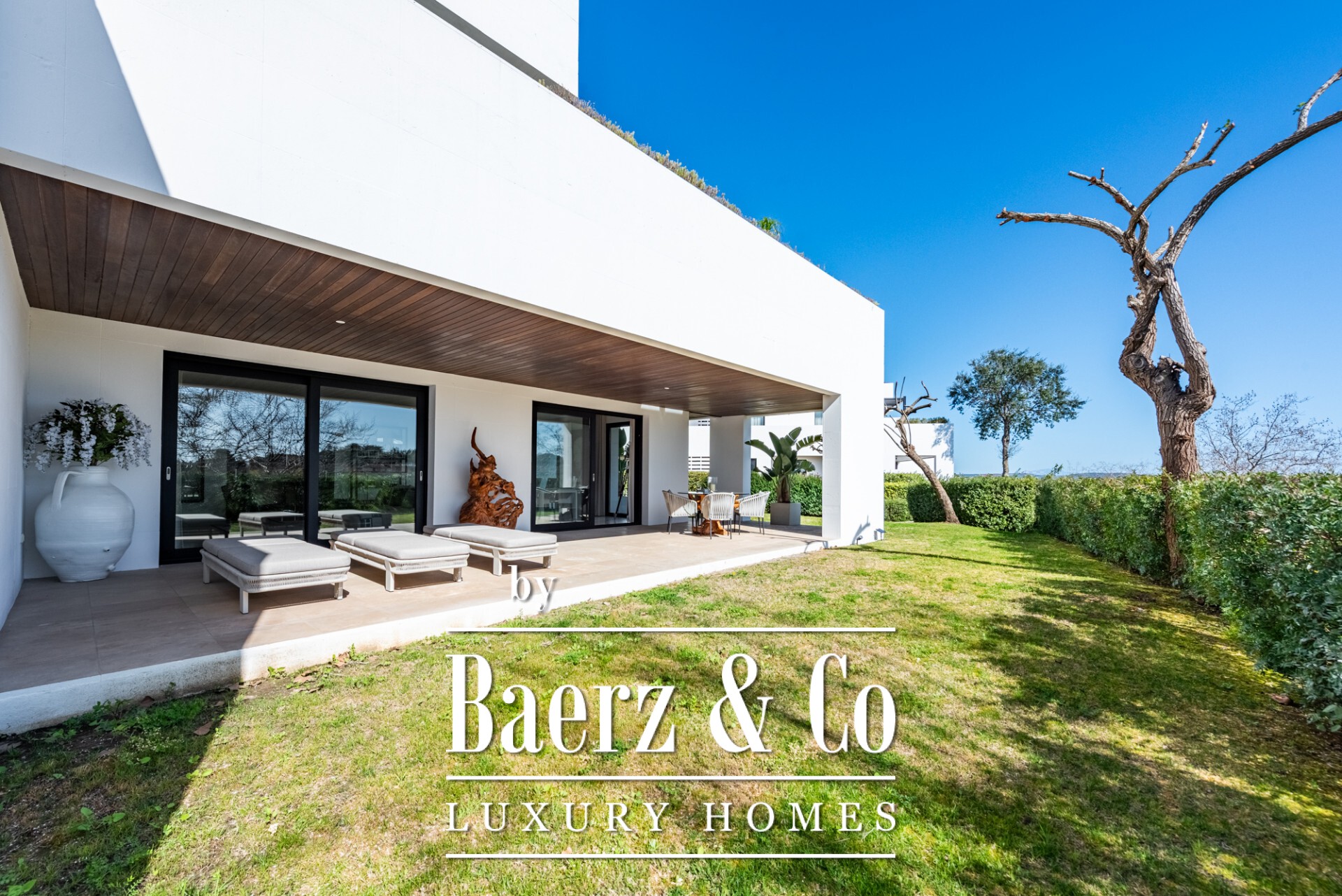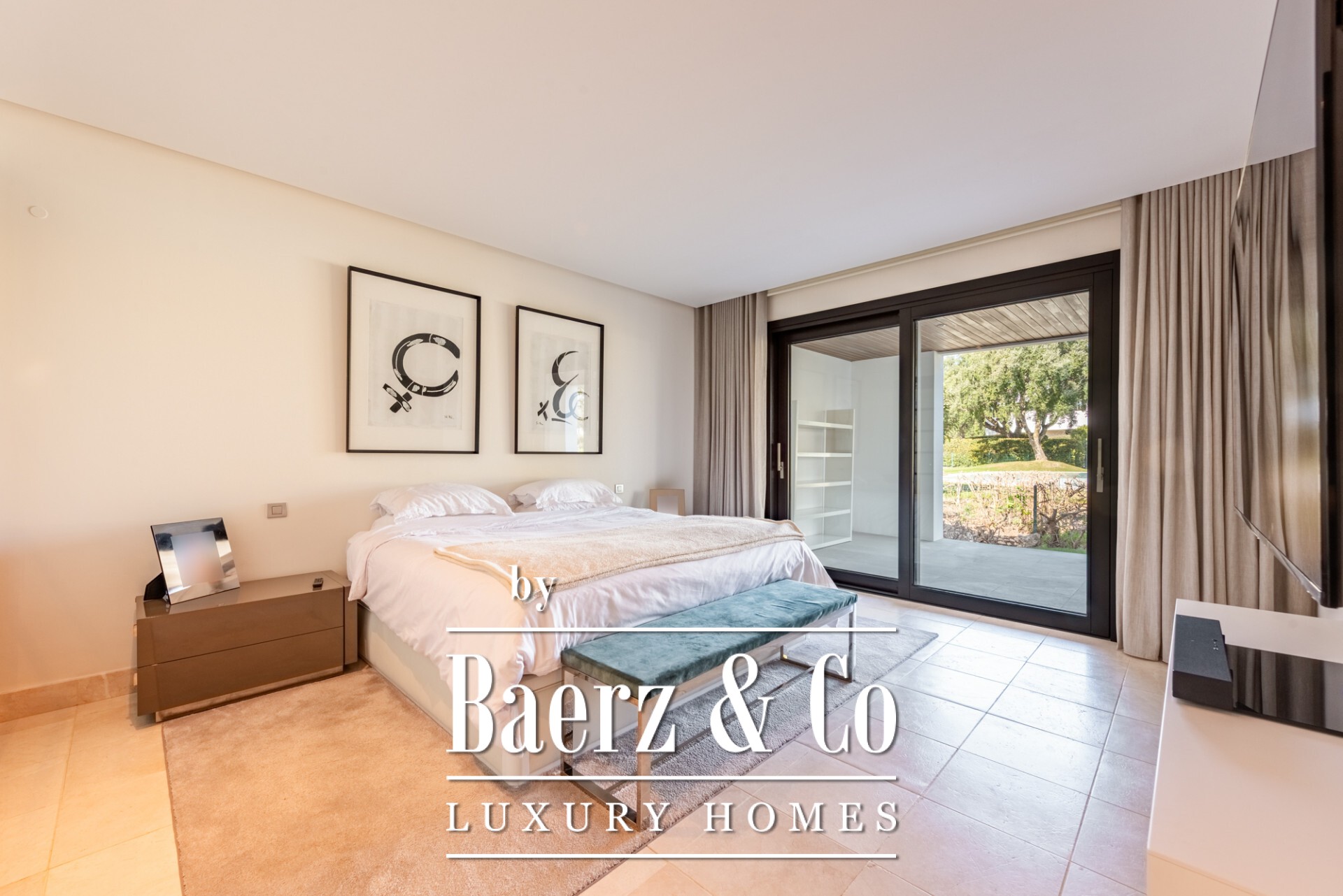 De residentie heeft een oppervlakte van 462 m² en beslaat een royaal beganegrondplan. Drie evenwichtige slaapkamers beschikken ieder over een eigen badkamer, terwijl de leefruimtes worden gekenmerkt door marmeren vloeren en zuidoostelijk licht. Een domoticasysteem, vloerverwarming en geavanceerde beveiliging worden gecombineerd met airconditioning, inbouwkasten en een volledig uitgeruste keuken, zodat comfort net zo essentieel is als design. Vanuit de belangrijkste kamers is er direct toegang tot de tuin, waardoor het woongevoel zich uitbreidt over 97 m² privéterras en tuin.
