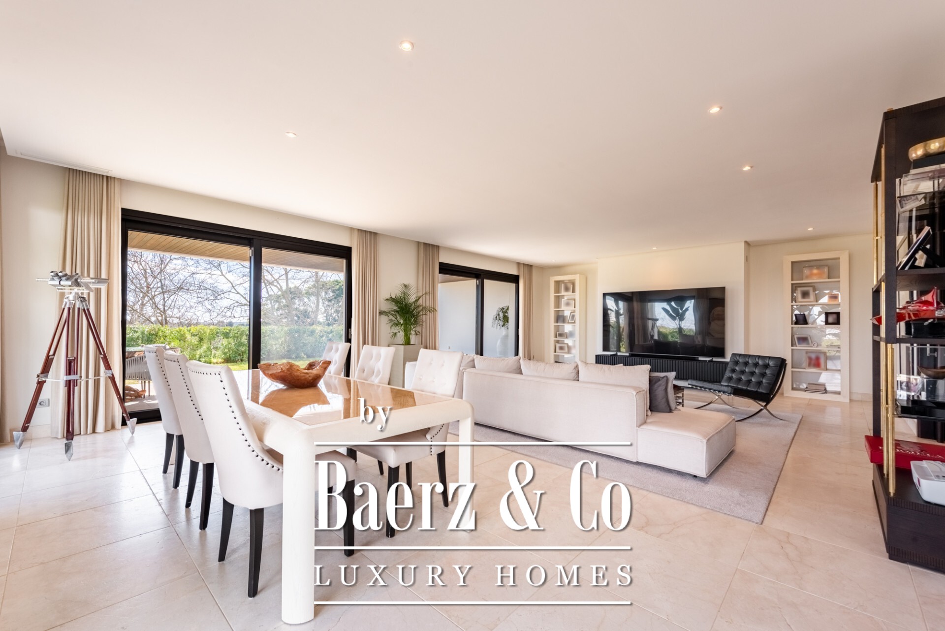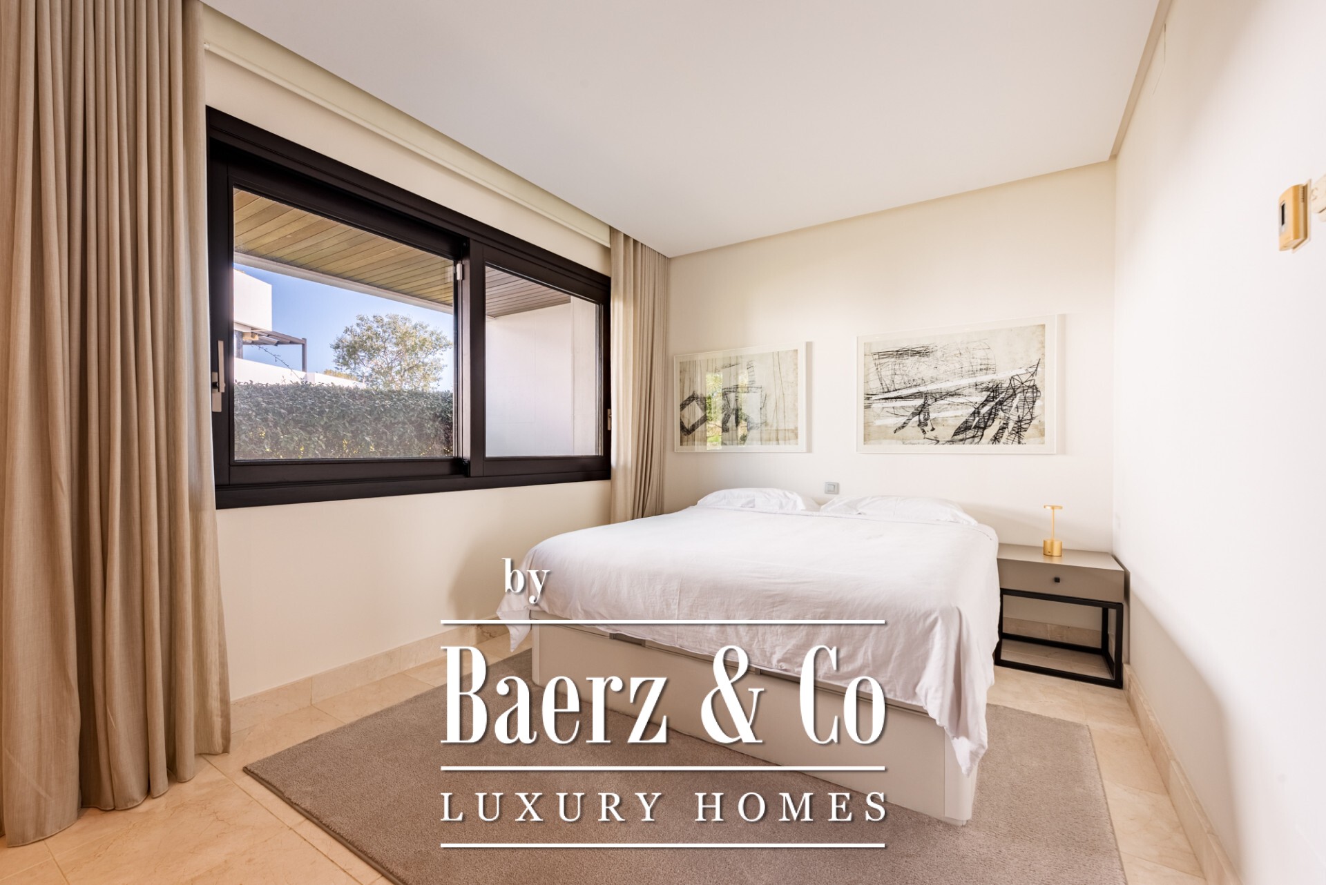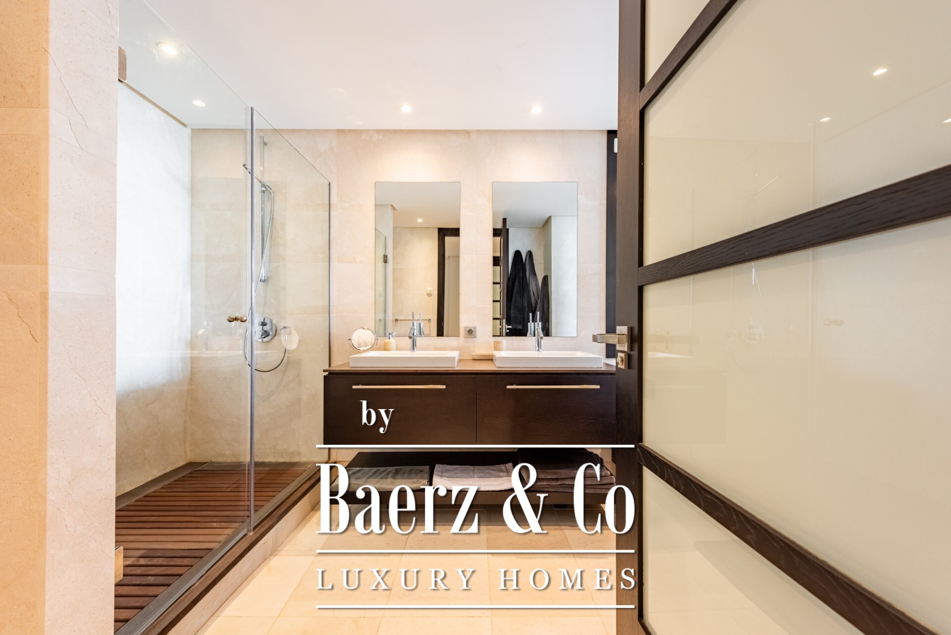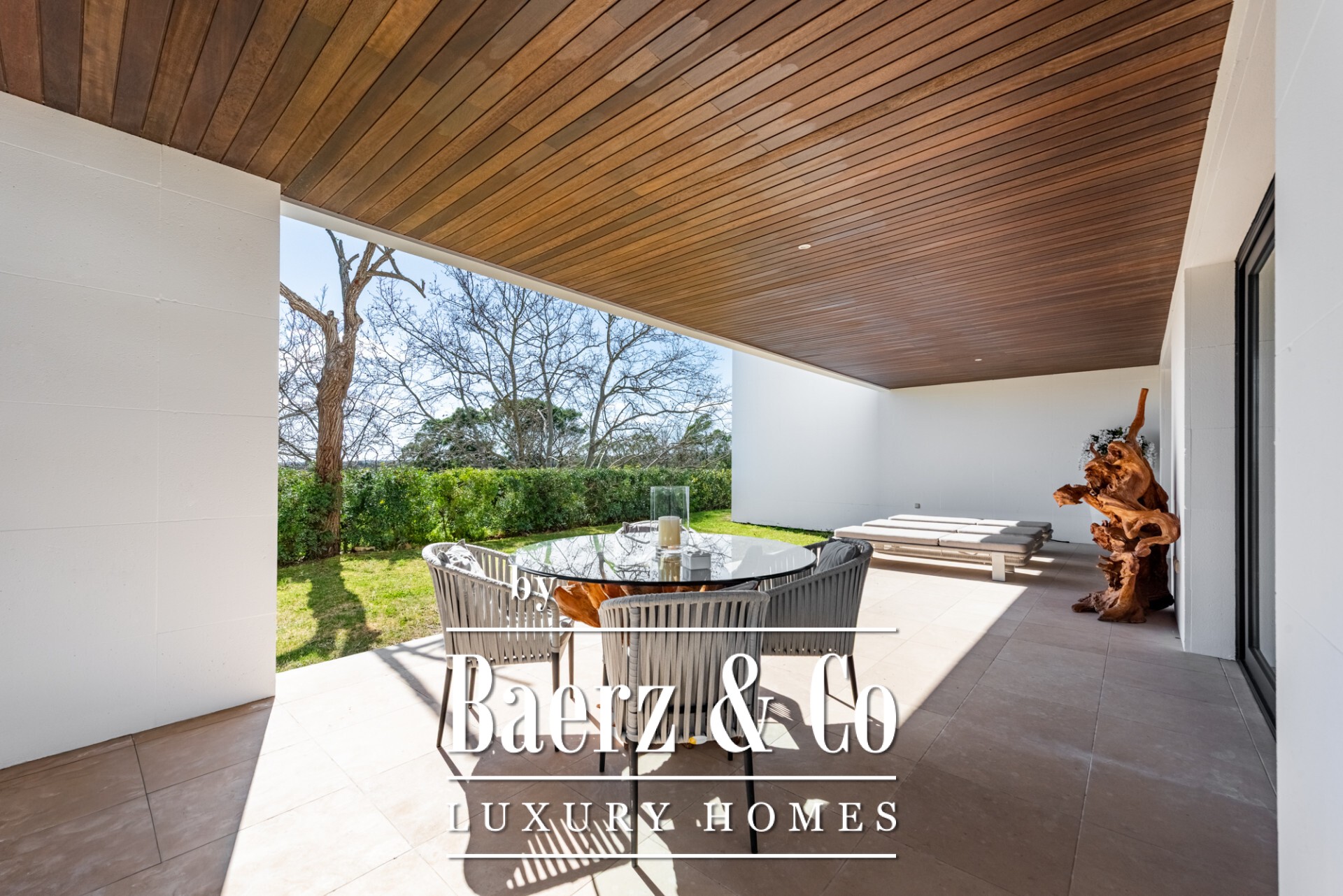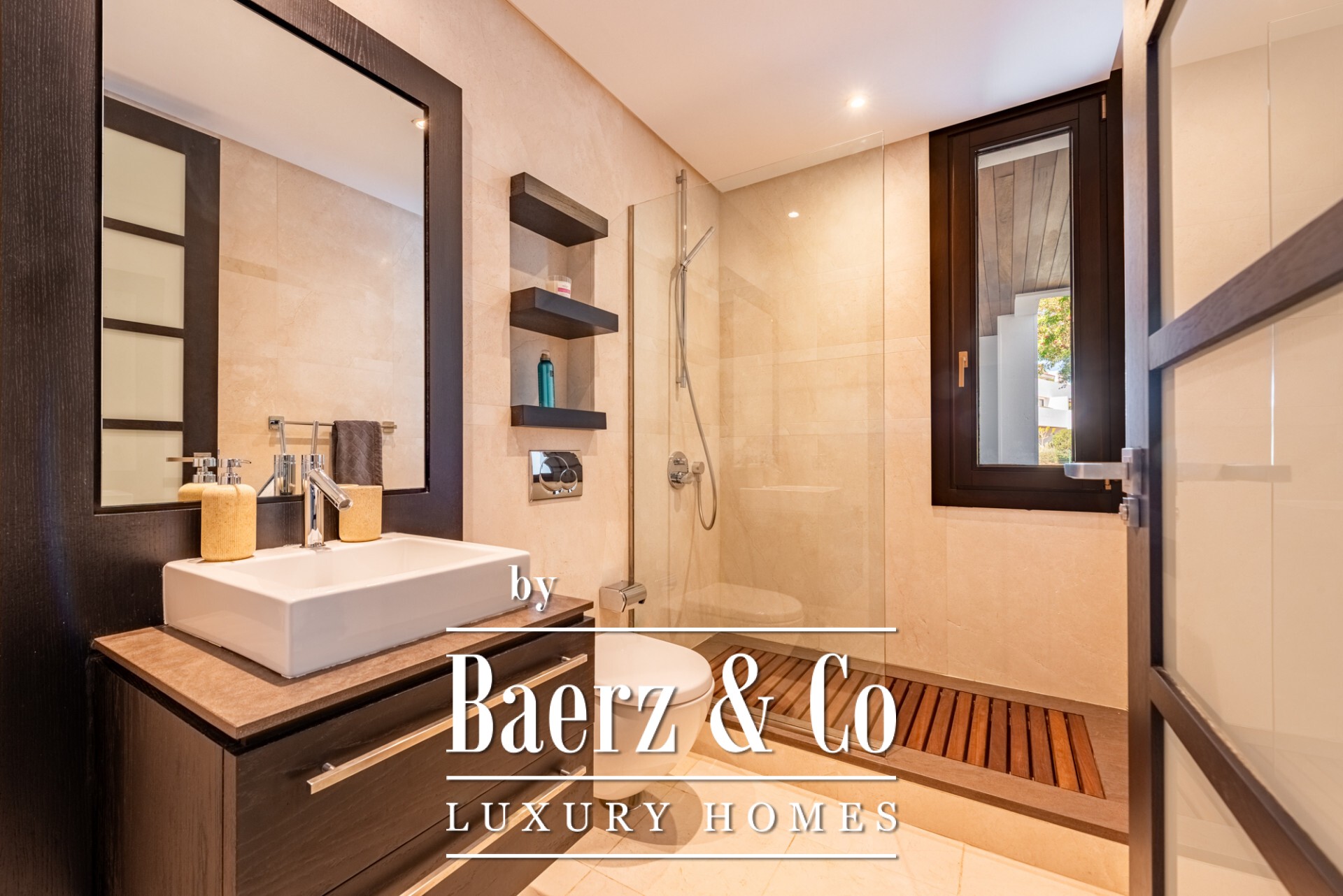 De residentie heeft een oppervlakte van 462 m² en beslaat een royaal beganegrondplan. Drie evenwichtige slaapkamers beschikken ieder over een eigen badkamer, terwijl de leefruimtes worden gekenmerkt door marmeren vloeren en zuidoostelijk licht. Een domoticasysteem, vloerverwarming en geavanceerde beveiliging worden gecombineerd met airconditioning, inbouwkasten en een volledig uitgeruste keuken, zodat comfort net zo essentieel is als design. Vanuit de belangrijkste kamers is er direct toegang tot de tuin, waardoor het woongevoel zich uitbreidt over 97 m² privéterras en tuin.