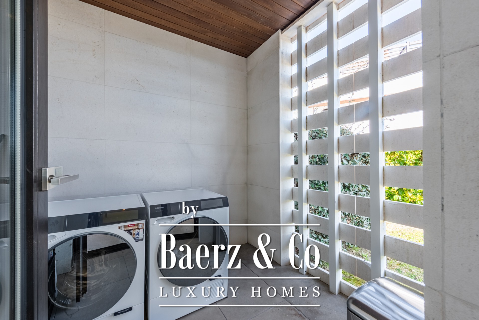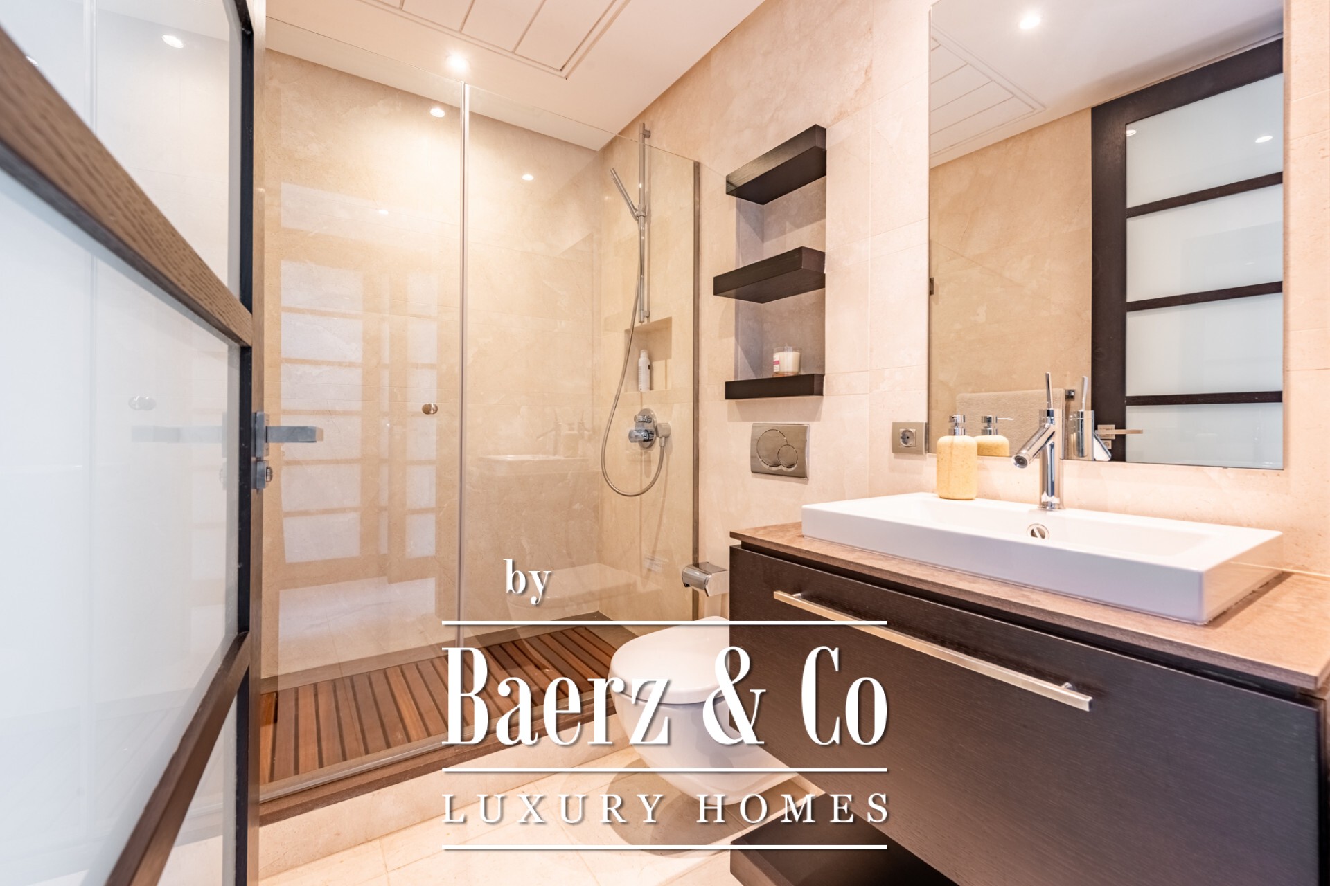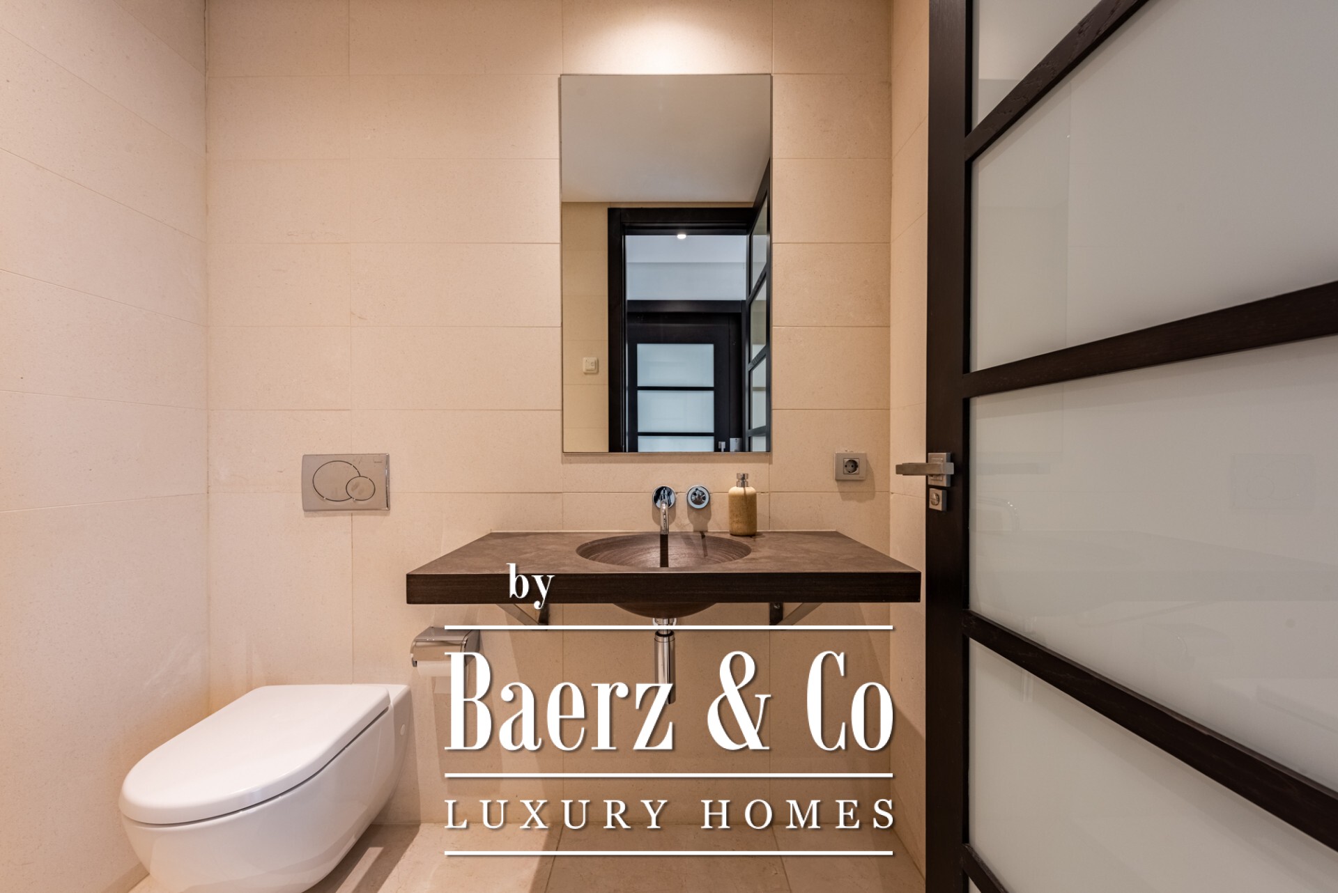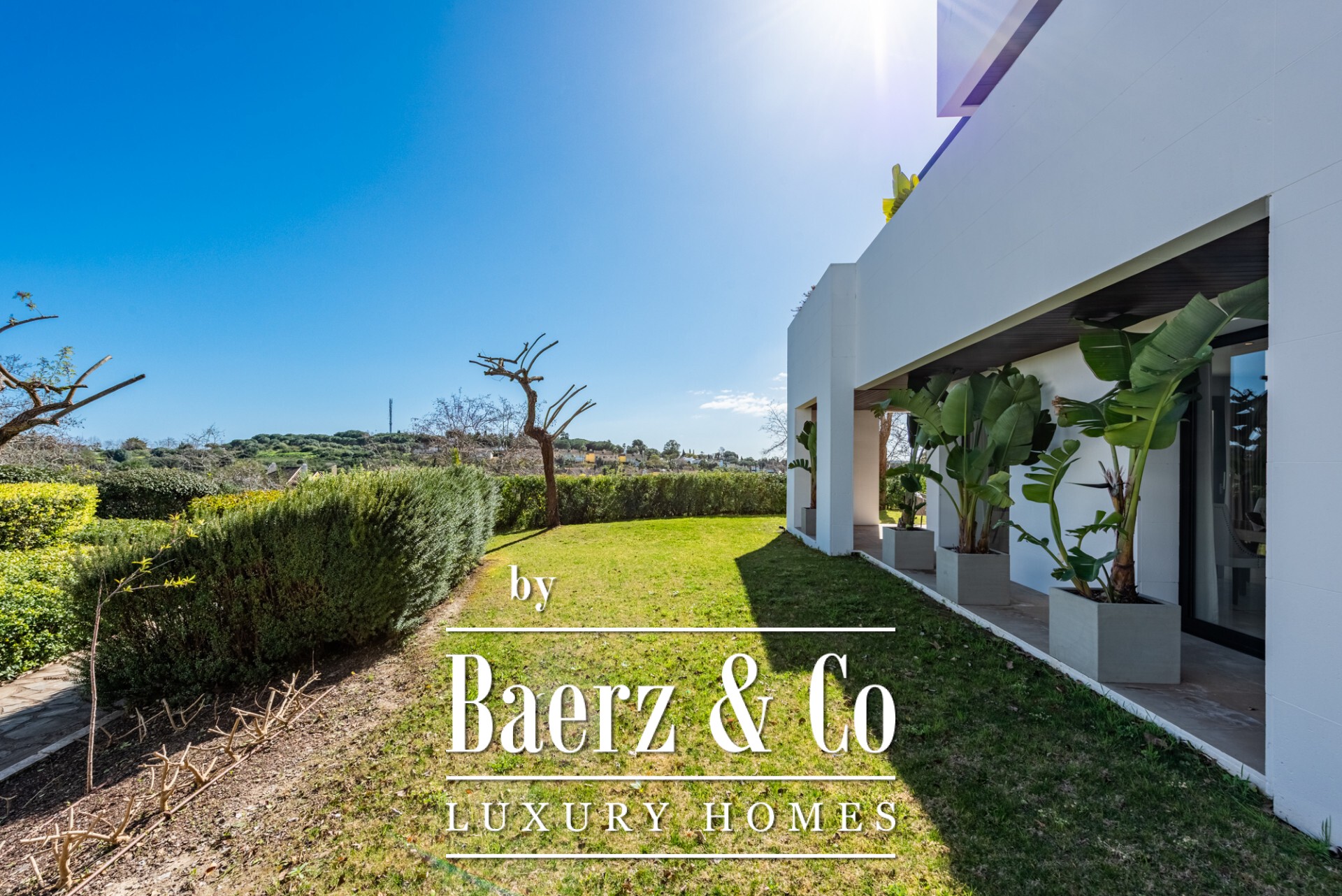 De residentie heeft een oppervlakte van 462 m² en beslaat een royaal beganegrondplan. Drie evenwichtige slaapkamers beschikken ieder over een eigen badkamer, terwijl de leefruimtes worden gekenmerkt door marmeren vloeren en zuidoostelijk licht. Een domoticasysteem, vloerverwarming en geavanceerde beveiliging worden gecombineerd met airconditioning, inbouwkasten en een volledig uitgeruste keuken, zodat comfort net zo essentieel is als design. Vanuit de belangrijkste kamers is er direct toegang tot de tuin, waardoor het woongevoel zich uitbreidt over 97 m² privéterras en tuin.