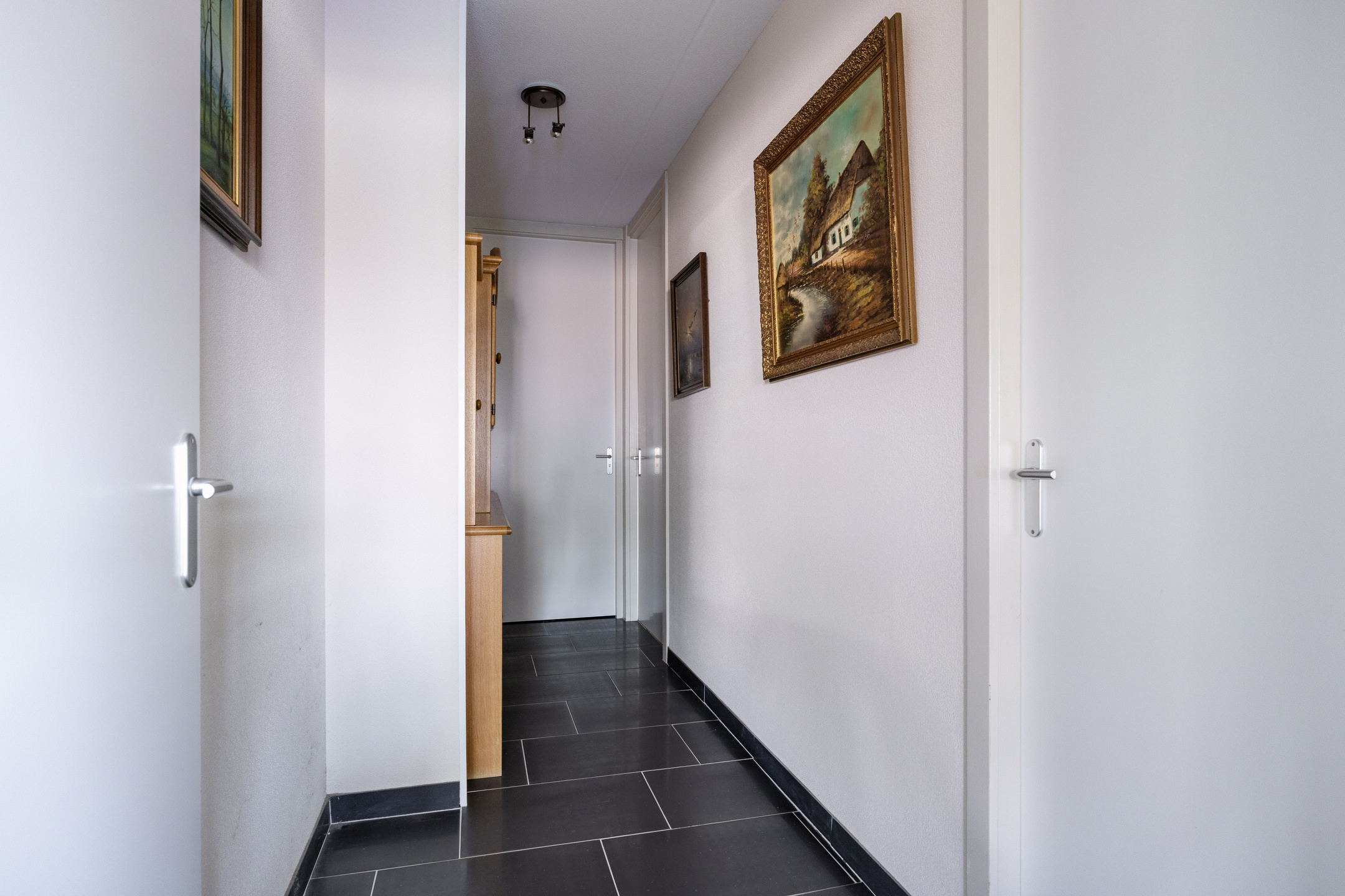 Hal/entree voorzien van bergkast met opstelplaats HR-combiketel en WTW-unit, wandafwerking sierpleister, tegelvloer v.v. luik naar de kruipruimte, plafond afgewerkt met spuitwerk;
