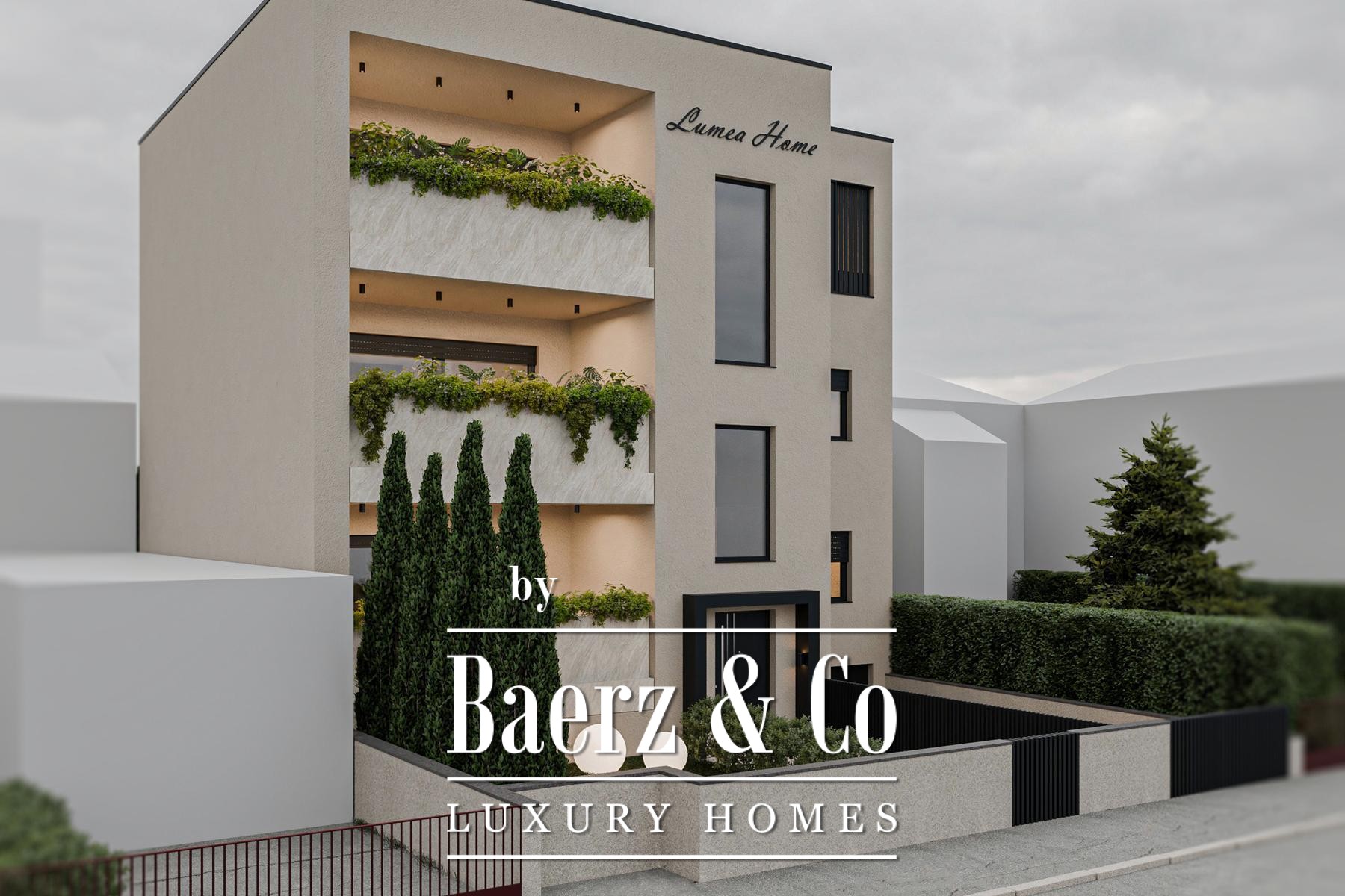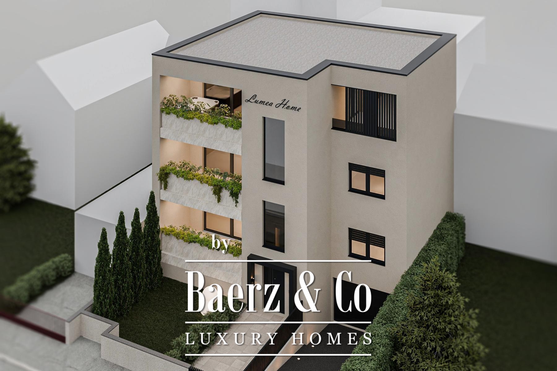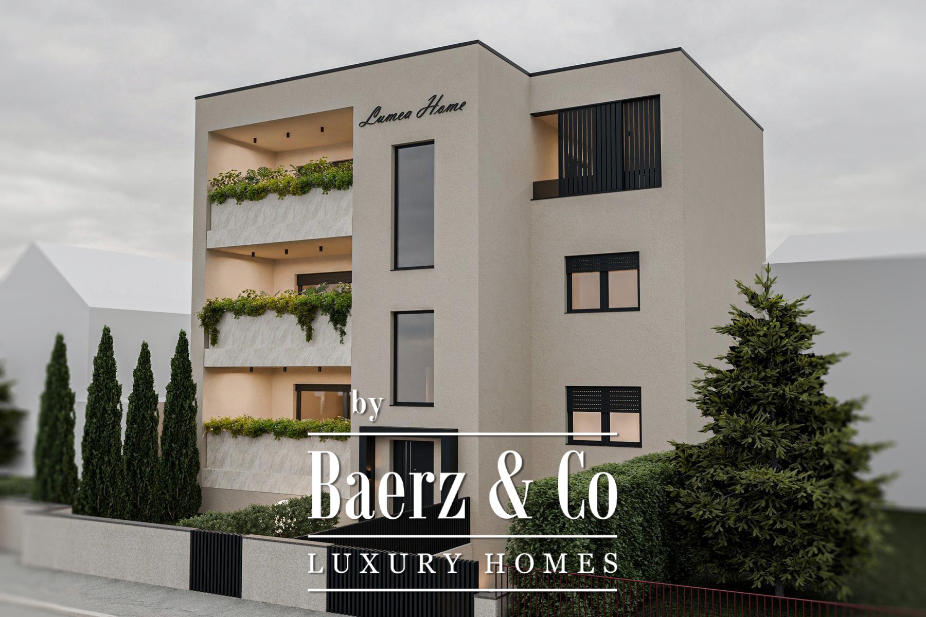 Penthouse Trešnjevka - Sjever onderscheidt zich door zijn discrete ligging in een van de meest stedelijke wijken van Zagreb en biedt een zeldzame balans tussen privacy en optimale bereikbaarheid. Dit penthouse beschikt over een netto bruikbare oppervlakte van 206,05 m², verdeeld over twee verdiepingen met vijf slaapkamers en vier badkamers. Het ontwerp ademt openheid en ruimte, met een lichte woonruimte die naadloos overloopt in een open keuken en eetgedeelte, uitmondend in een royale loggia en een overdekt terras.