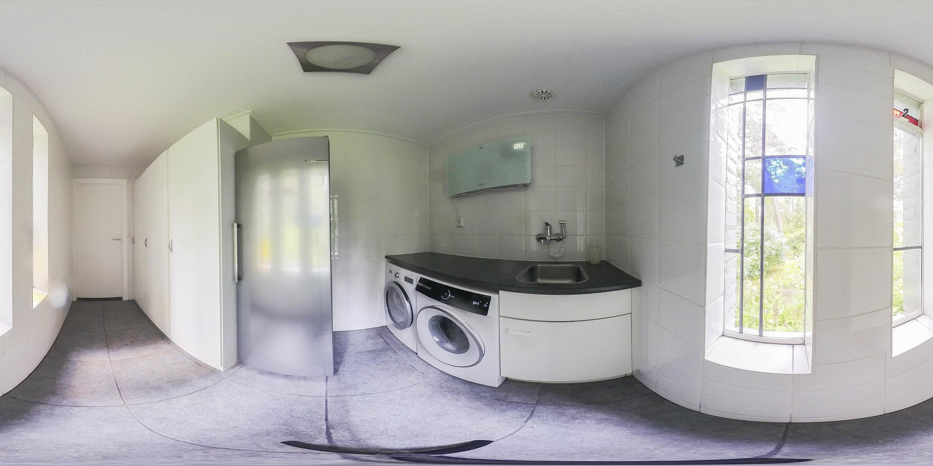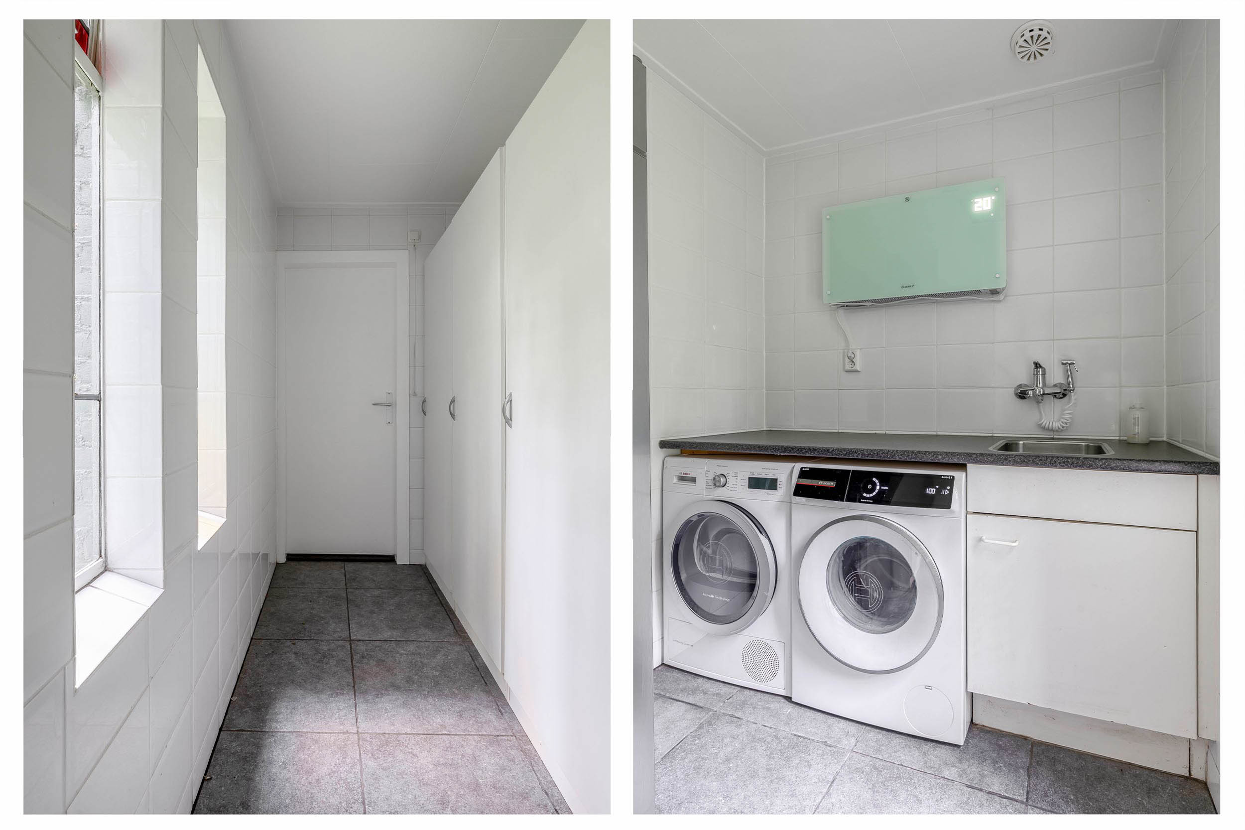 Hier vind je niet alleen een handige berging met vernieuwde meterkast 3x25A en 12 groepen, uitstortgootsteen, plus de omvormer voor de zonnepanelen, maar ook een washok met aanrecht/spoelbak, plek voor wasmachine en -droger, opbergkasten en een geheel betegeld toilet met fonteintje en mechanische afzuiging.